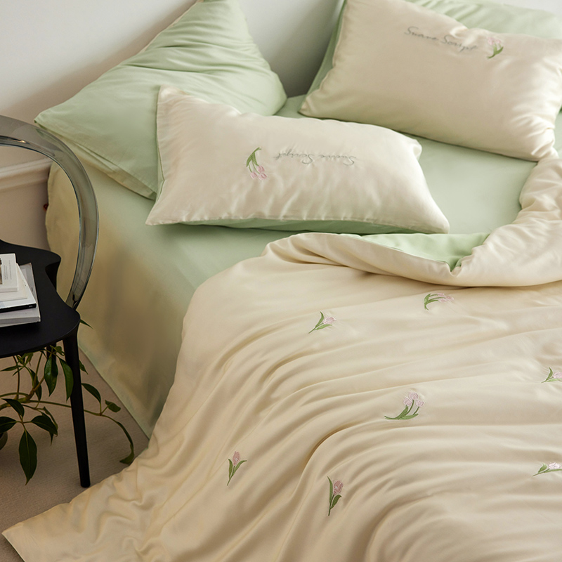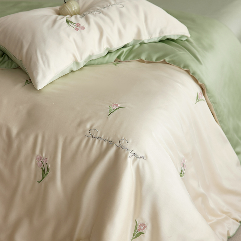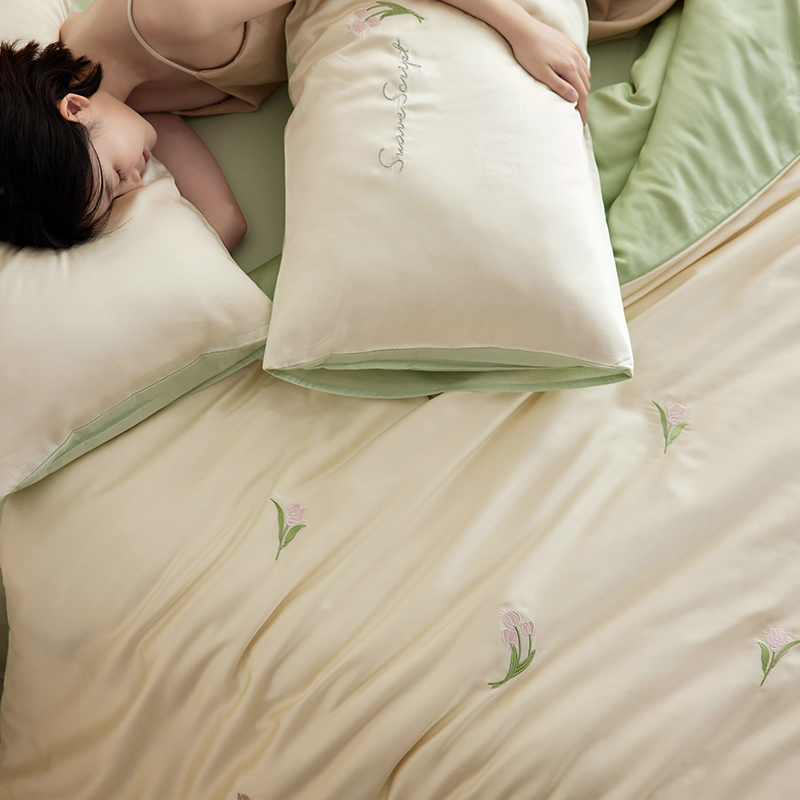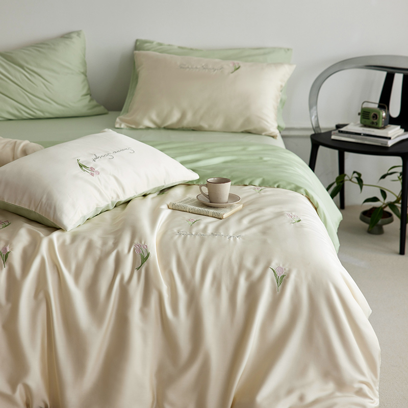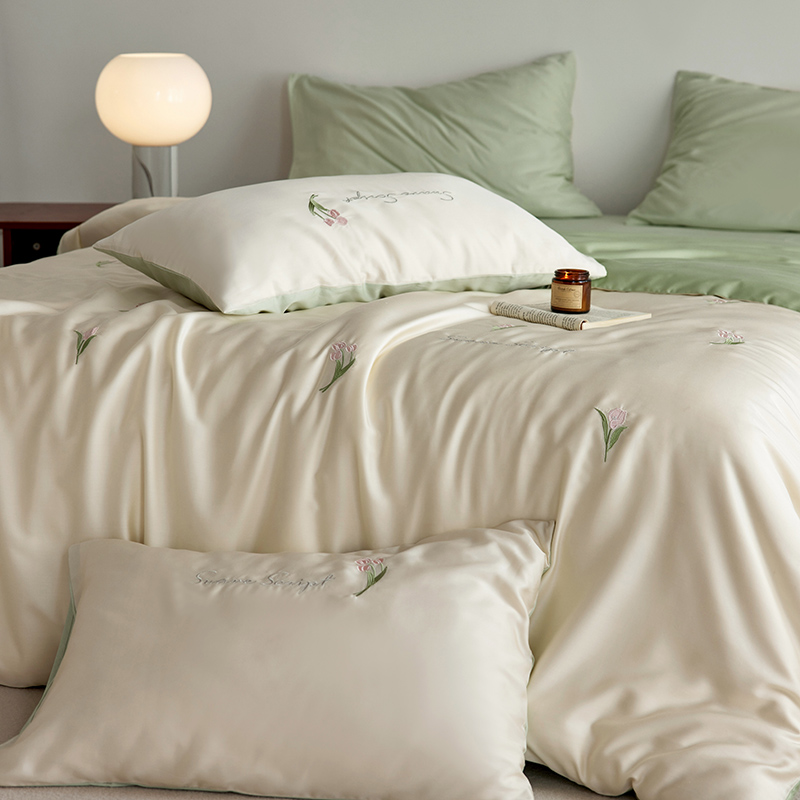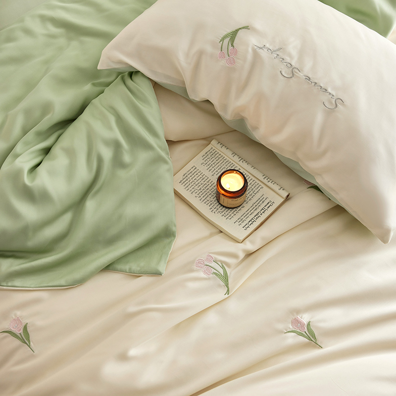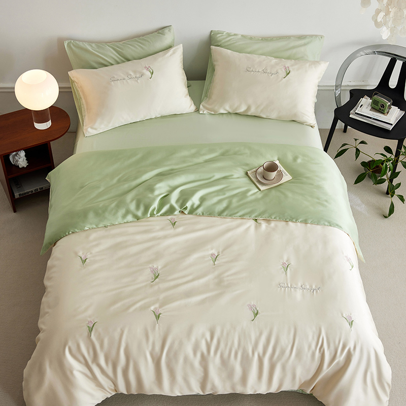 当前位置: 91家纺网 > 商品网购 > 床品套件 > 四件套 > 化纤普通四件套 > 初拾 2024新款A类天丝棉刺绣四件套-郁金香铃兰花场景二 郁金香-明绿