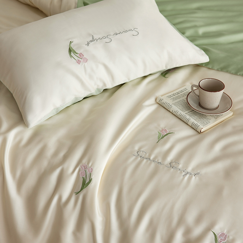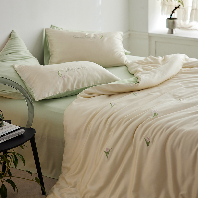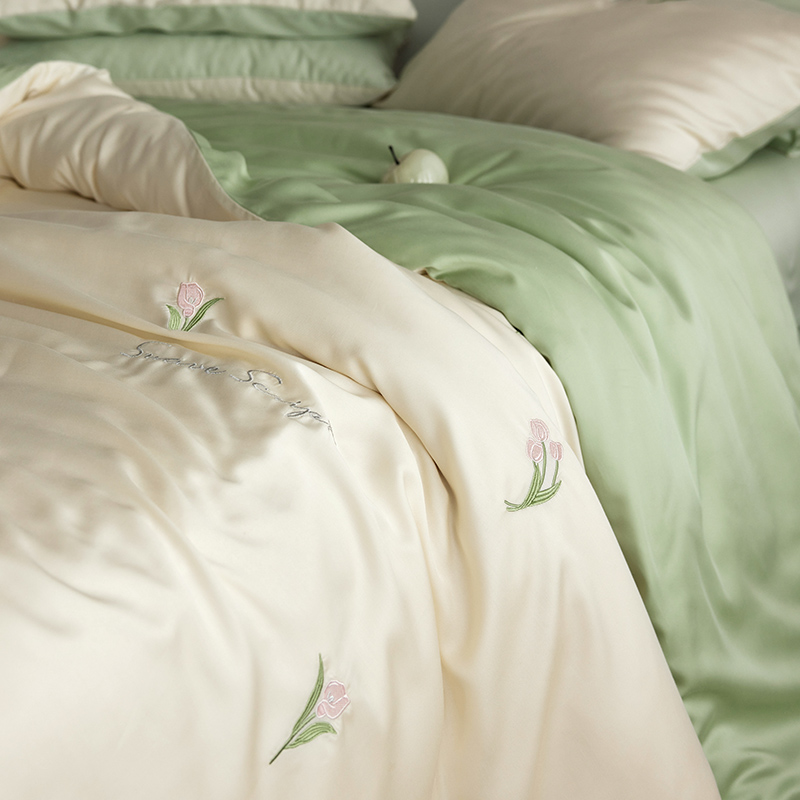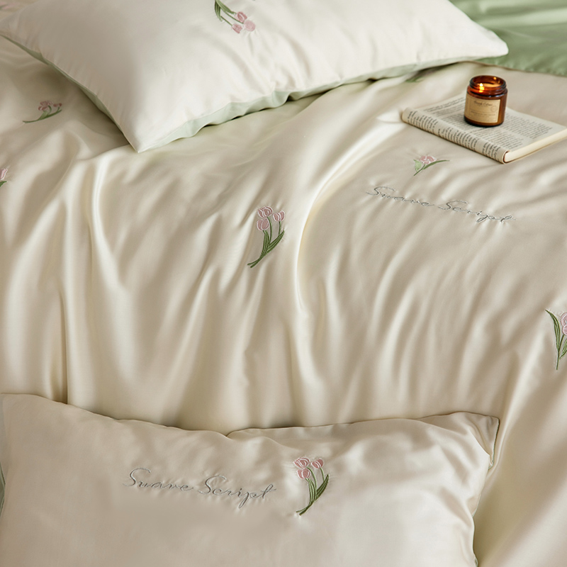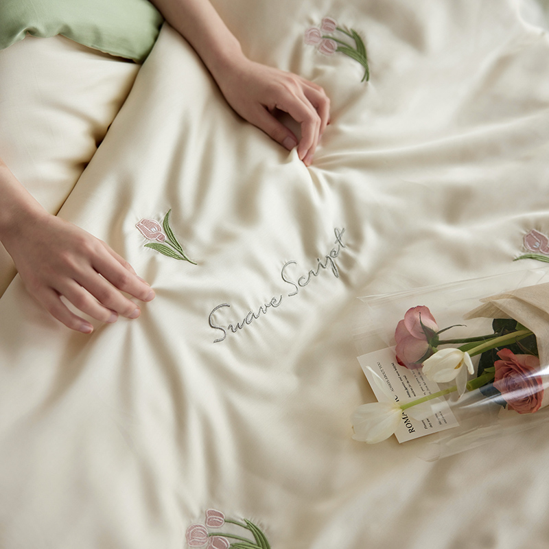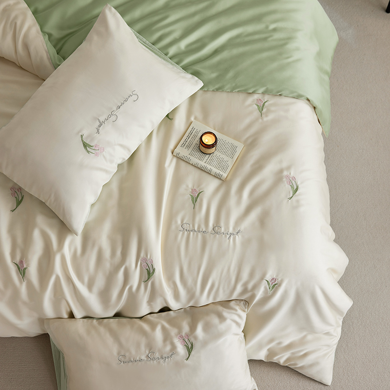 当前位置: 91家纺网 > 商品网购 > 床品套件 > 四件套 > 化纤普通四件套 > 初拾 2024新款A类天丝棉刺绣四件套-郁金香铃兰花场景二 郁金香-明绿