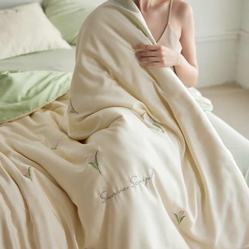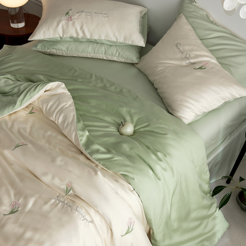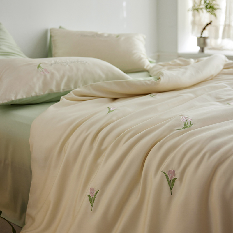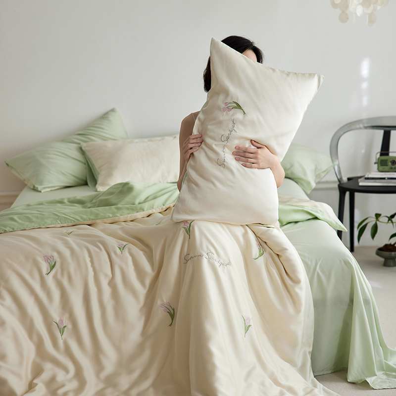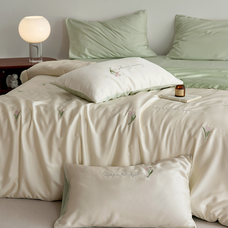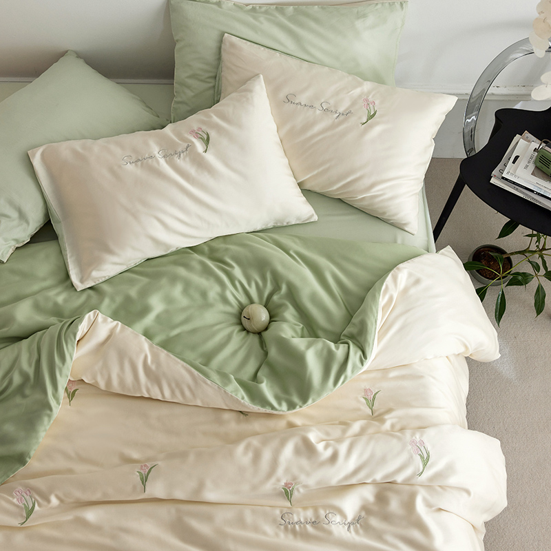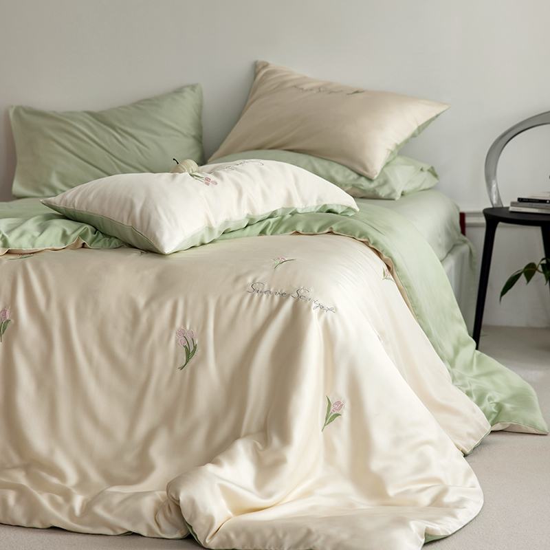 当前位置: 91家纺网 > 商品网购 > 床品套件 > 四件套 > 化纤普通四件套 > 初拾 2024新款A类天丝棉刺绣四件套-郁金香铃兰花场景二 郁金香-明绿
