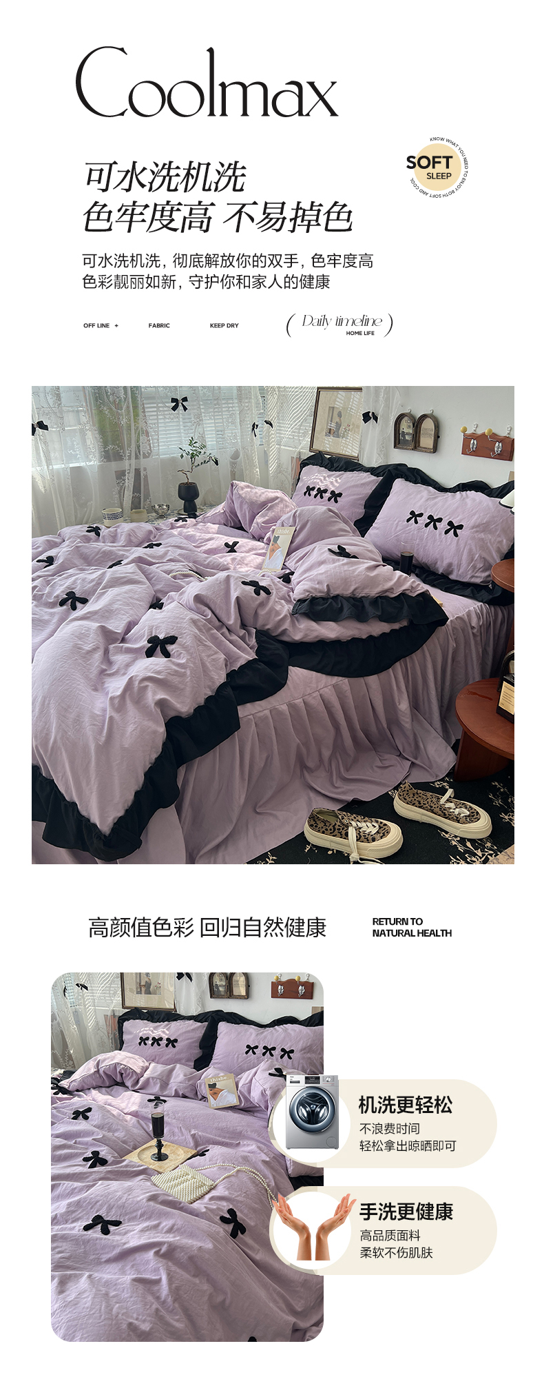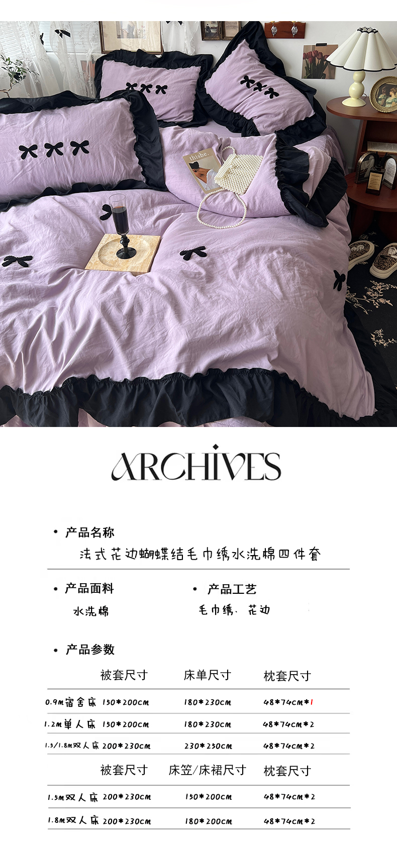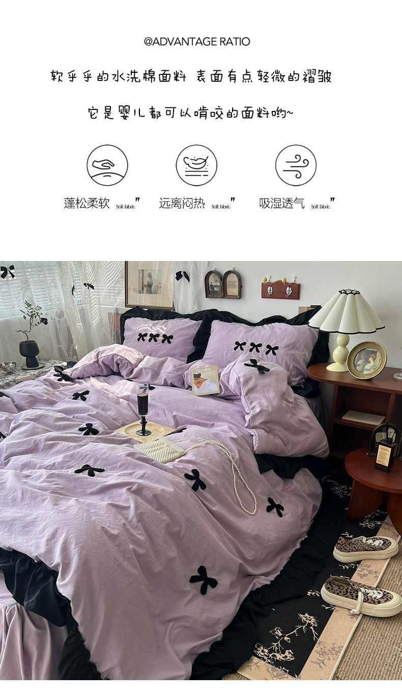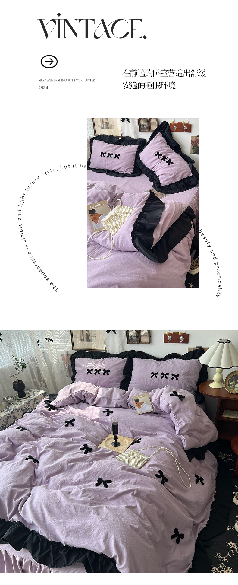 当前位置: 91家纺网 > 商品网购 > 床品套件 > 四件套 > 水洗棉四件套 > 原素 2024新款赫本系列法式花边水洗棉四件套 法式奶紫
