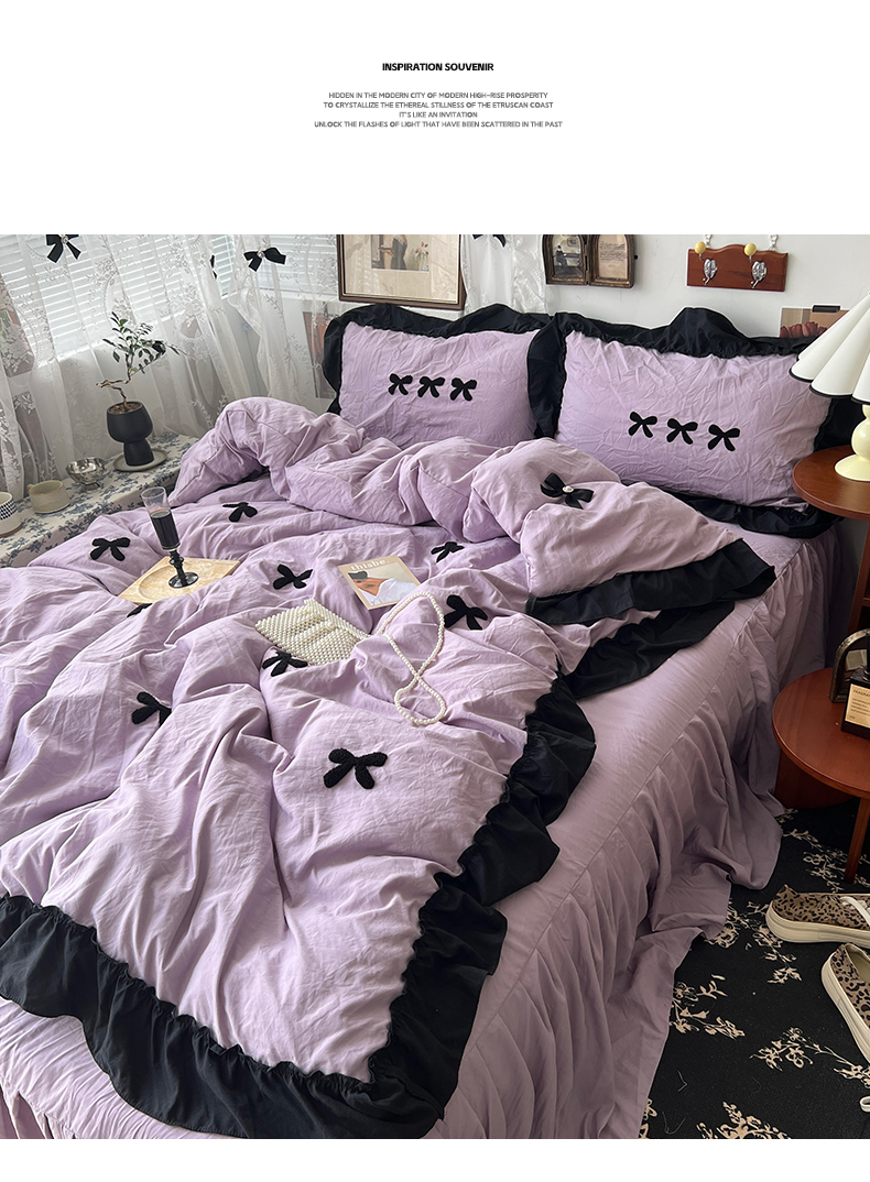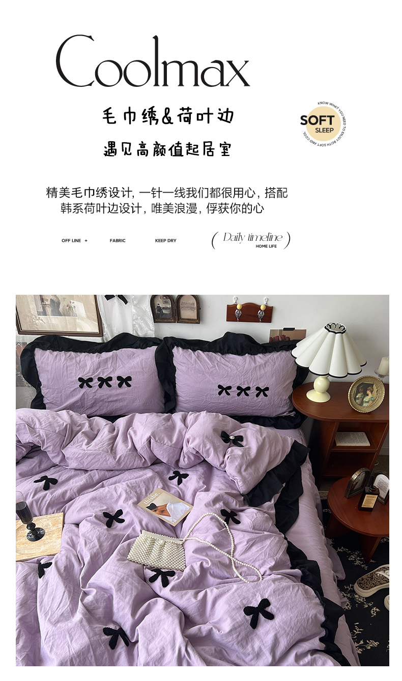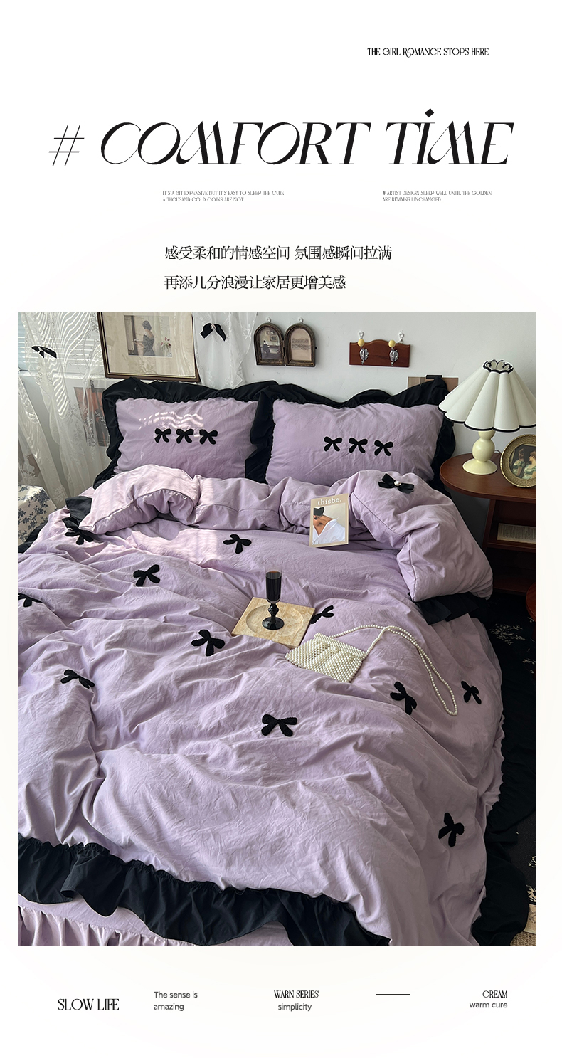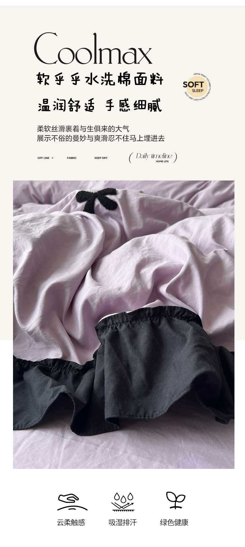 当前位置: 91家纺网 > 商品网购 > 床品套件 > 四件套 > 水洗棉四件套 > 原素 2024新款赫本系列法式花边水洗棉四件套 法式奶紫