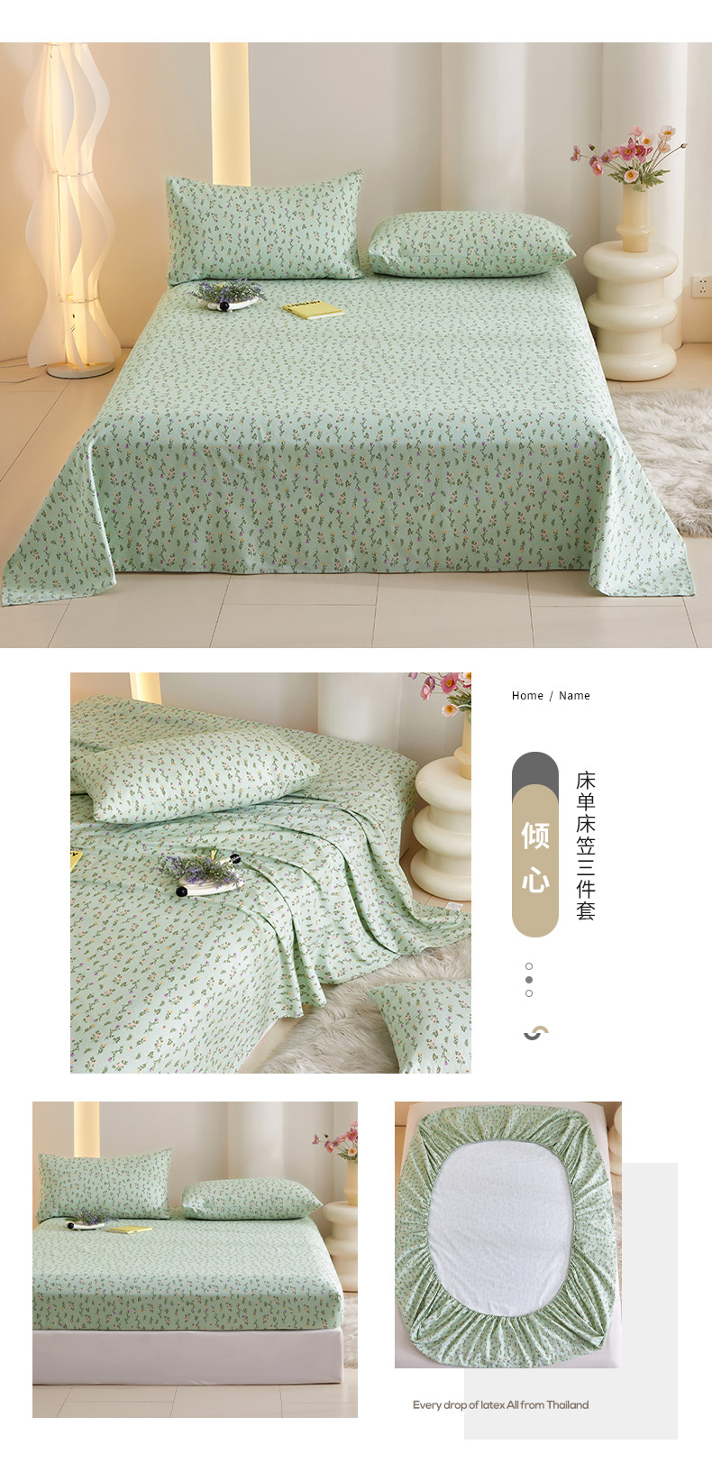 怡家居 2024新款A类老粗布枕套床单床笠单品组合三件套 倾心