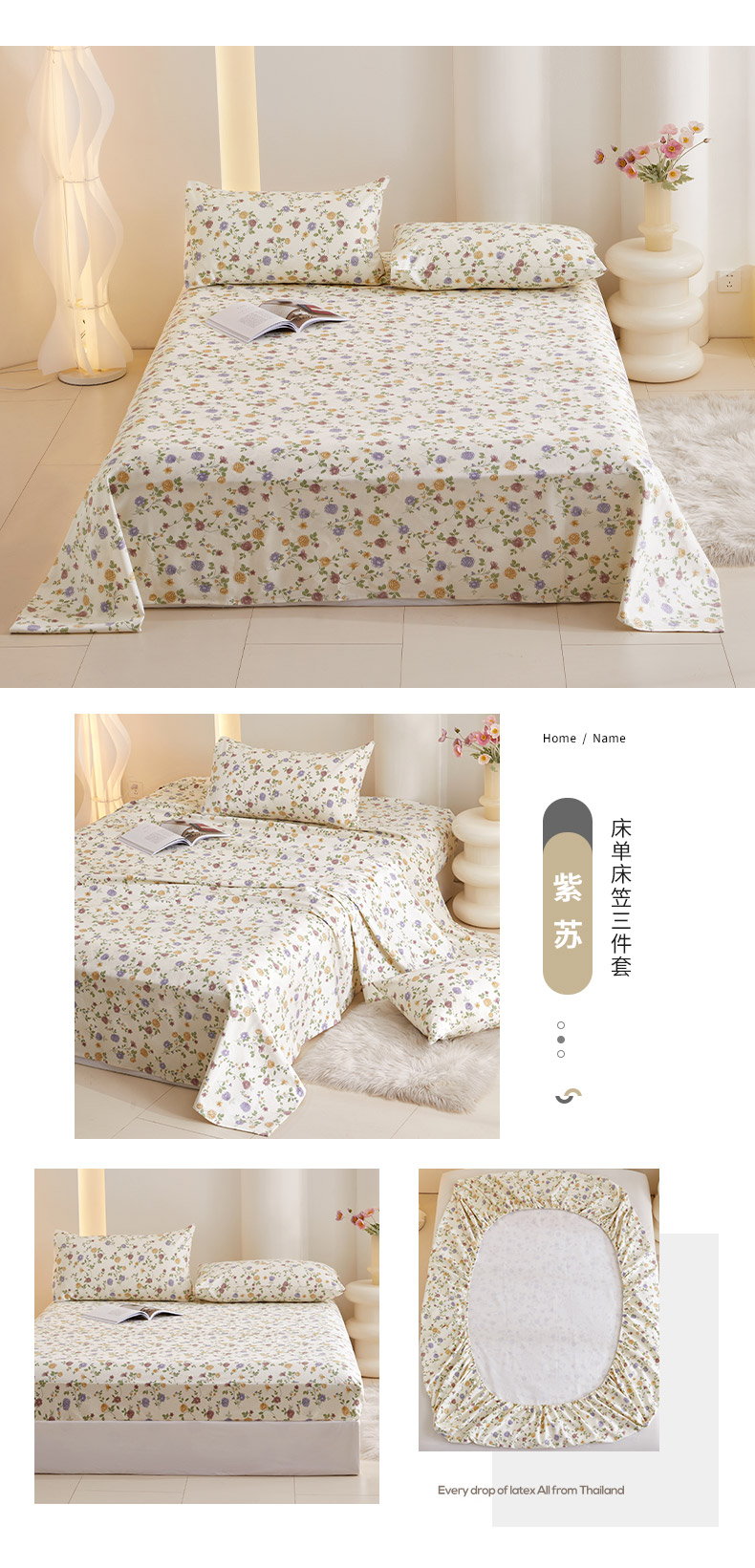 • 91家纺网 家纺一手货源 找家纺 怡家居 2024新款A类老粗布枕套床单床笠单品组合三件套 紫苏