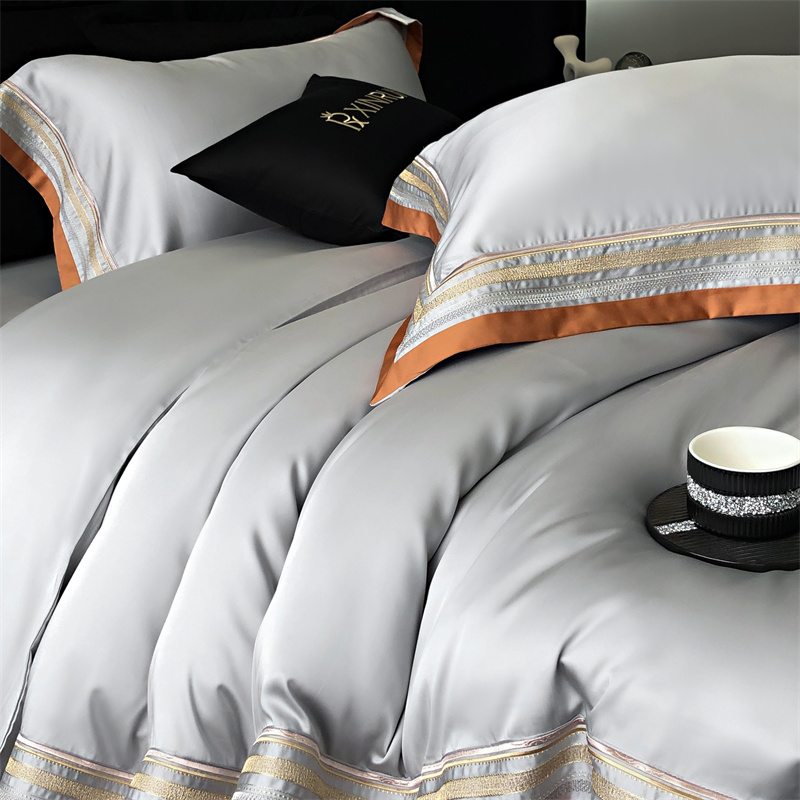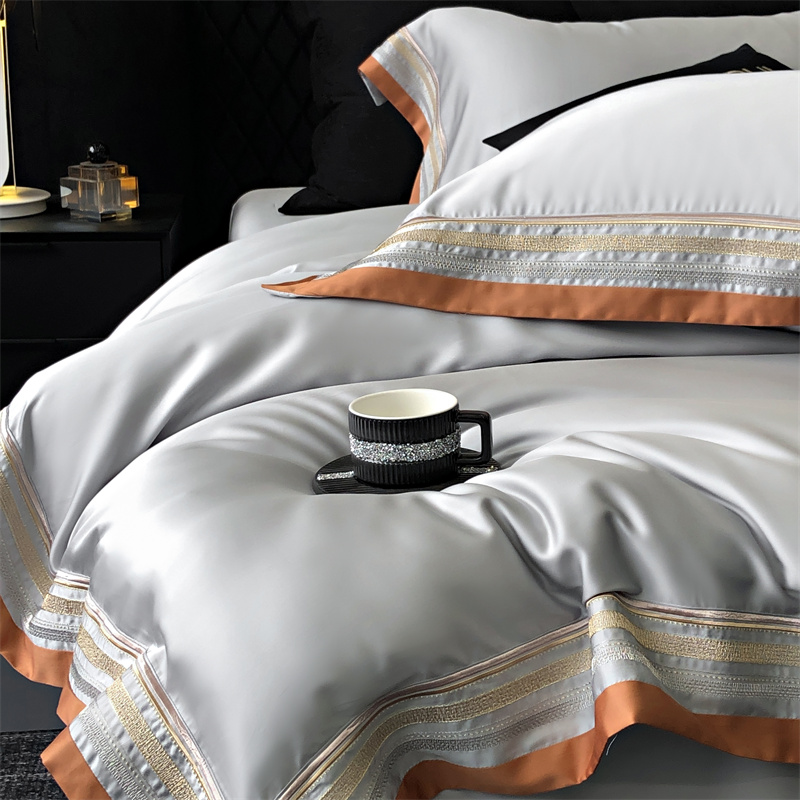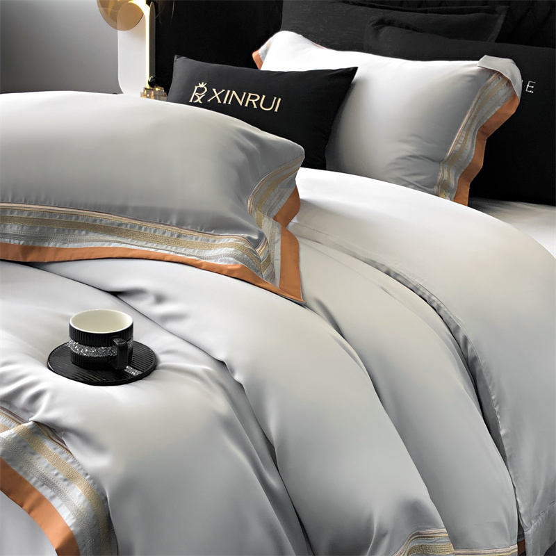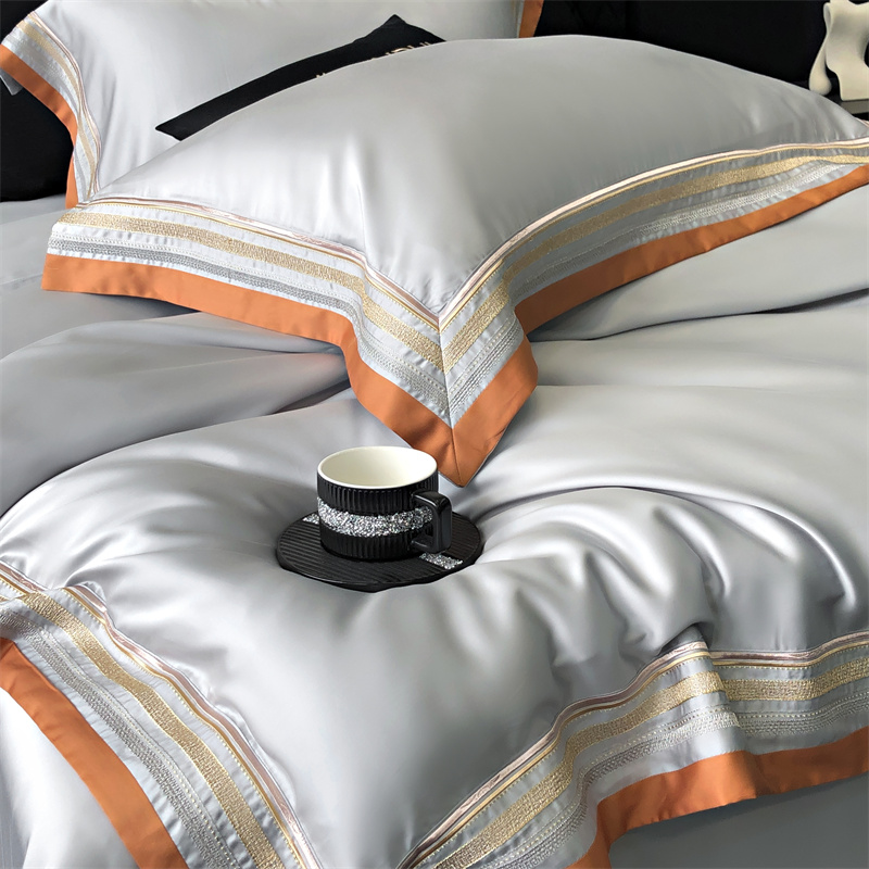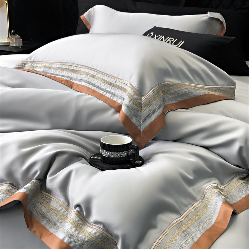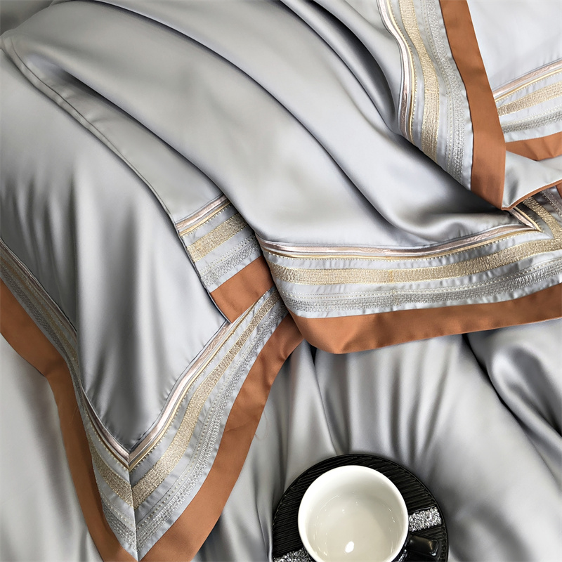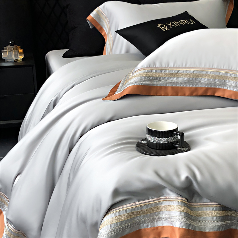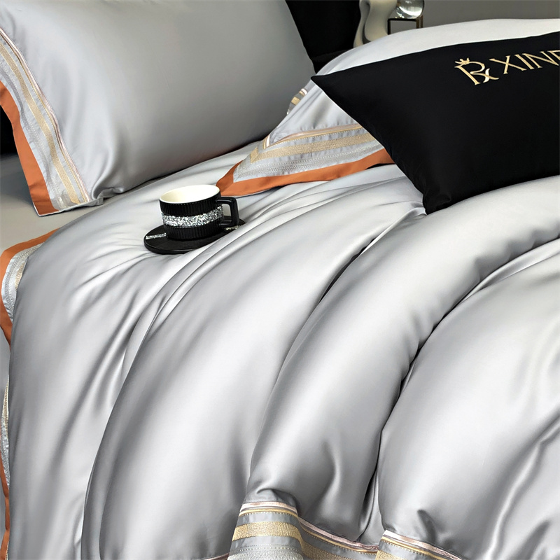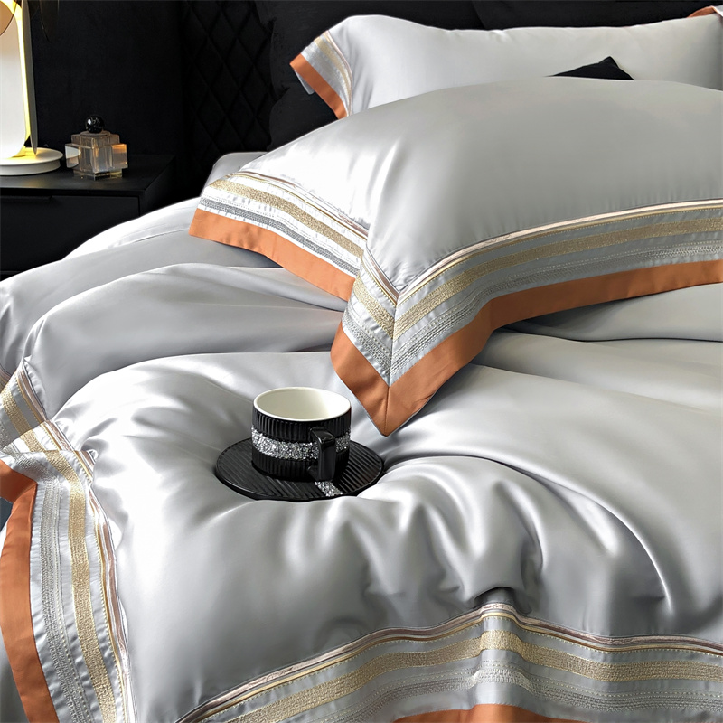 馨蕊家居 2024新款80s兰精天丝刺绣四件套-露晞 天丝露晞-高级灰