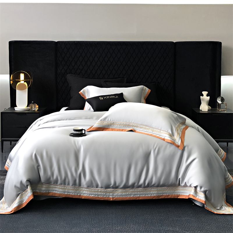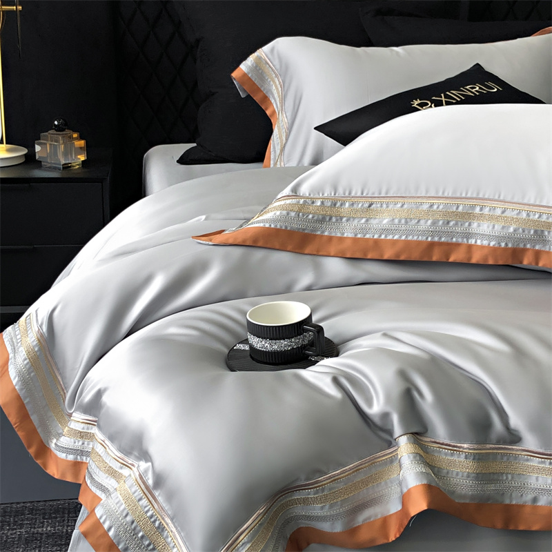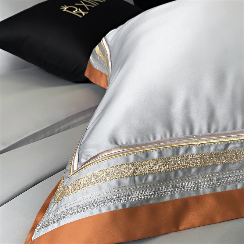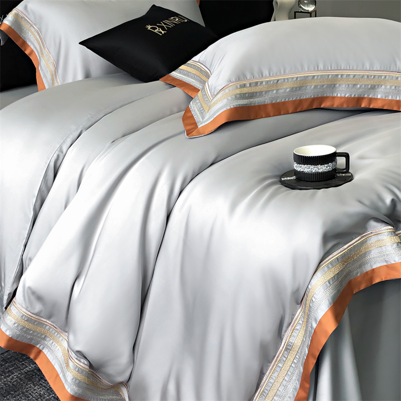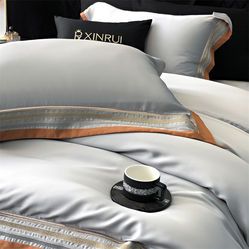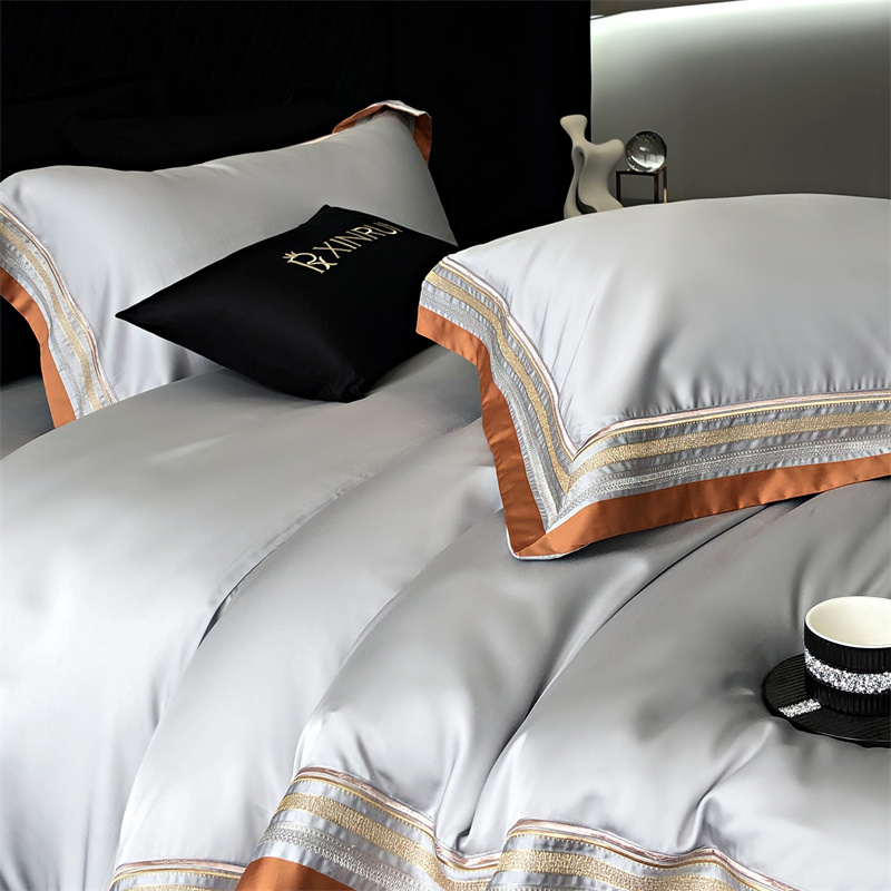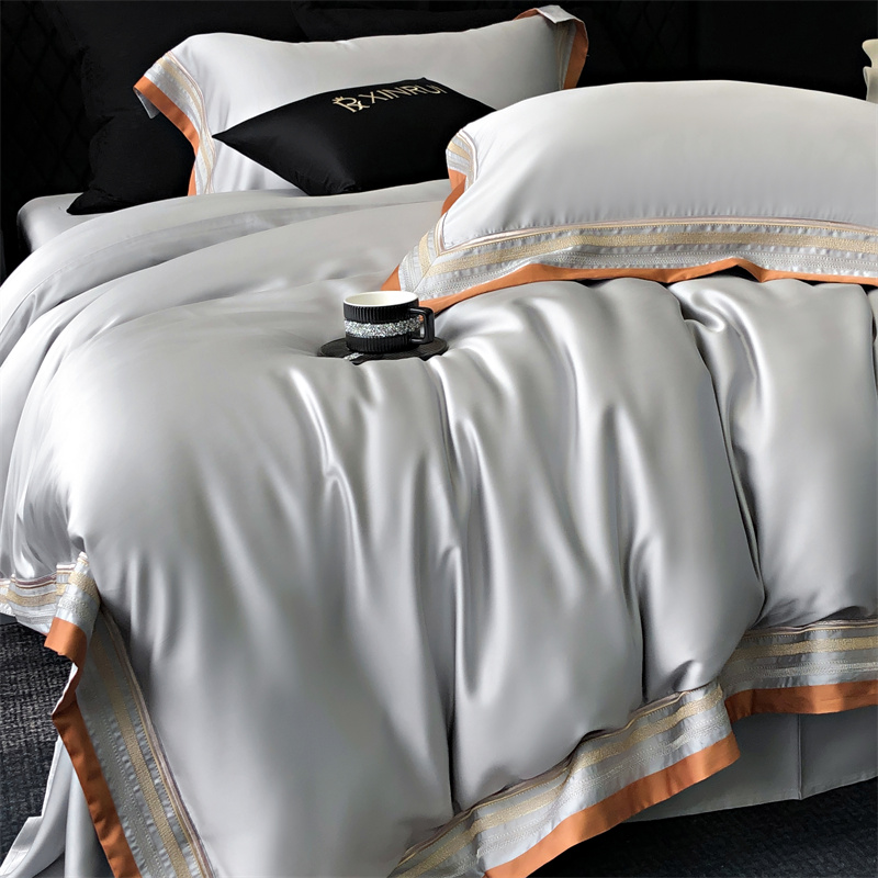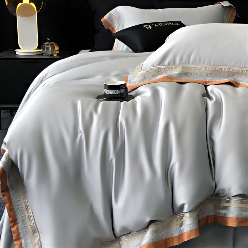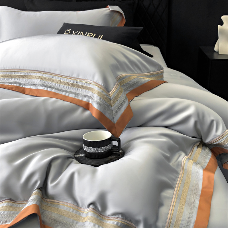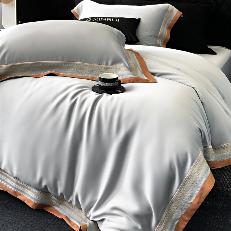 馨蕊家居 2024新款80s兰精天丝刺绣四件套-露晞 天丝露晞-高级灰