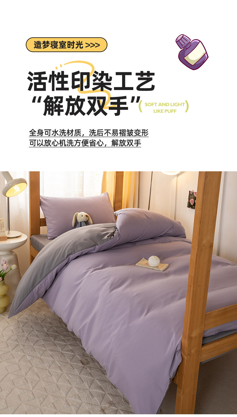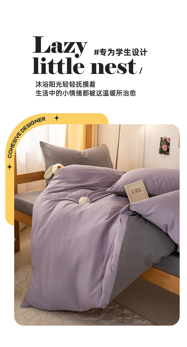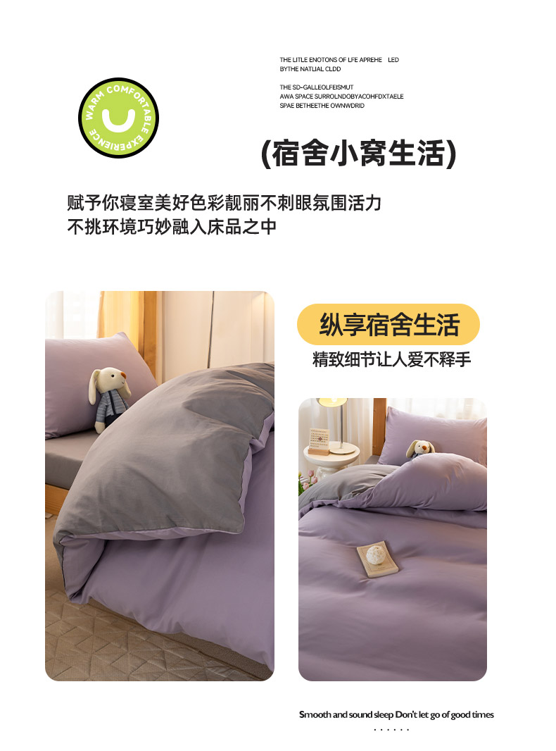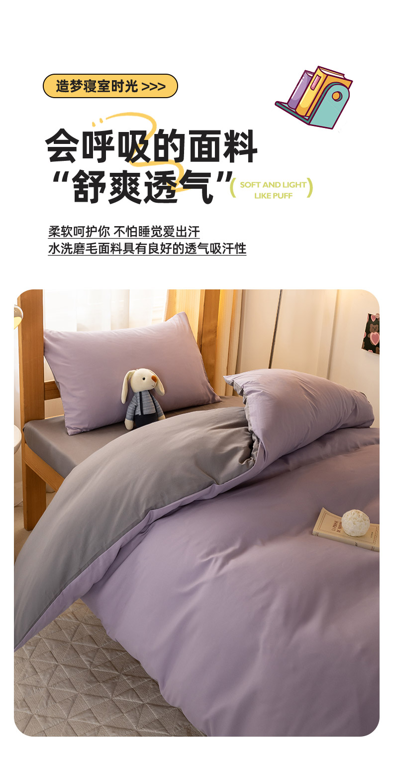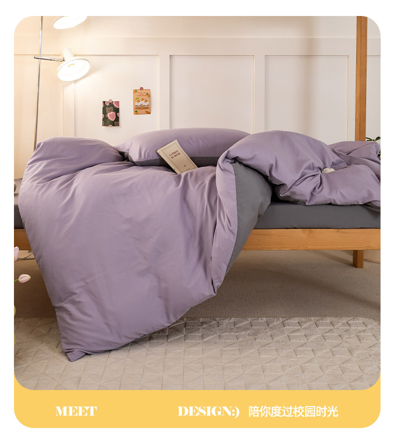 当前位置: 91家纺网 > 商品网购 > 床品套件 > 四件套 > 普通磨毛四件套 > 芷凡家纺 2024新款水洗磨毛纯色双拼学生三件套四件套 烟紫+中灰
