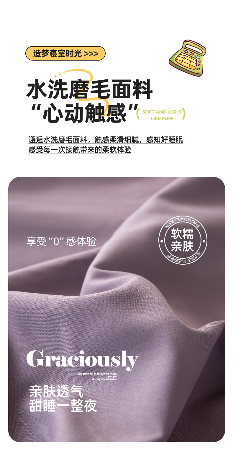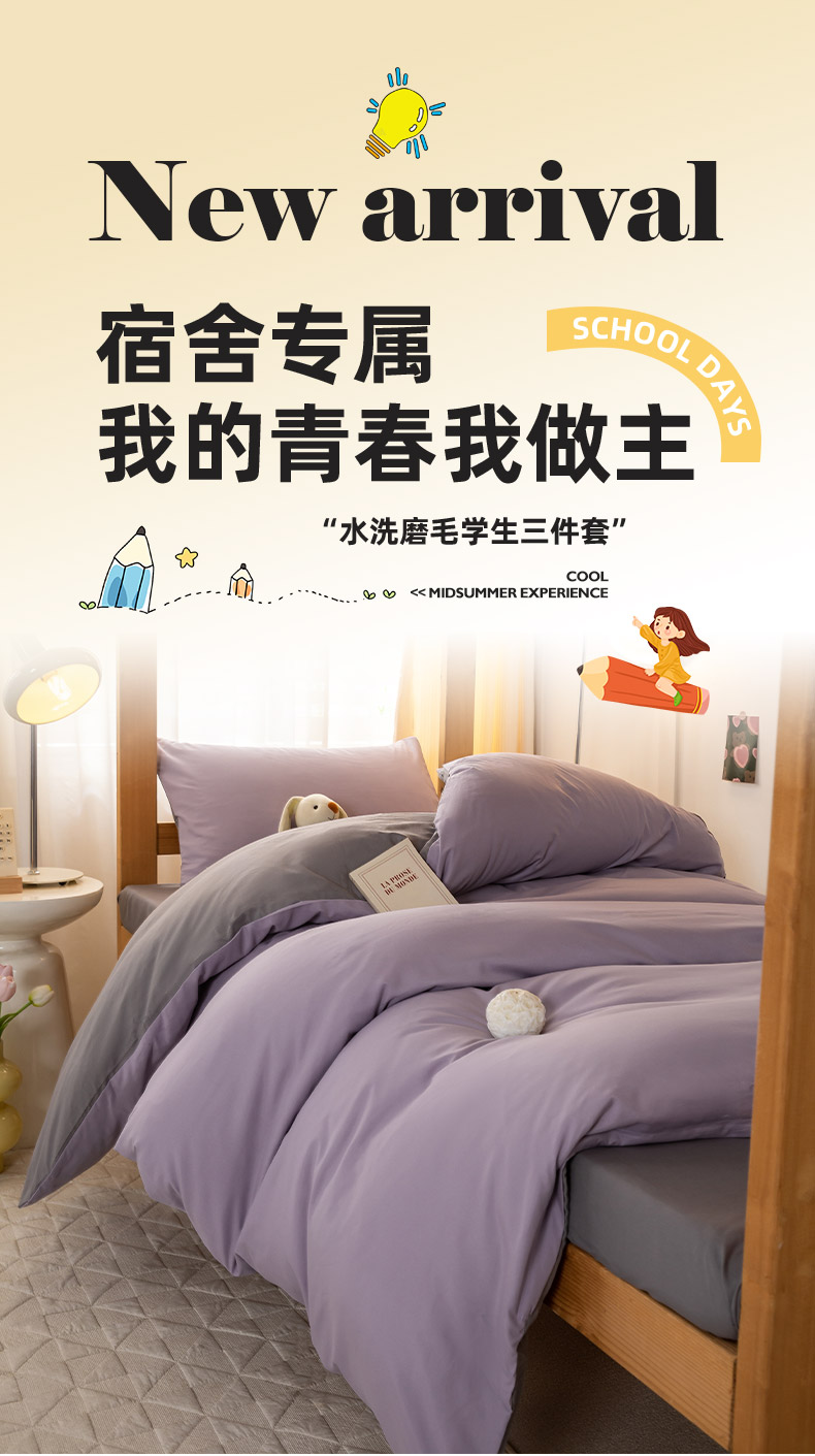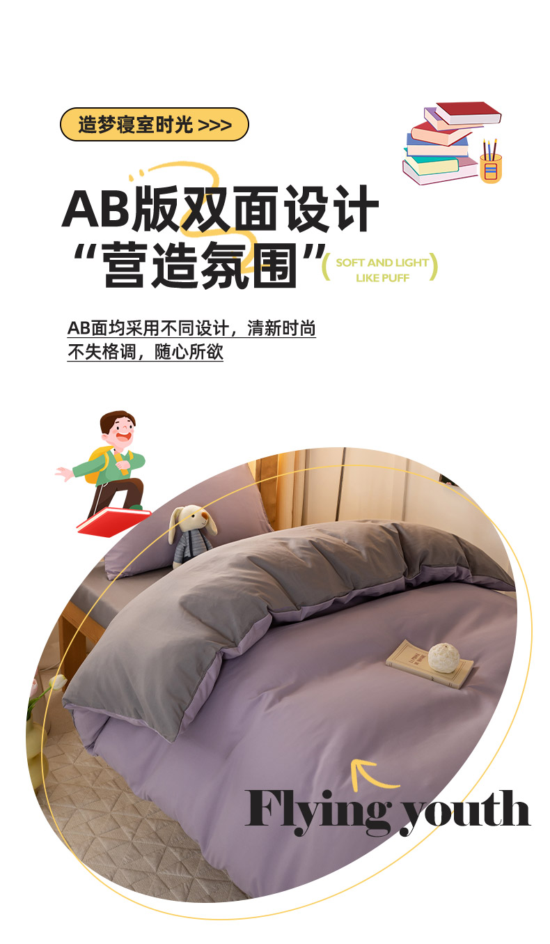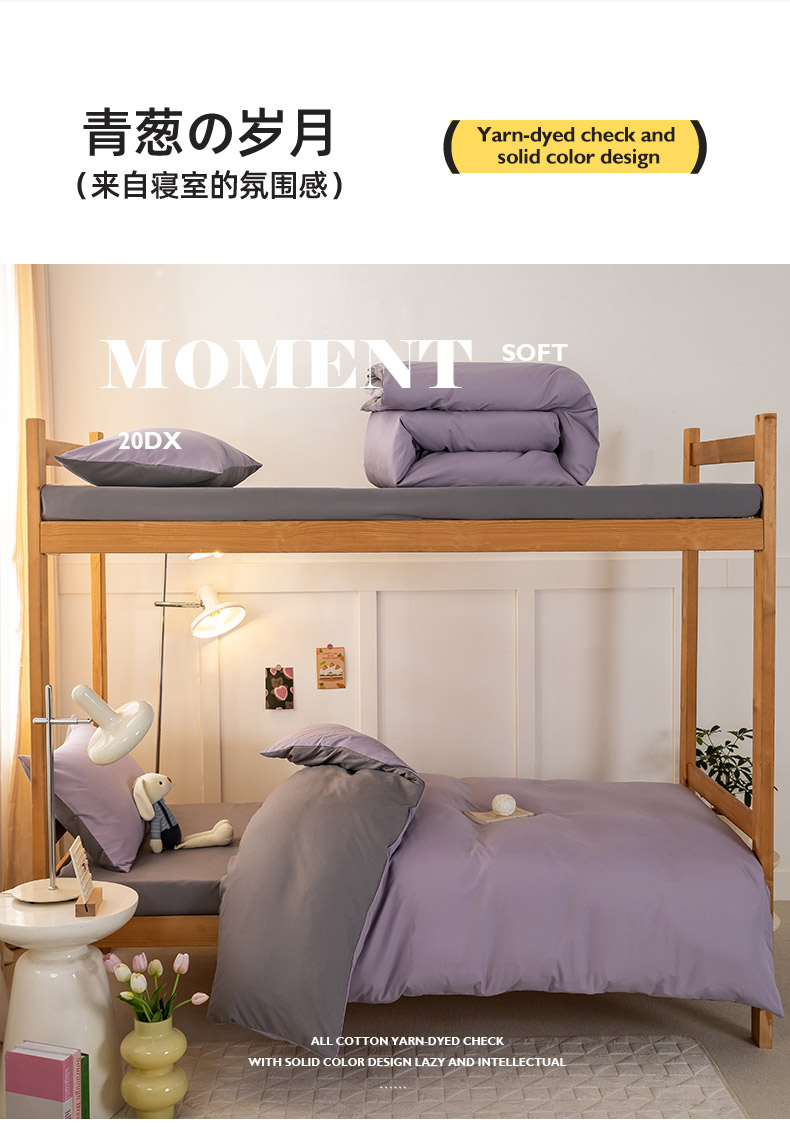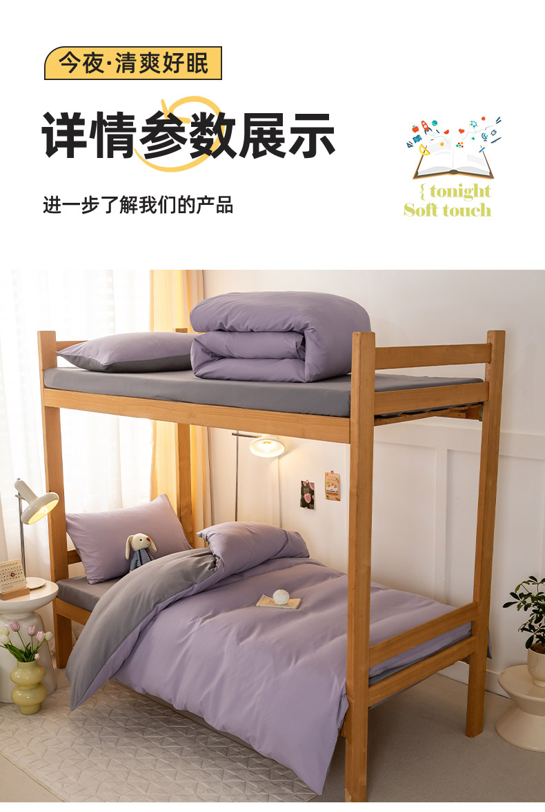 当前位置: 91家纺网 > 商品网购 > 床品套件 > 四件套 > 普通磨毛四件套 > 芷凡家纺 2024新款水洗磨毛纯色双拼学生三件套四件套 烟紫+中灰
