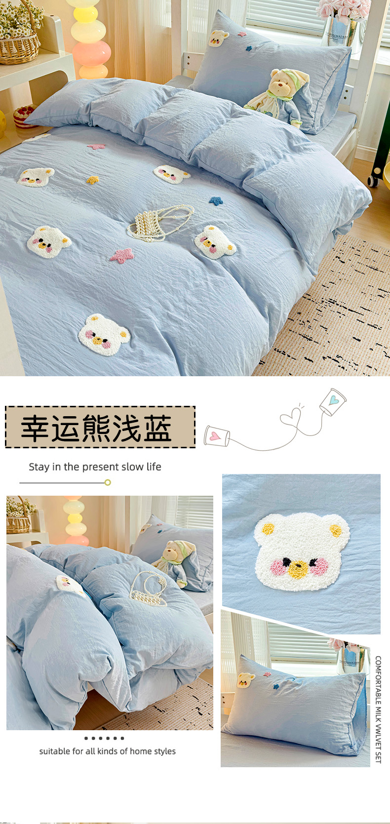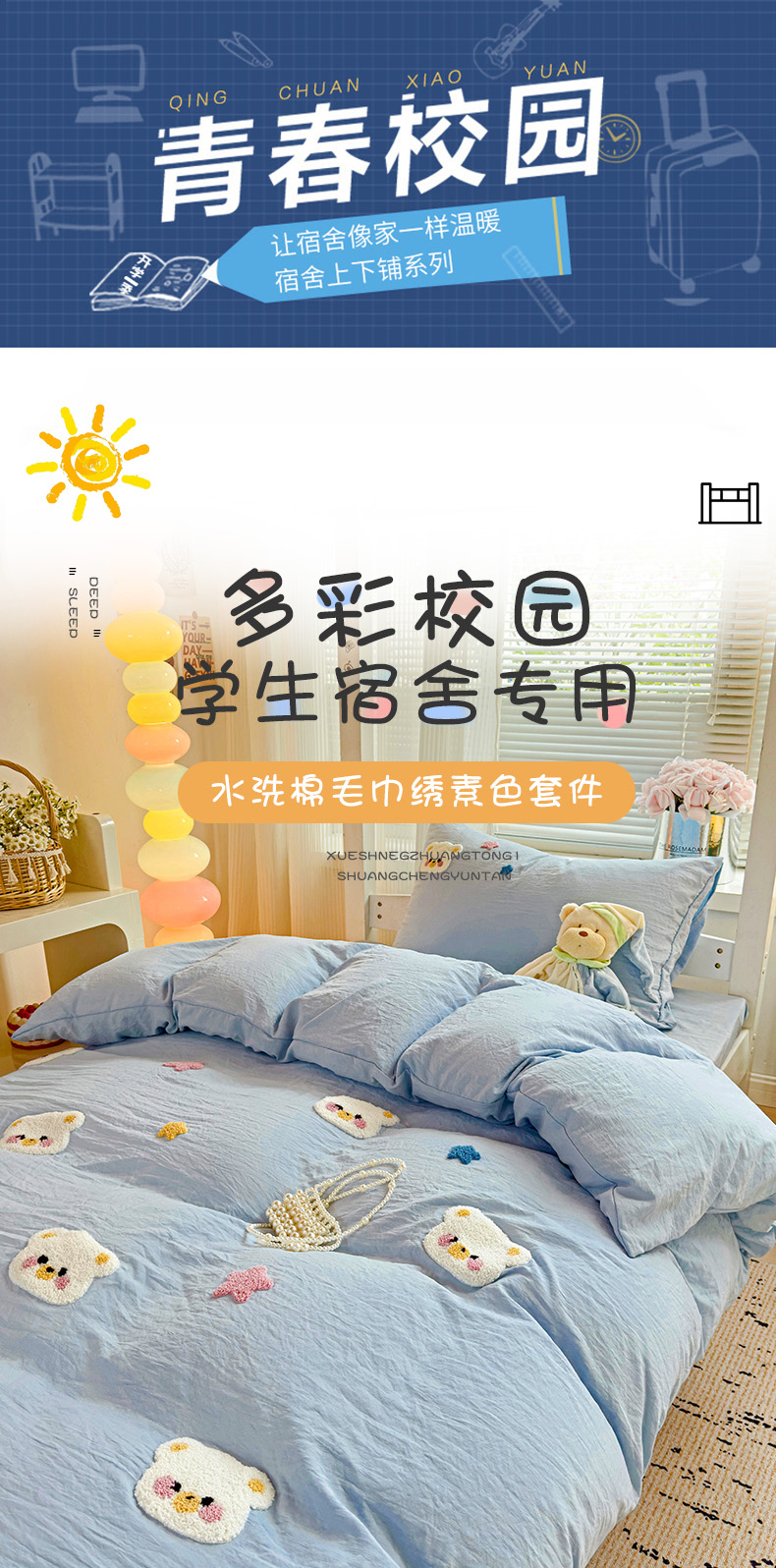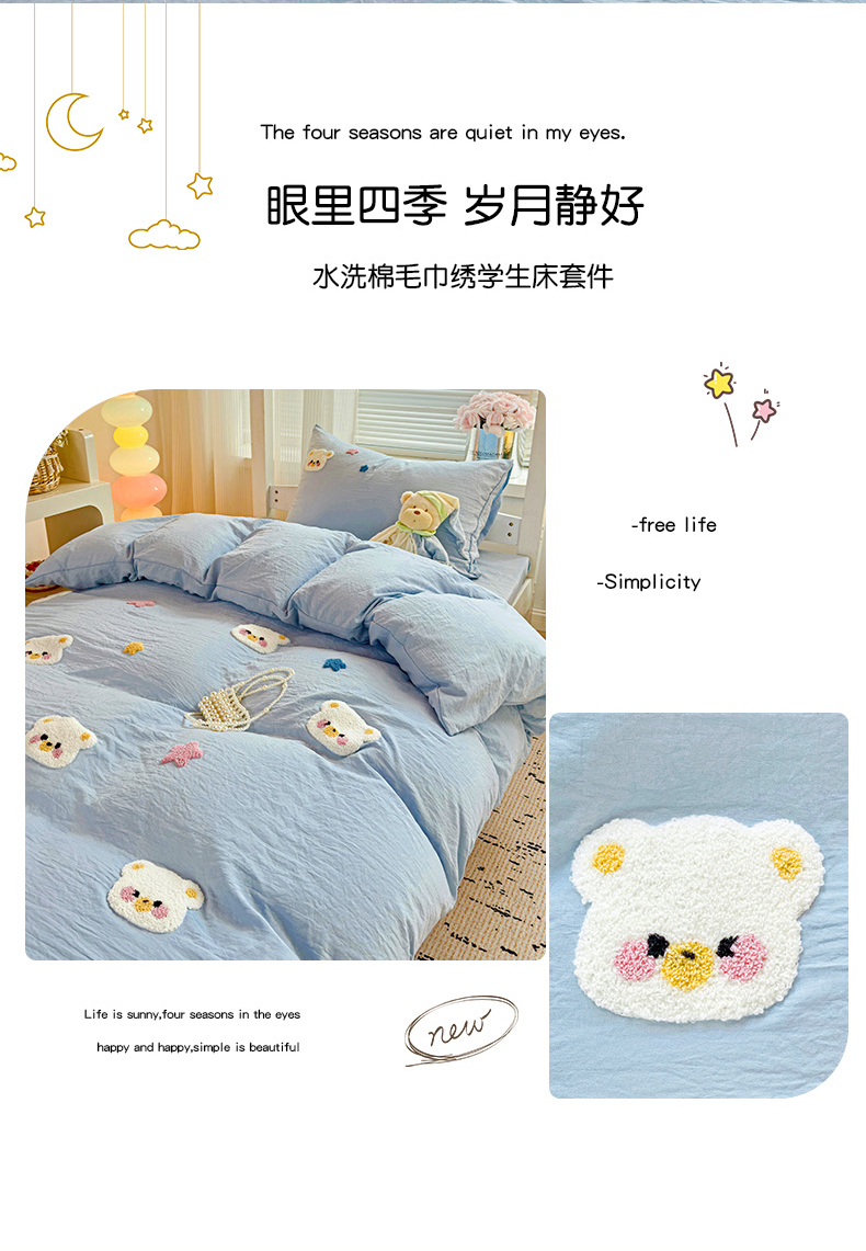 商品名称:(总)韩巢家纺 2024新款超柔水洗棉毛巾绣学生宿舍上下铺专用单件被套-幸运熊系列(提供卖家秀)