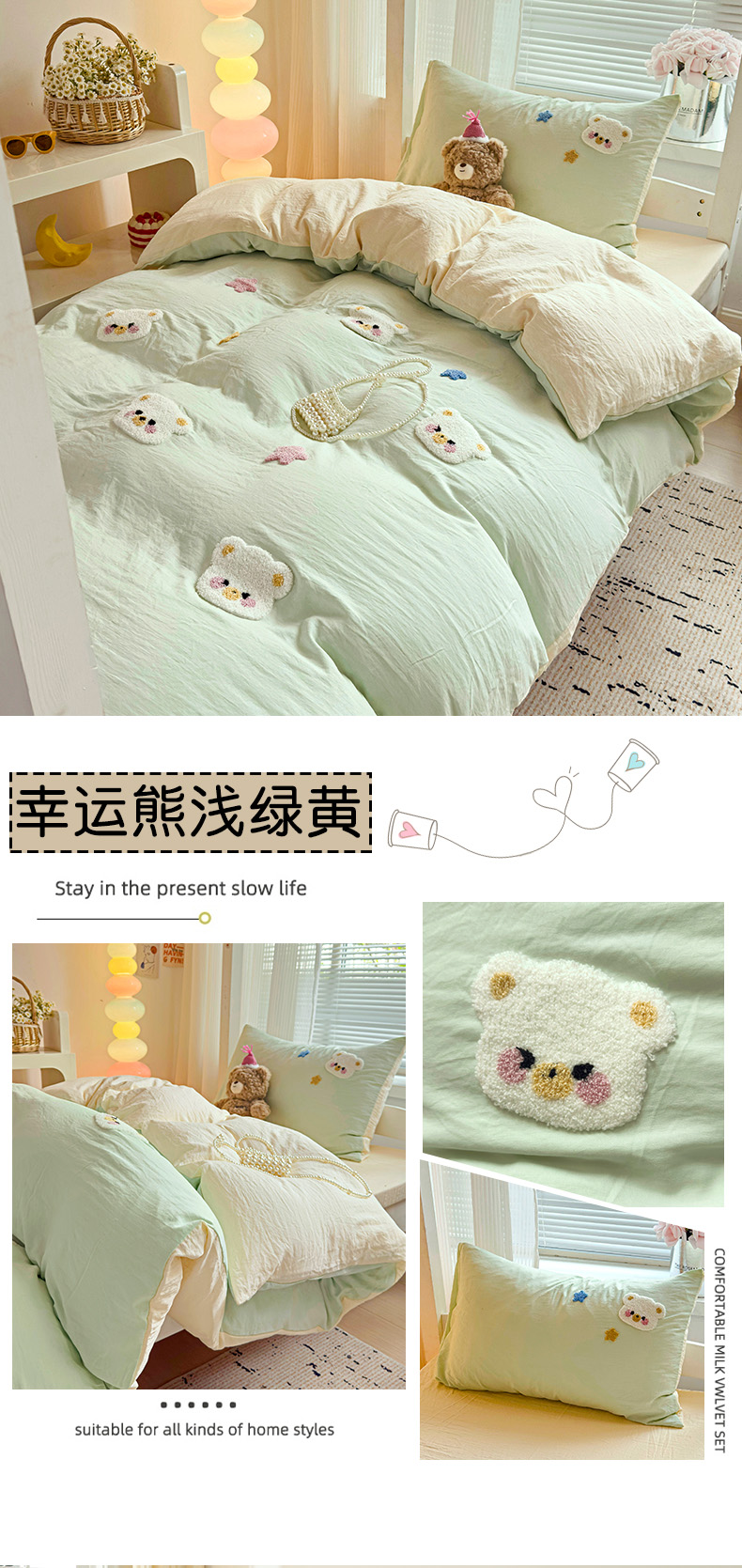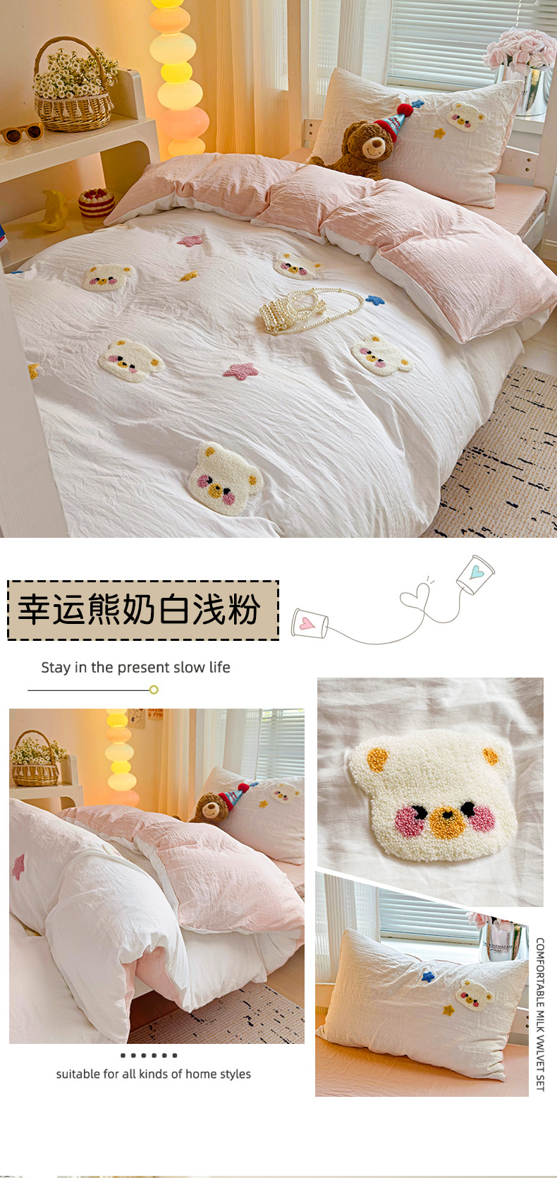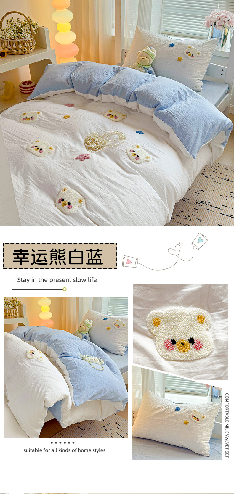 商品名称:(总)韩巢家纺 2024新款超柔水洗棉毛巾绣学生宿舍上下铺专用单件被套-幸运熊系列(提供卖家秀)
