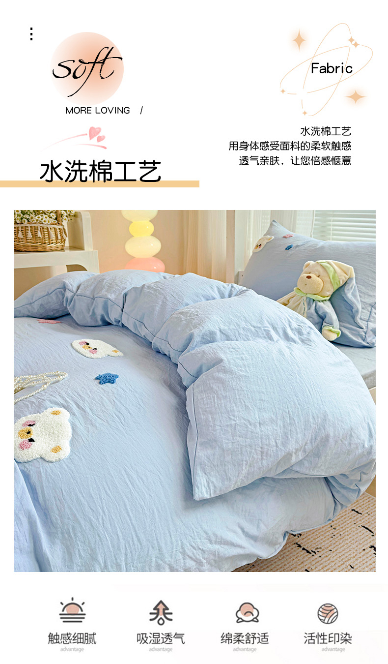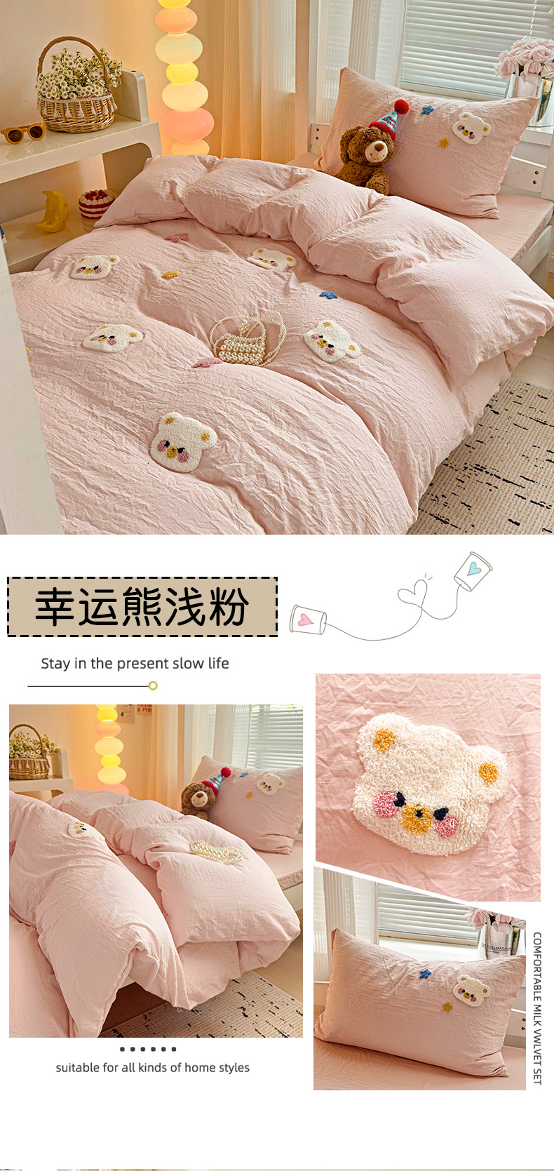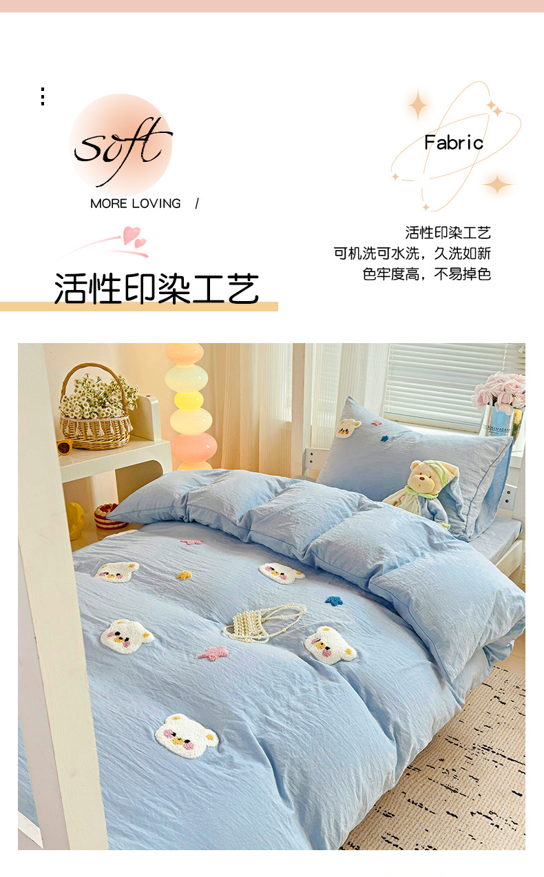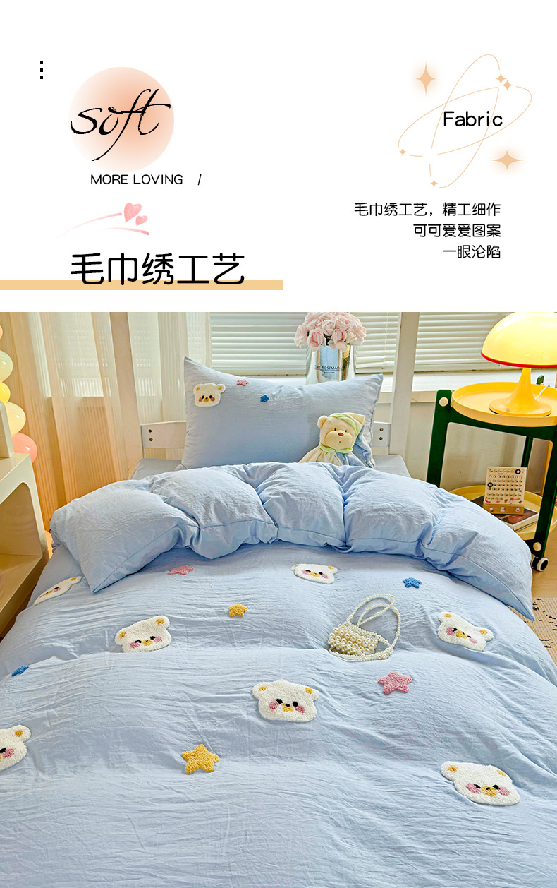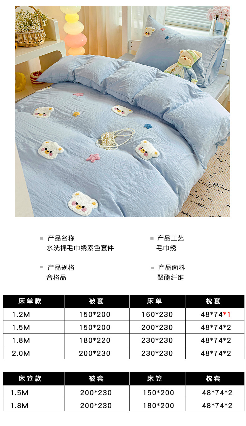 (总)韩巢家纺 2026新款水洗棉毛巾绣四件套,幸运猫-浅蓝,幸运猫-奶黄,幸运猫-浅粉,幸运熊-浅粉,幸运熊-浅绿黄,幸运熊-浅蓝,哈哈狗-浅蓝,哈哈狗-浅绿黄,小精灵-浅粉,小精灵-浅蓝