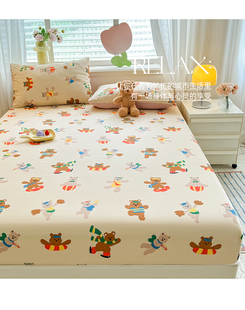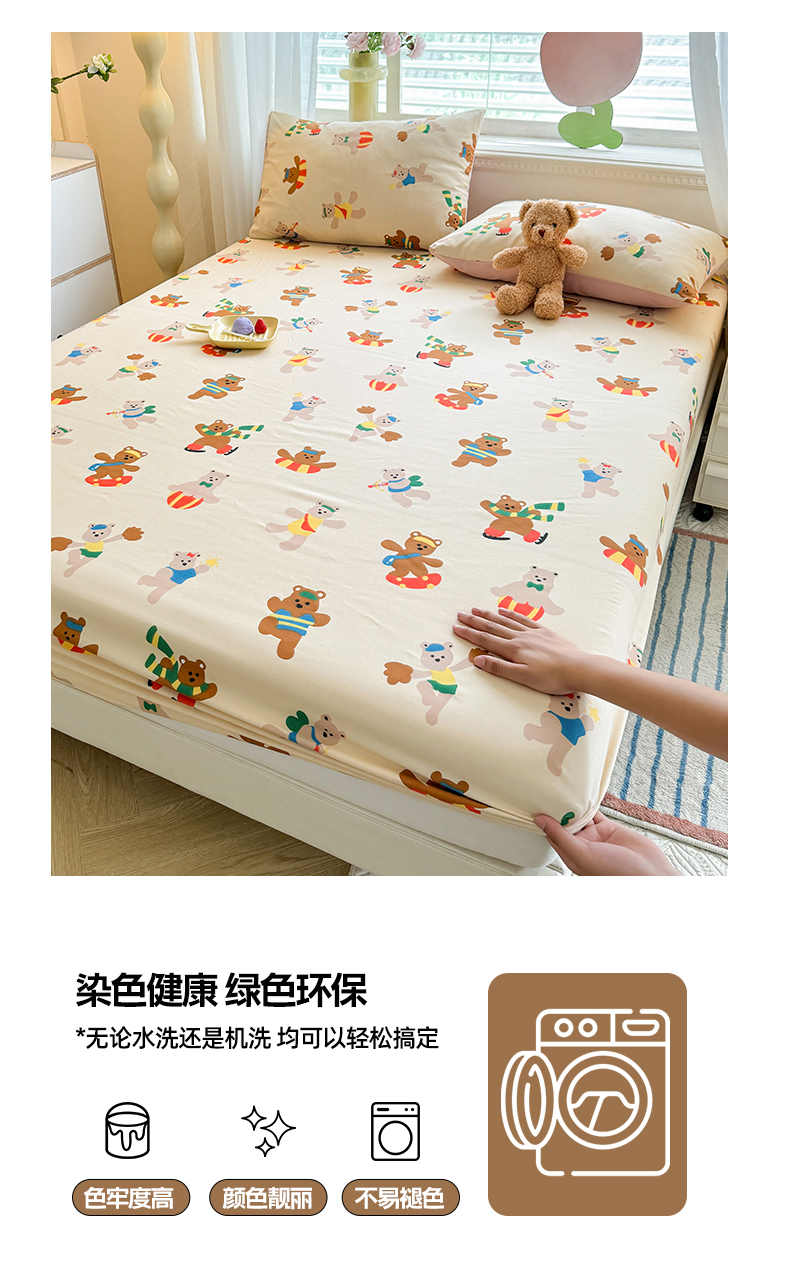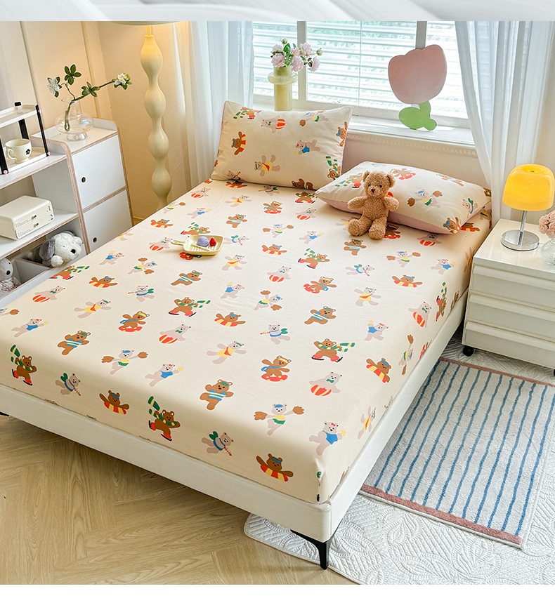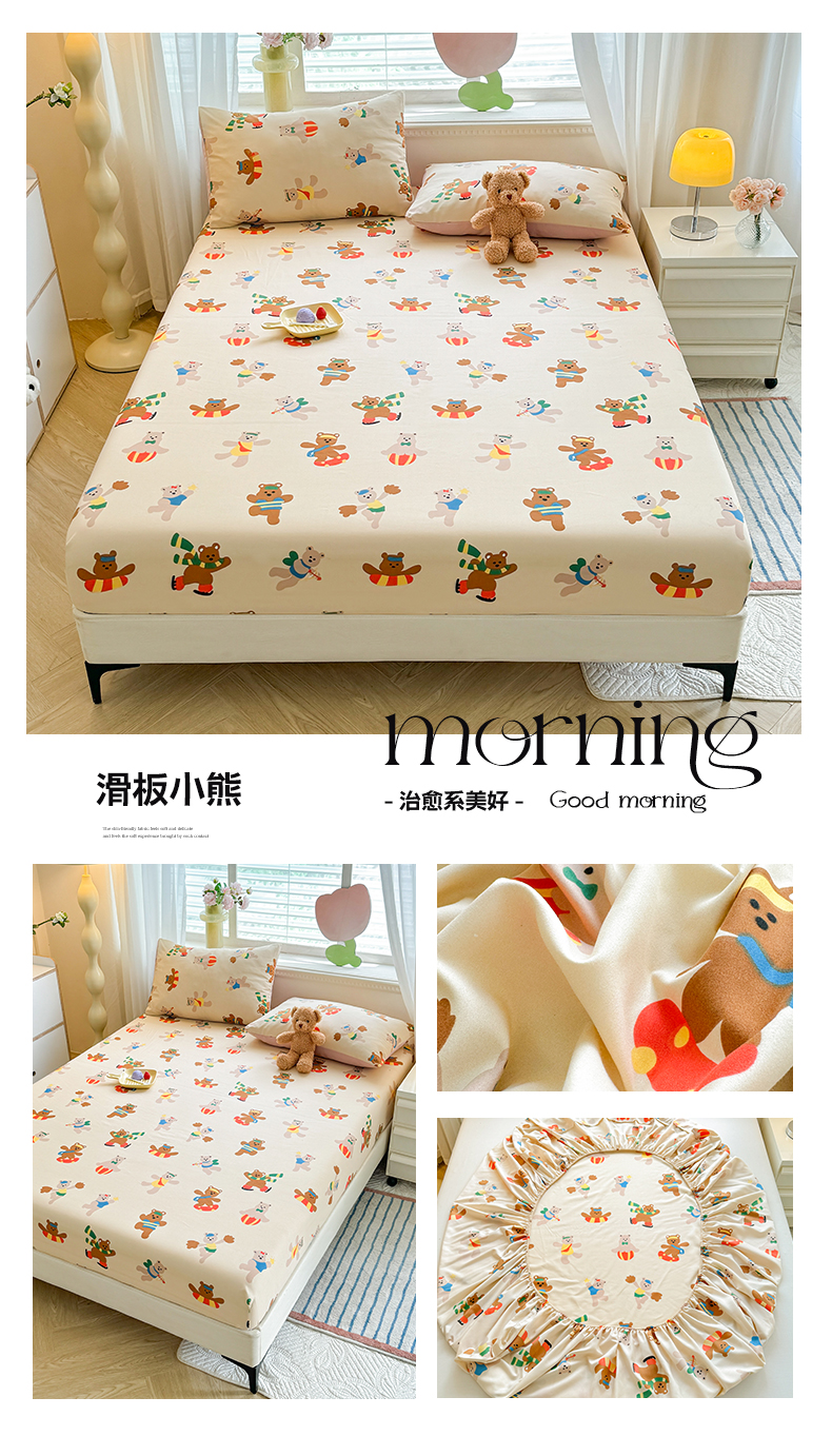 妖妖家纺 2024新款超柔软糯亲肤水洗棉单床笠 滑板小熊