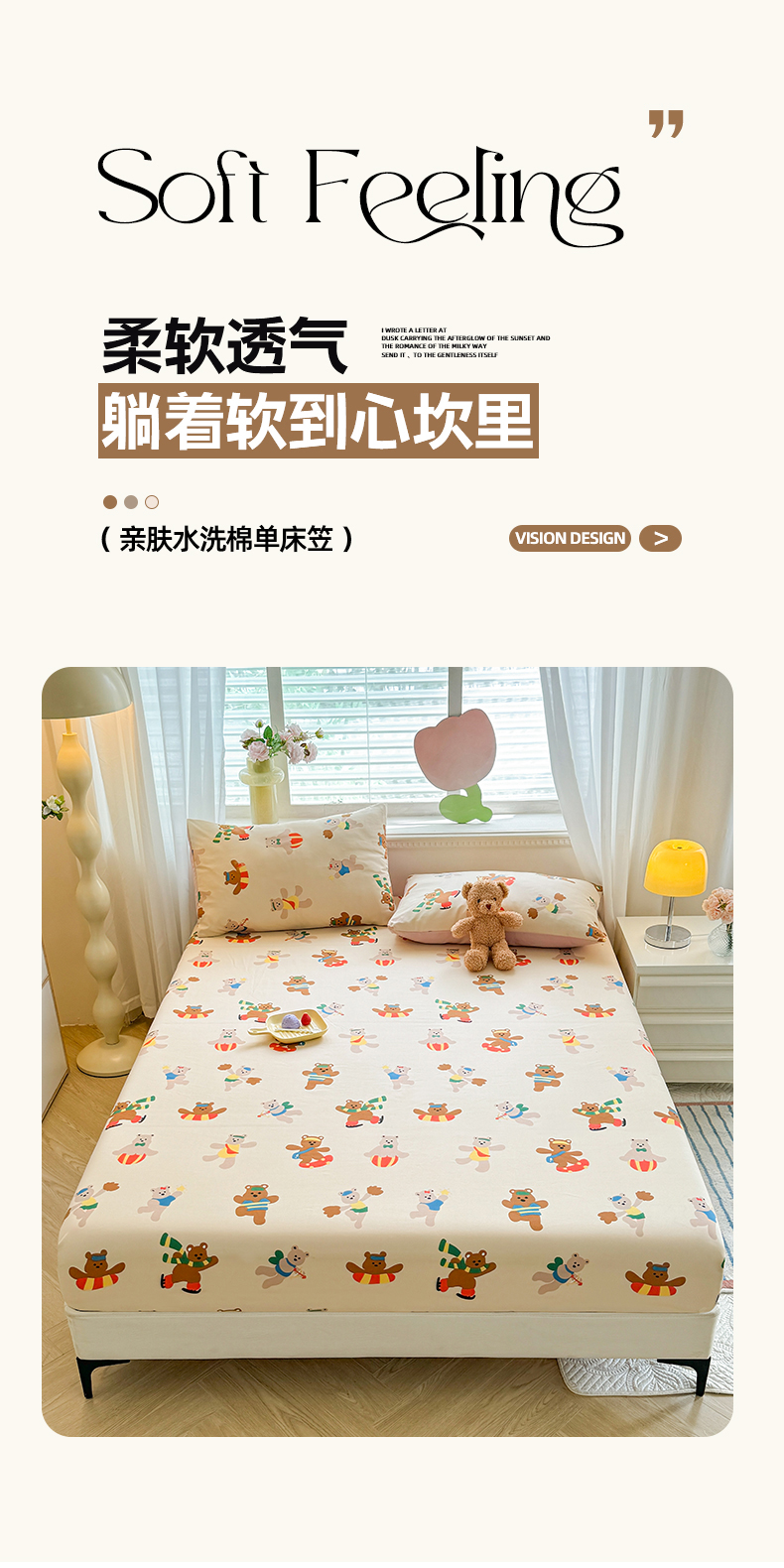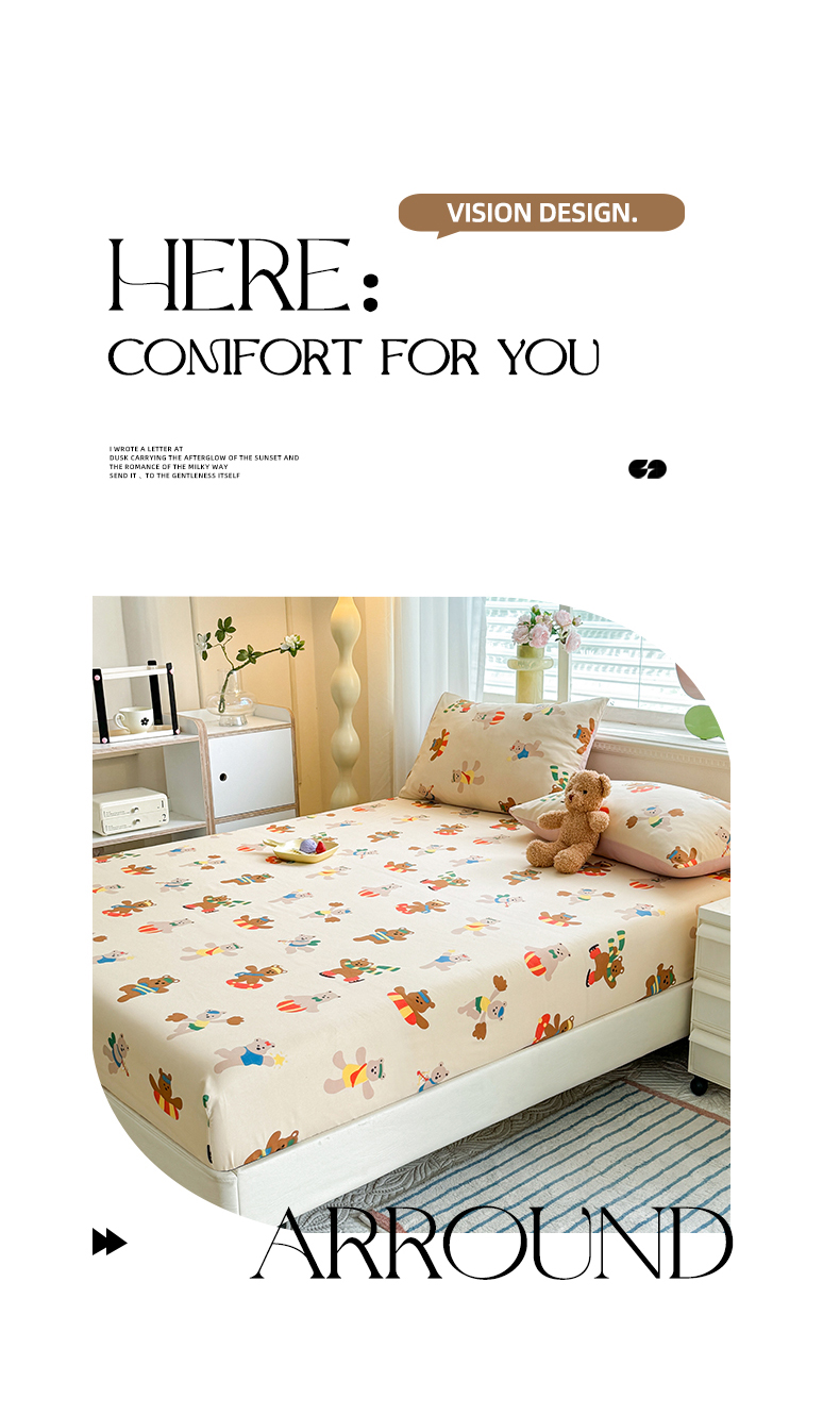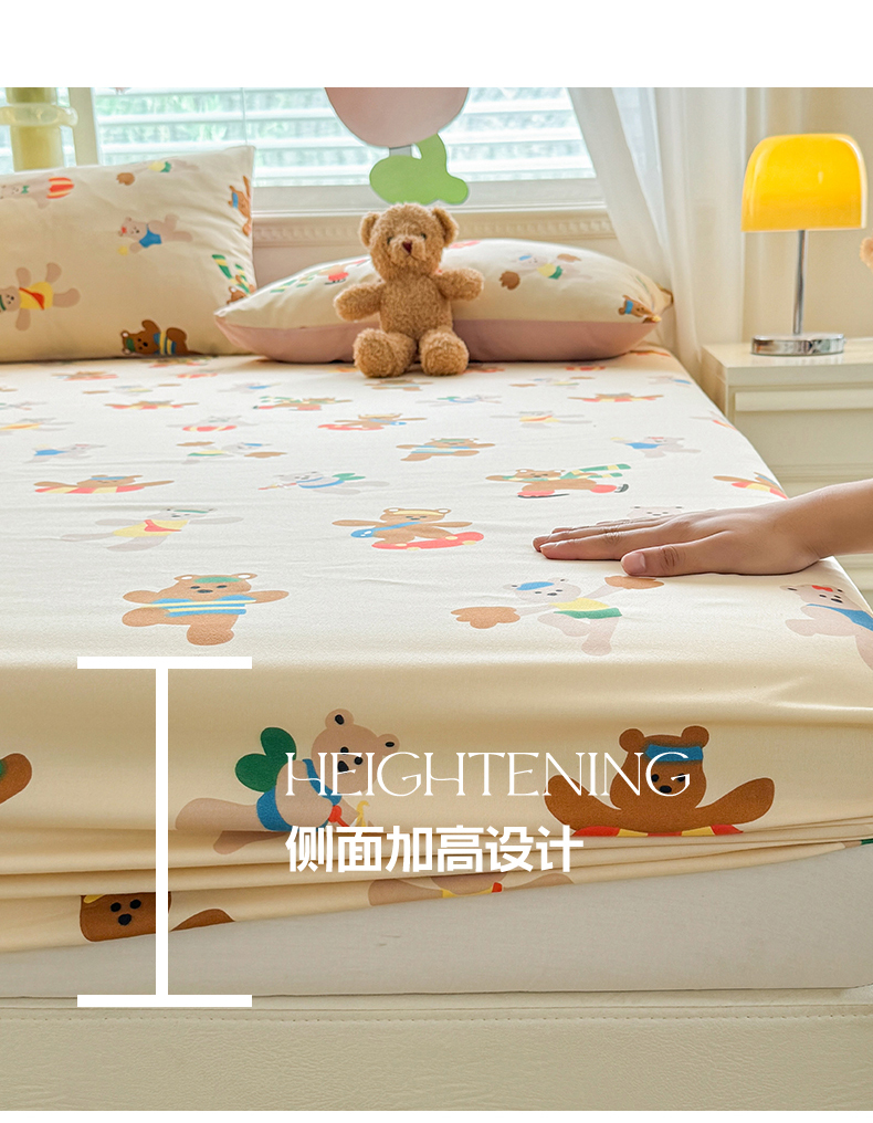 妖妖家纺 2024新款超柔软糯亲肤水洗棉单床笠 滑板小熊