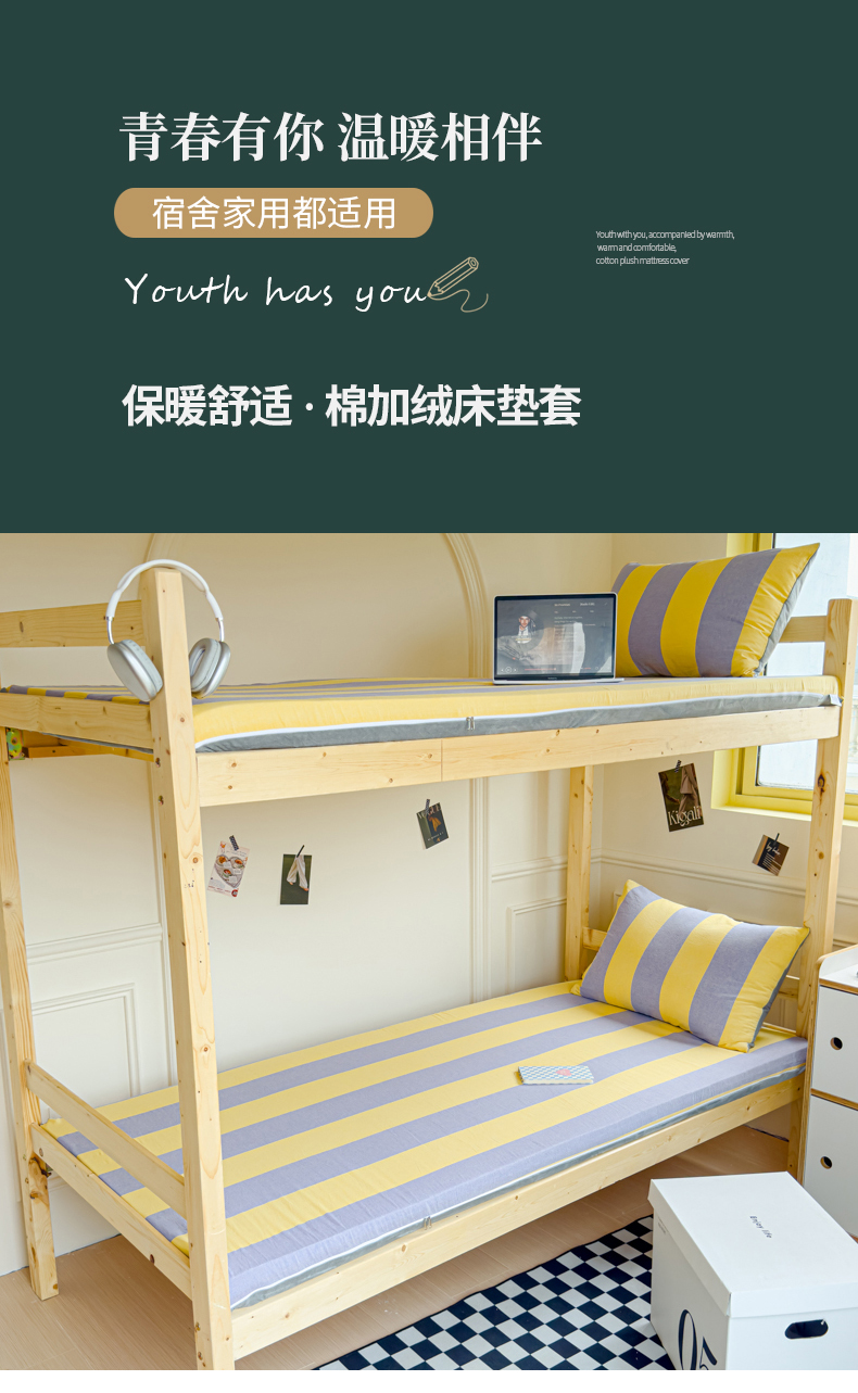 当前位置: 91家纺网 > 商品网购 > 床垫/床褥 > 普通床垫 > 金丝鸟家纺 2024新款全棉色织水洗棉水晶绒床垫套 黄紫大竖条