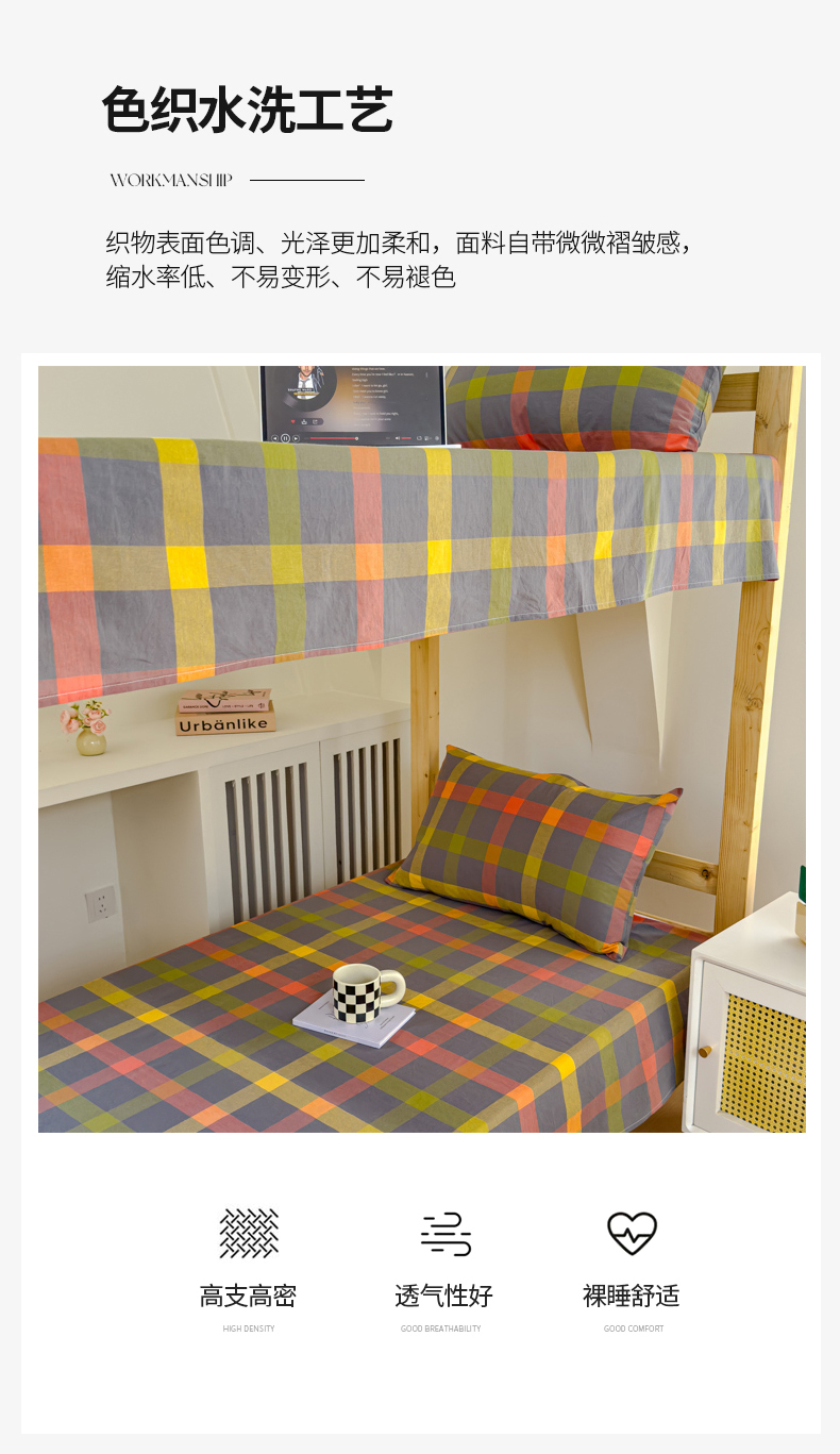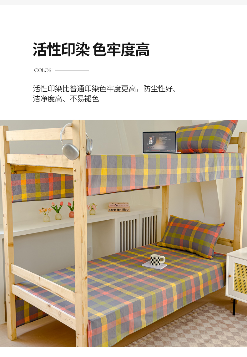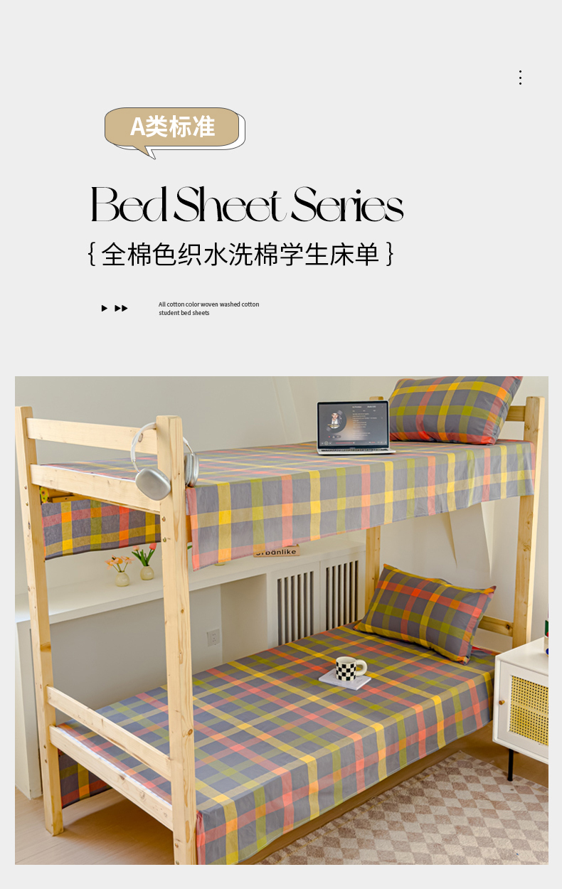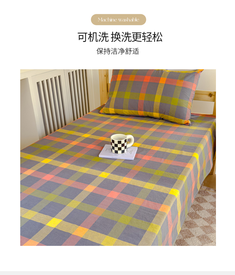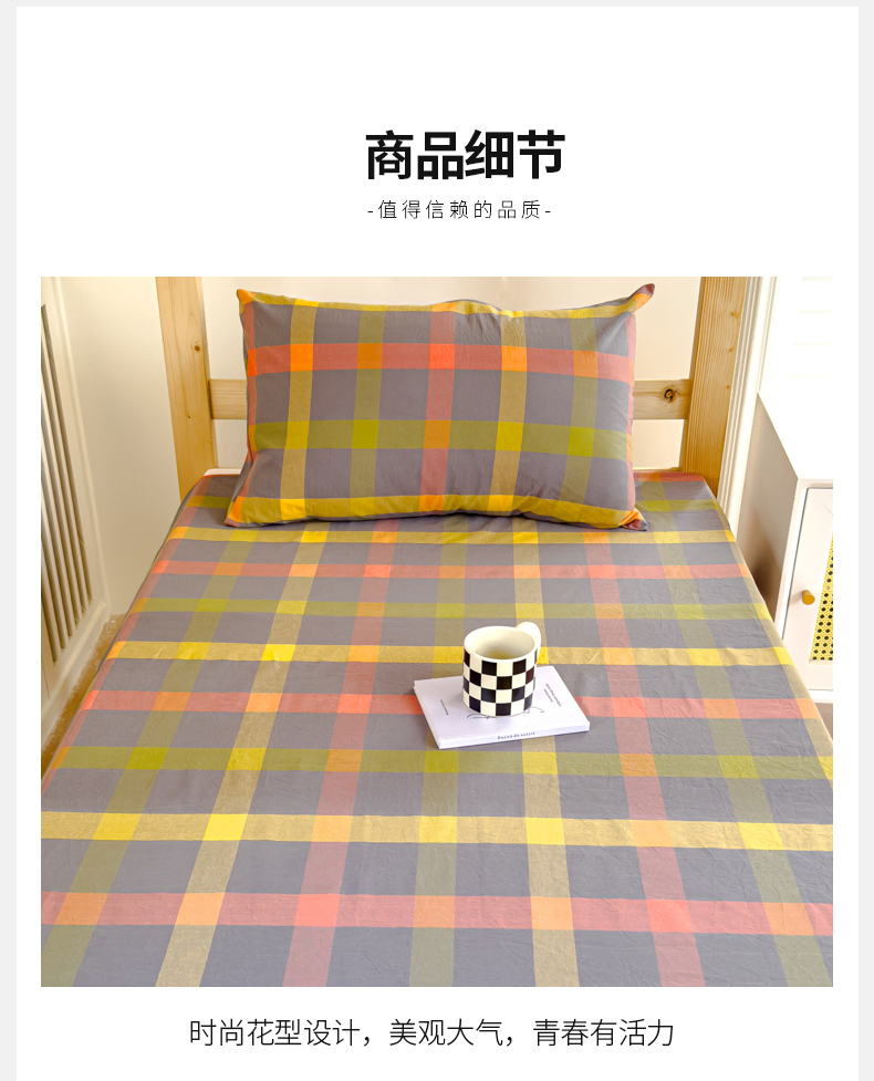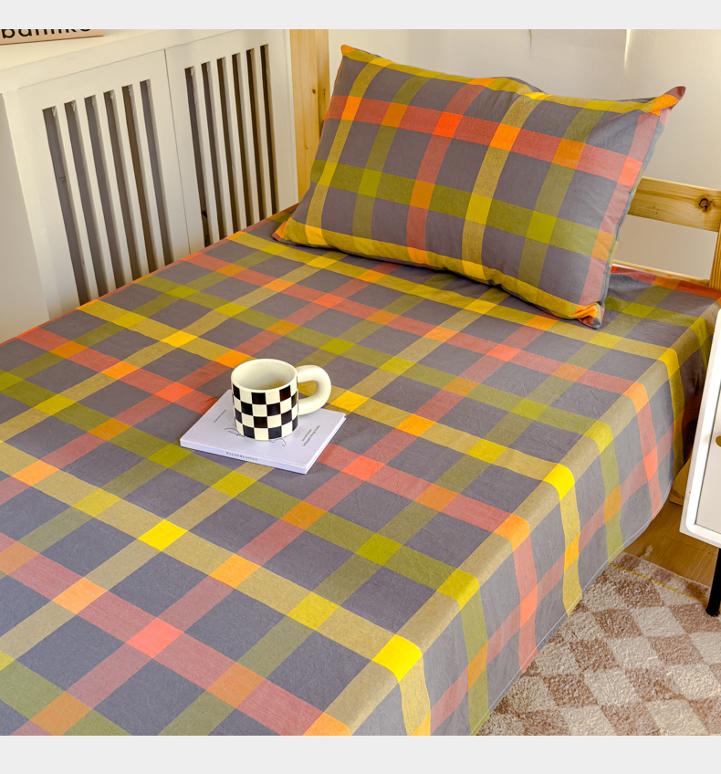 • 91家纺网 家纺一手货源 找家纺 金丝鸟家纺 2024新款A类全棉色织水洗棉单床单系列(学生床) 彩色格子