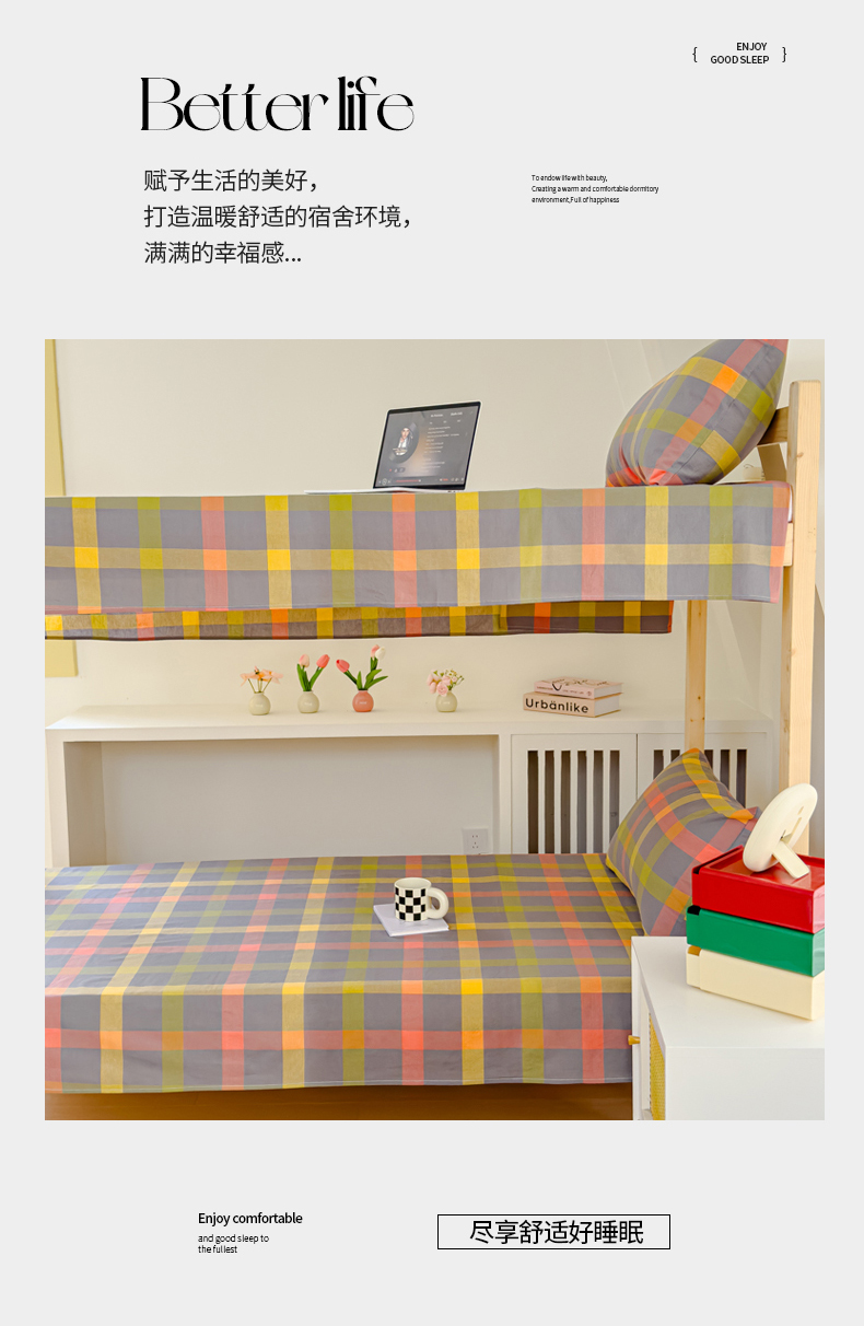 金丝鸟家纺 2024新款A类全棉色织水洗棉单床单系列(学生床) 彩色格子