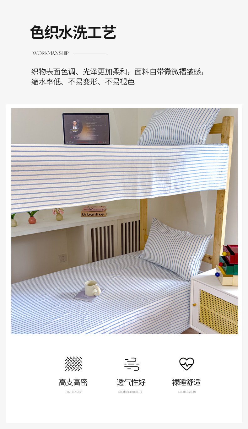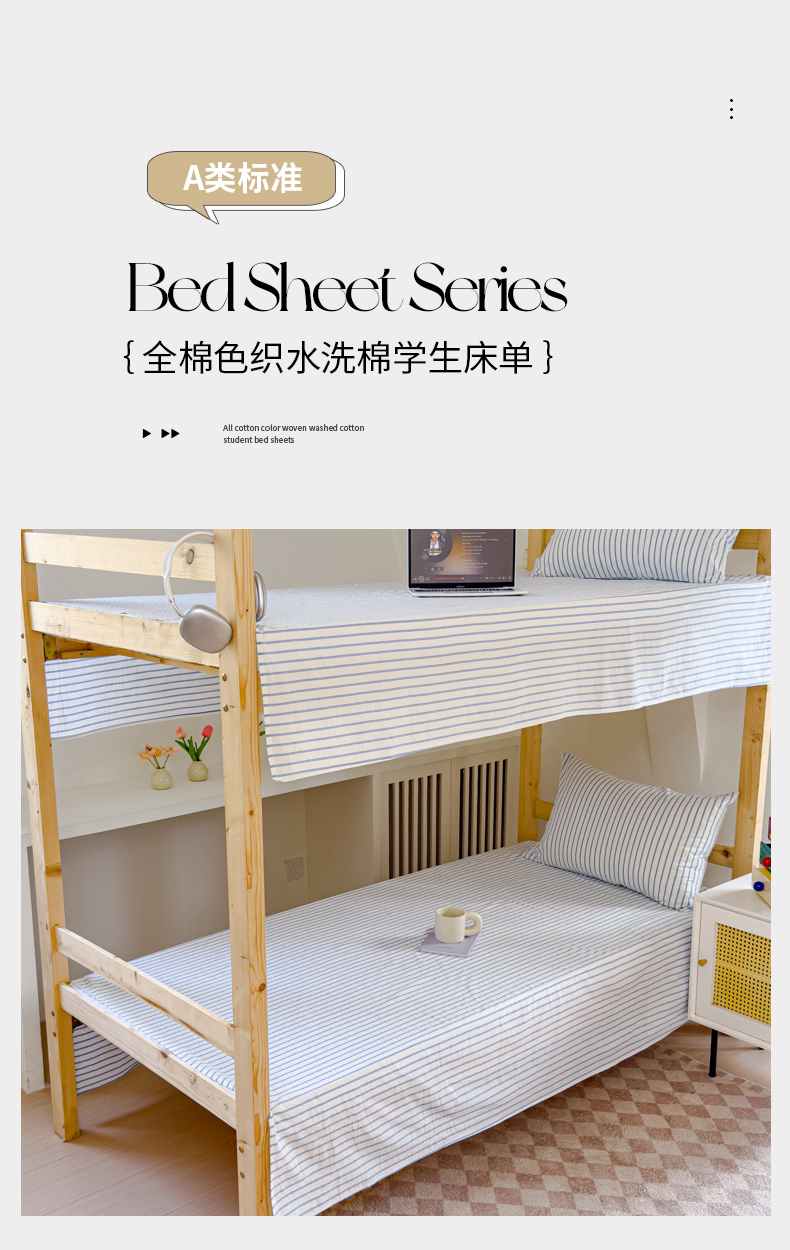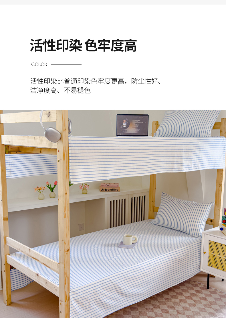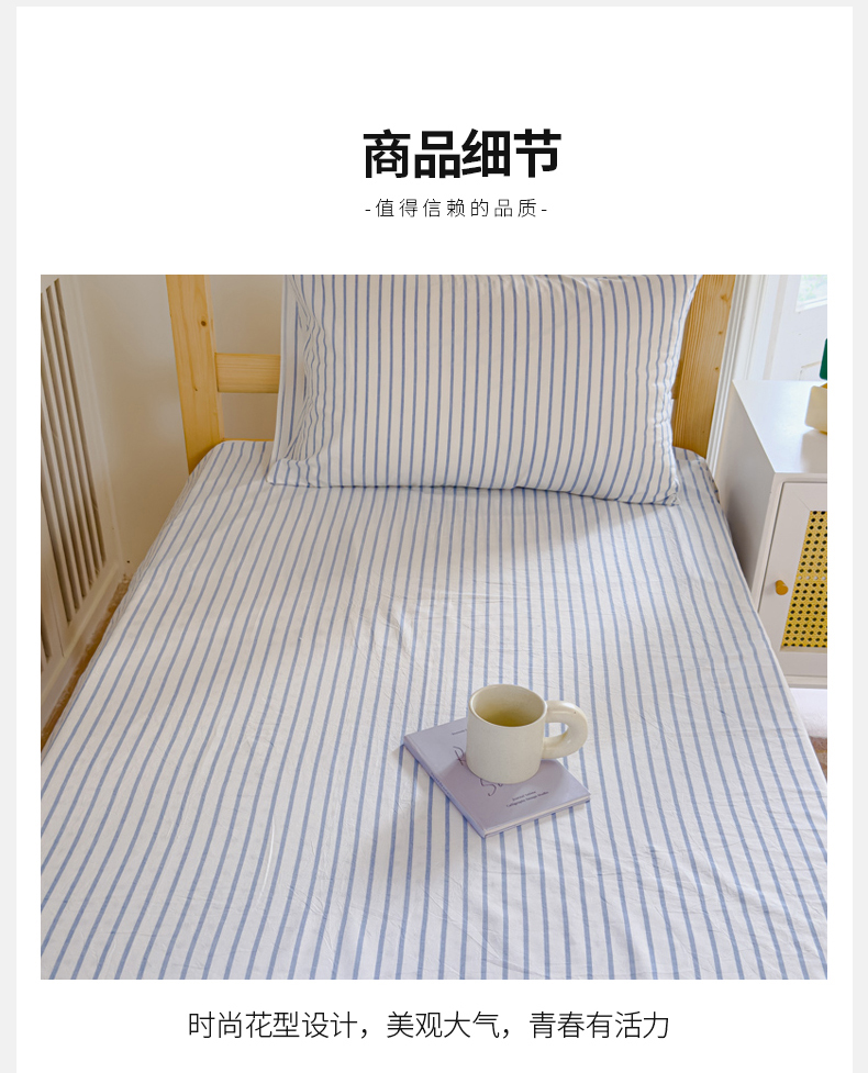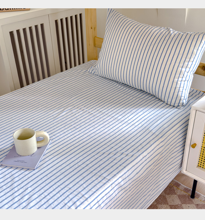 • 91家纺网 家纺一手货源 找家纺 金丝鸟家纺 2024新款A类全棉色织水洗棉单床单系列(学生床) 蓝色中条