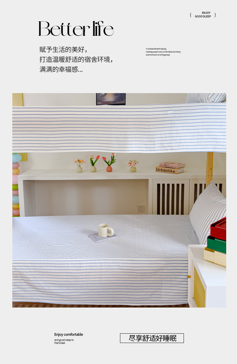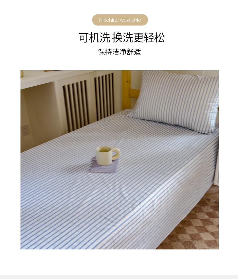 金丝鸟家纺 2024新款A类全棉色织水洗棉单床单系列(学生床) 蓝色中条