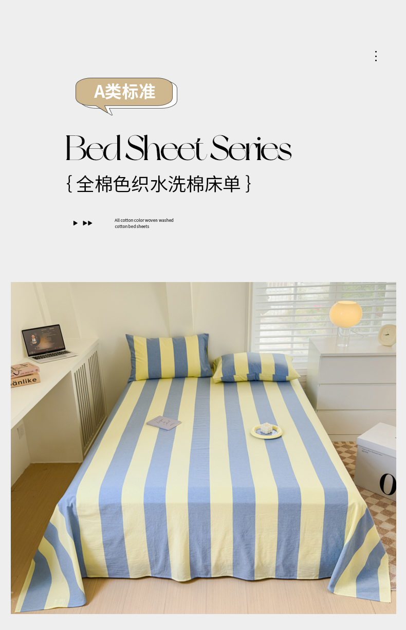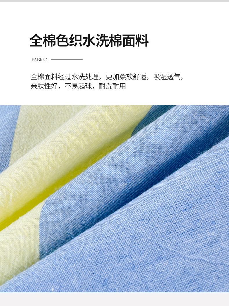 • 91家纺网 家纺一手货源 找家纺 金丝鸟家纺 2024新款A类全棉色织水洗棉单床单系列 黄蓝大竖条