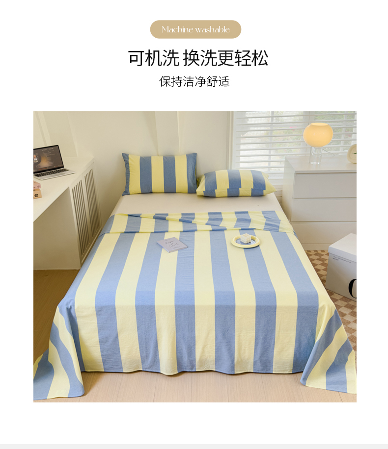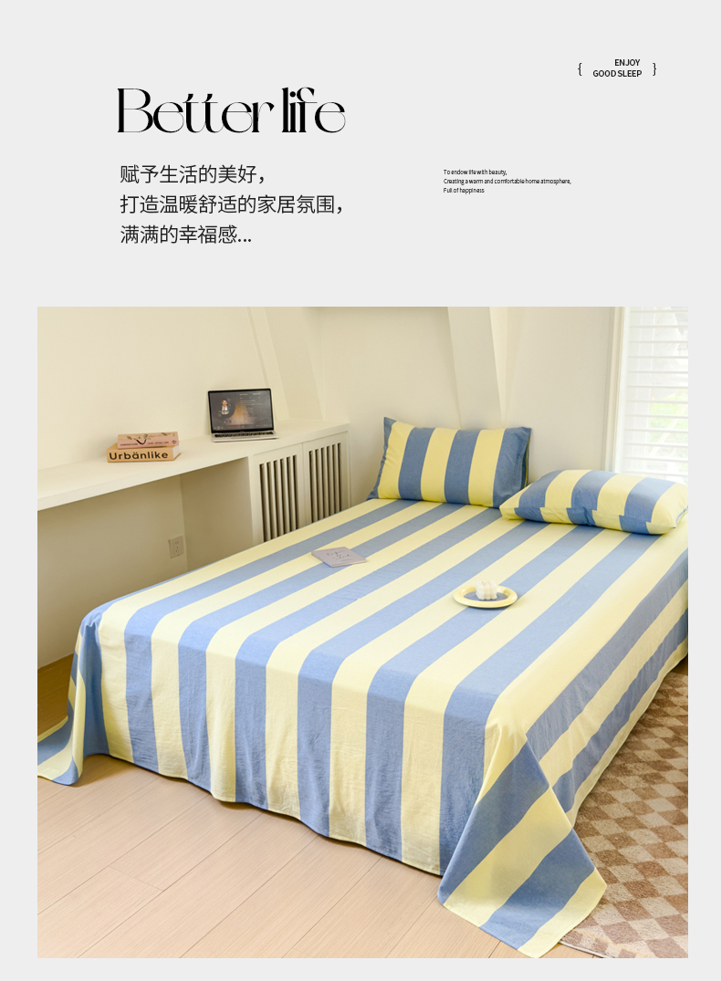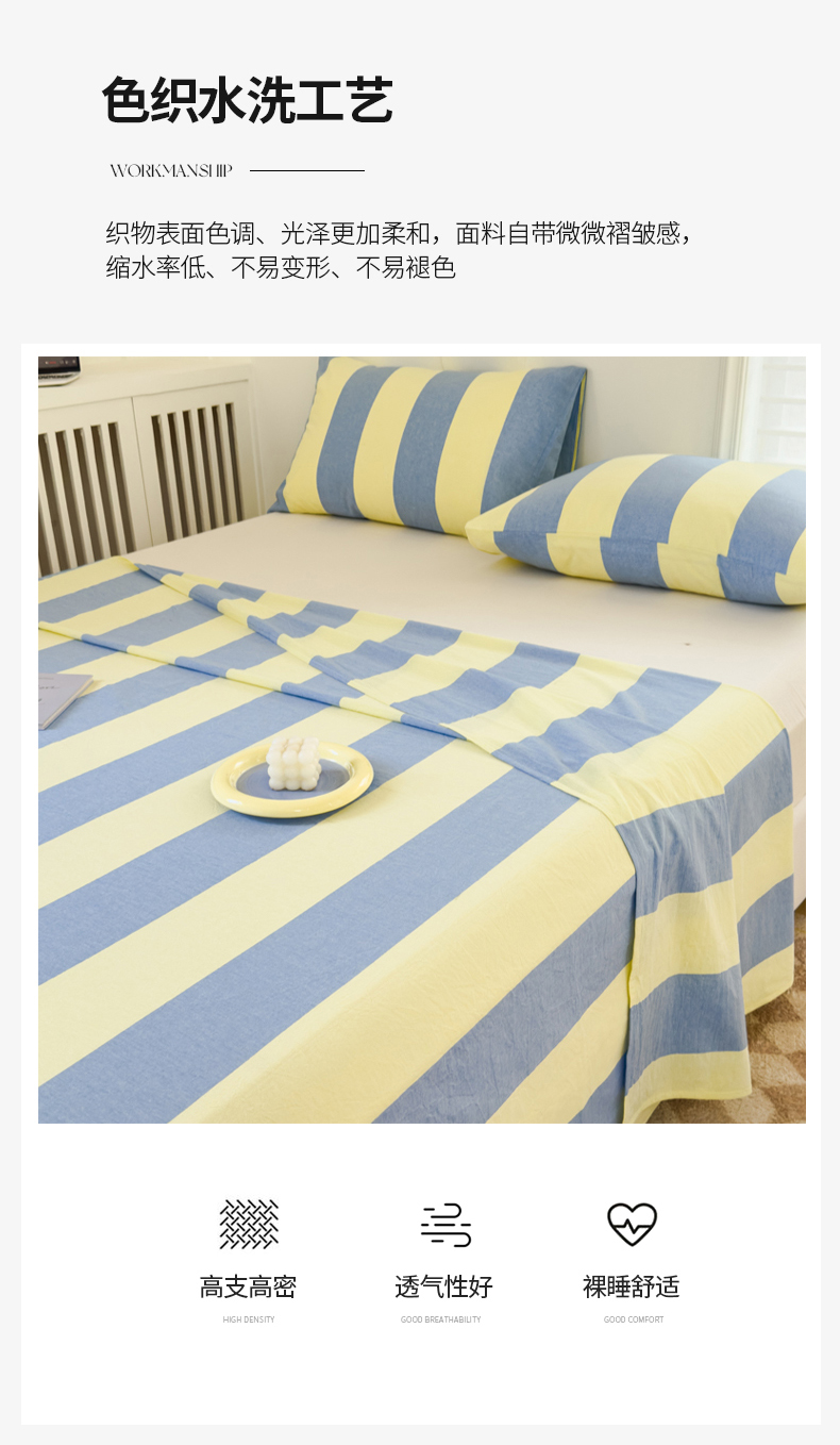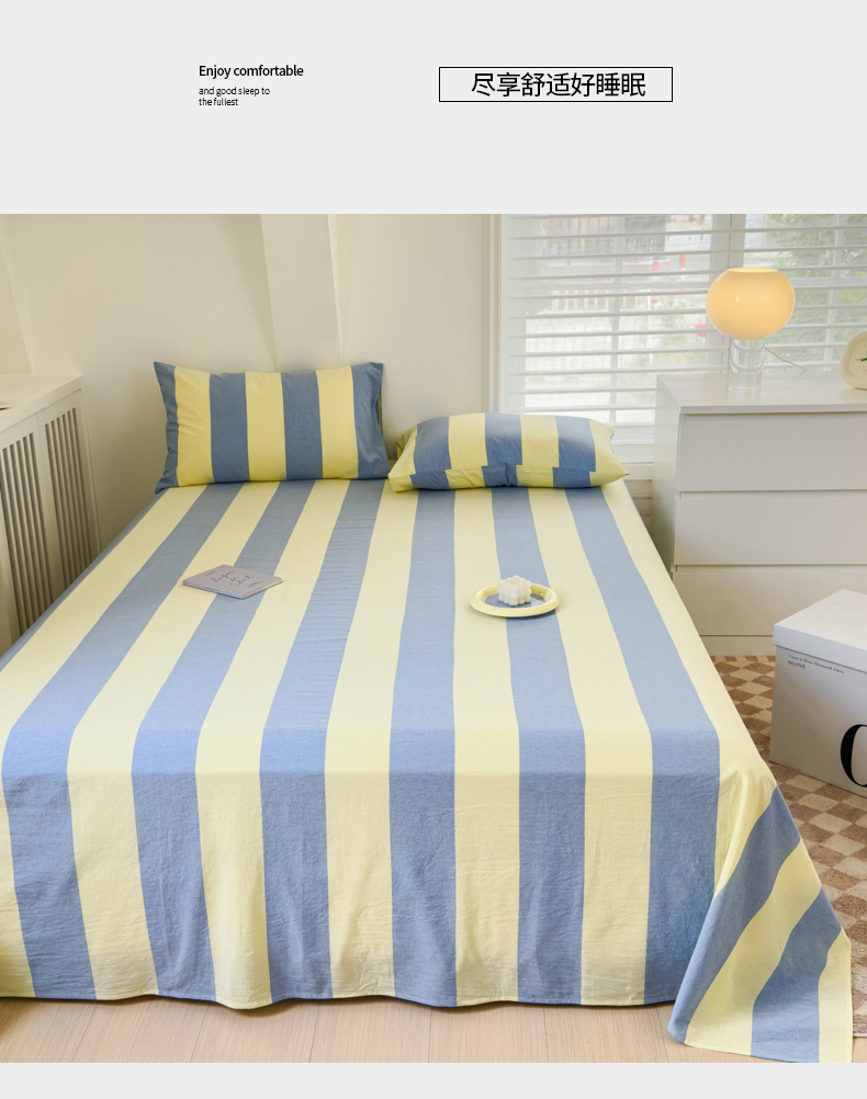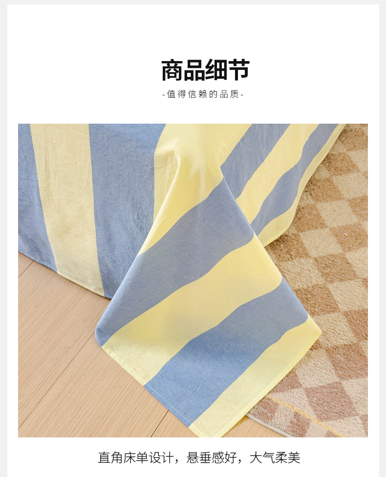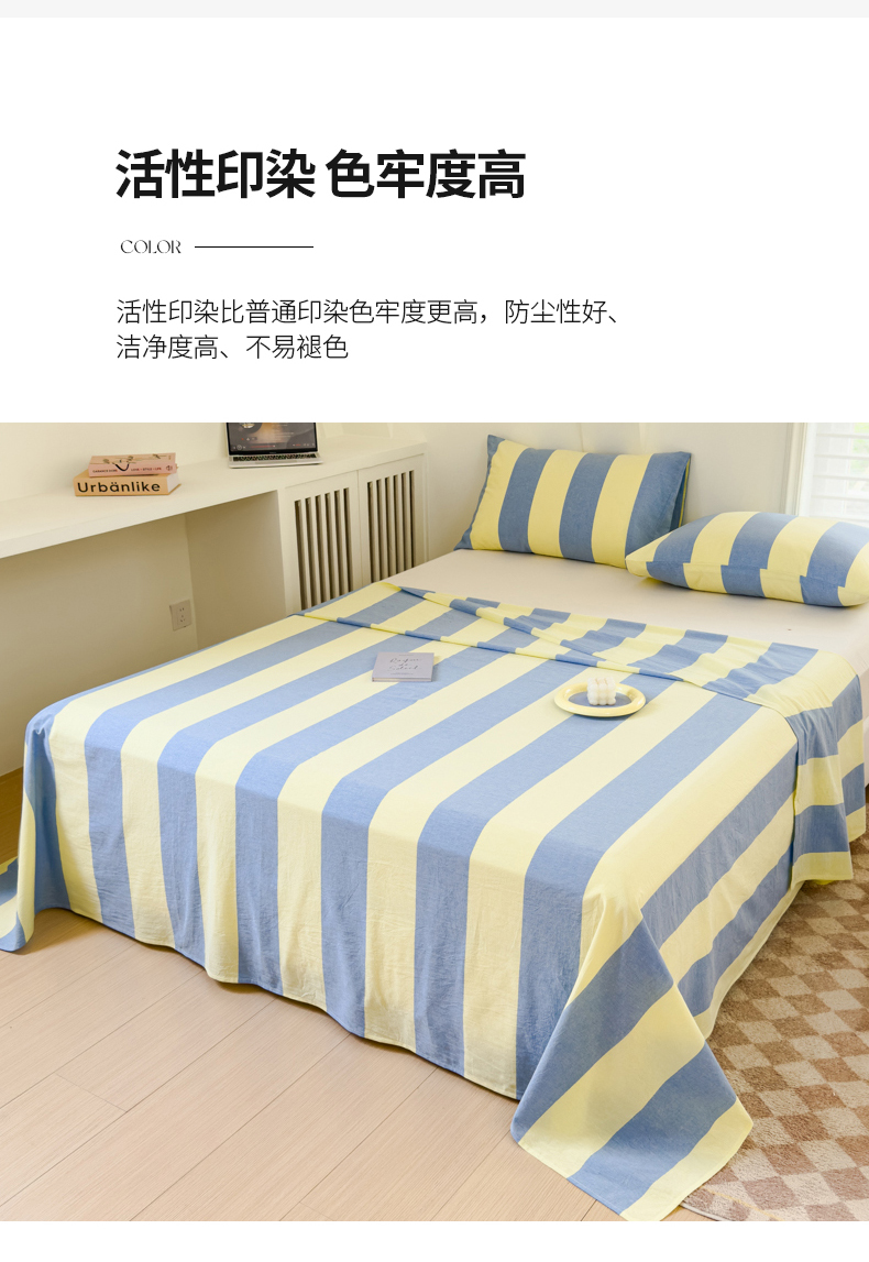 金丝鸟家纺 2024新款A类全棉色织水洗棉单床单系列 黄蓝大竖条