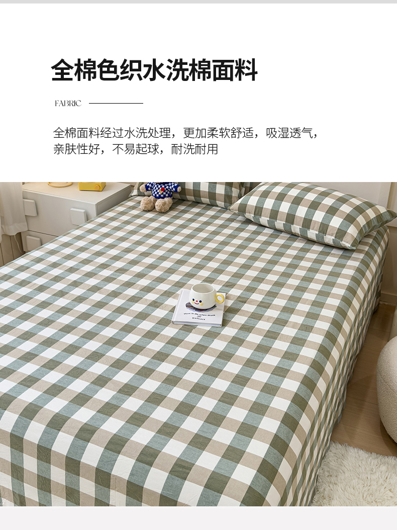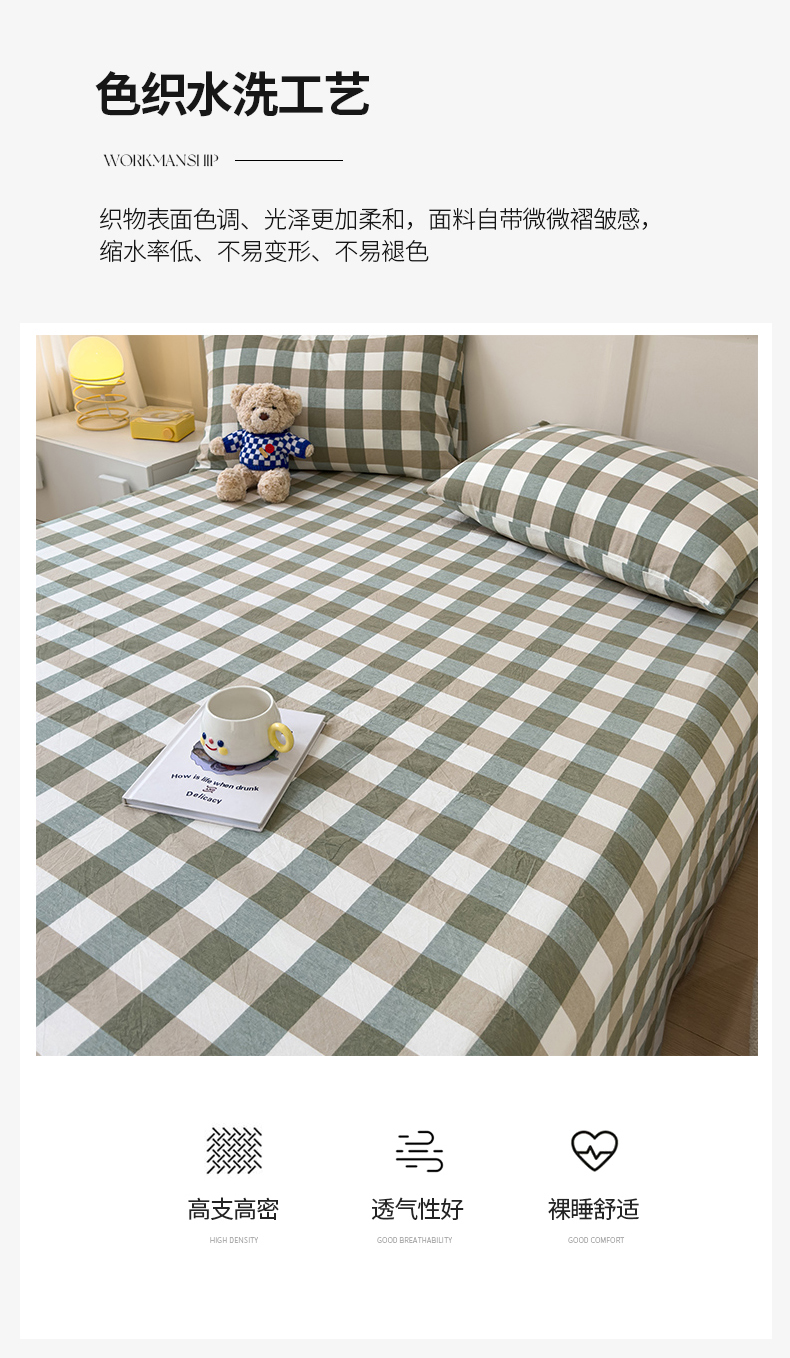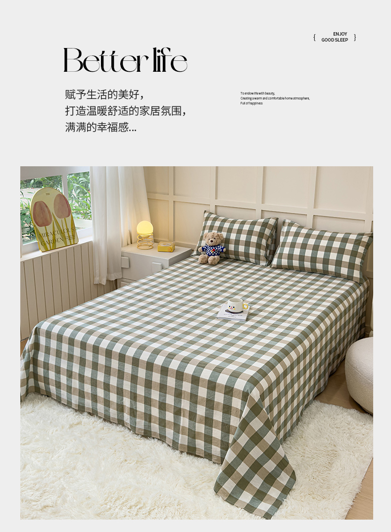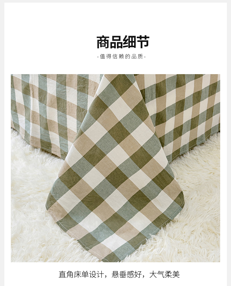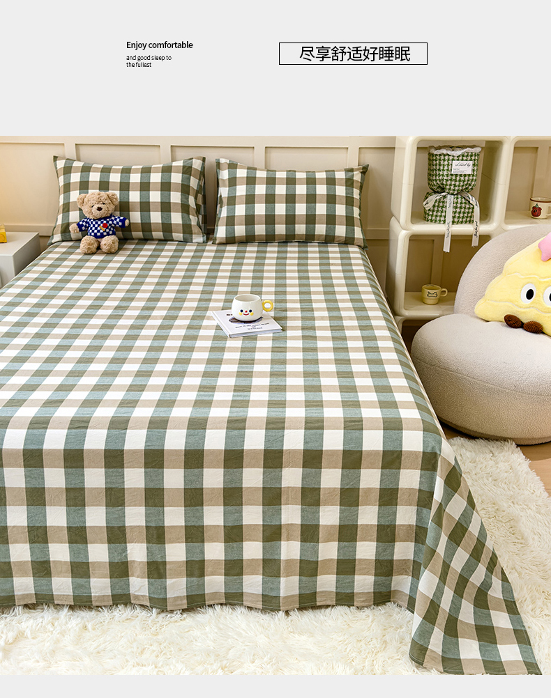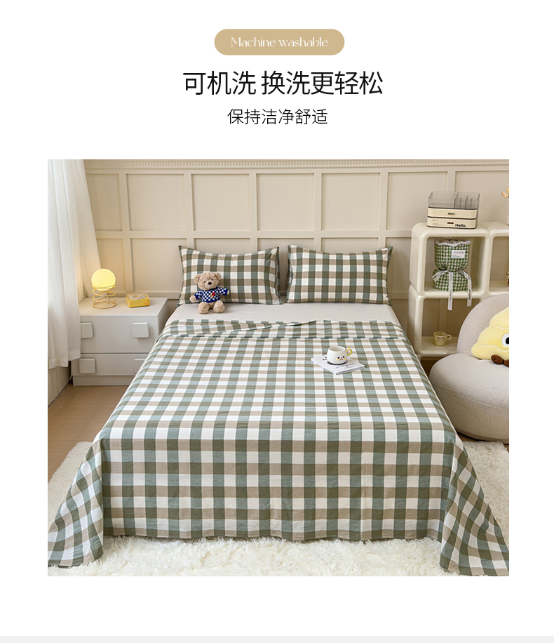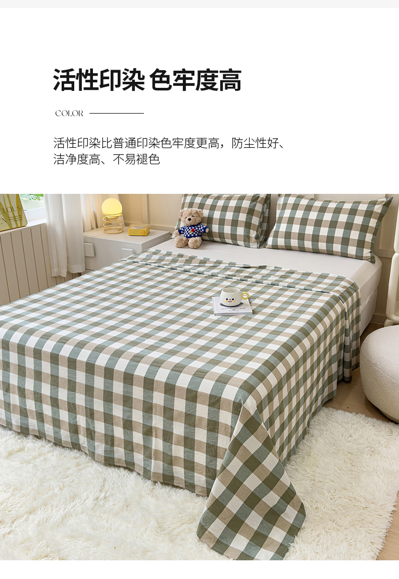 金丝鸟家纺 2024新款A类全棉色织水洗棉单床单系列 绿中格