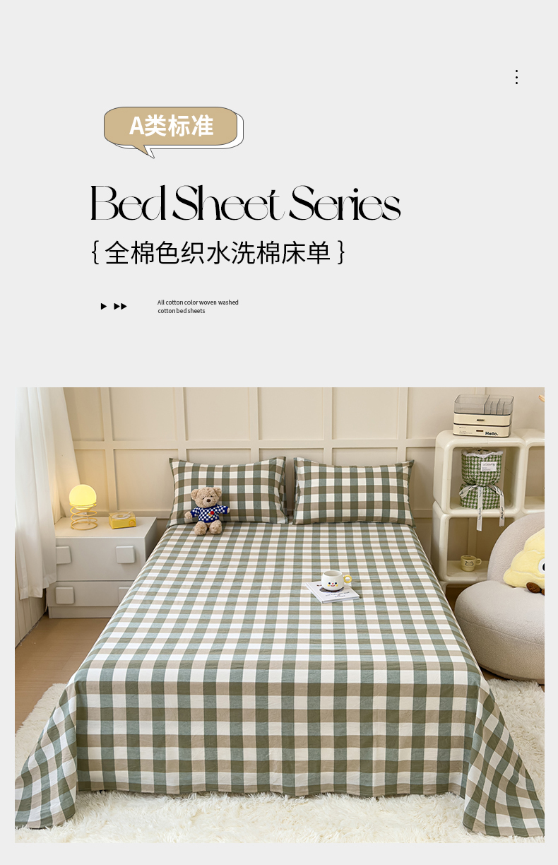 • 91家纺网 家纺一手货源 找家纺 金丝鸟家纺 2024新款A类全棉色织水洗棉单床单系列 绿中格