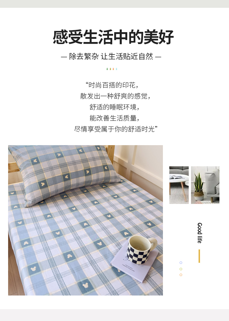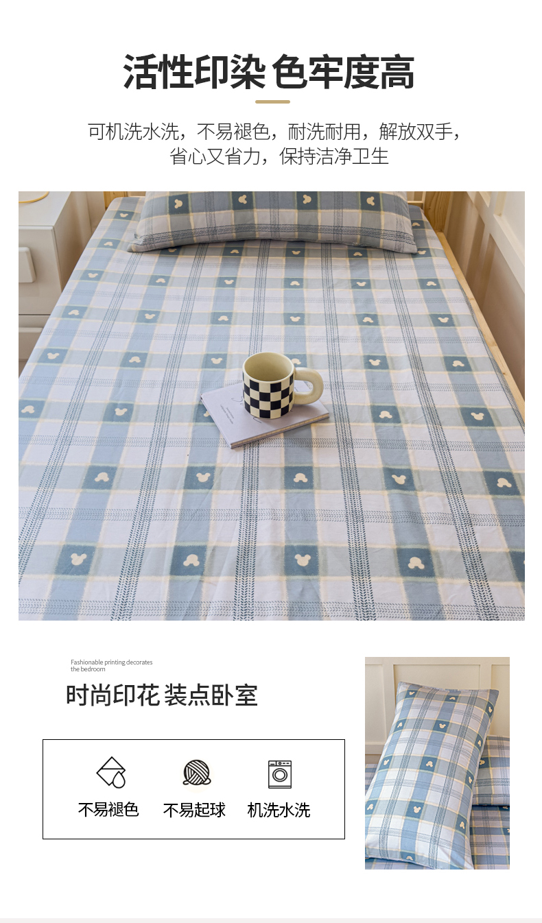 • 91家纺网 家纺一手货源 找家纺 金丝鸟家纺 2024新款全棉小清新印花单床笠系列(学生床) 小格米奇