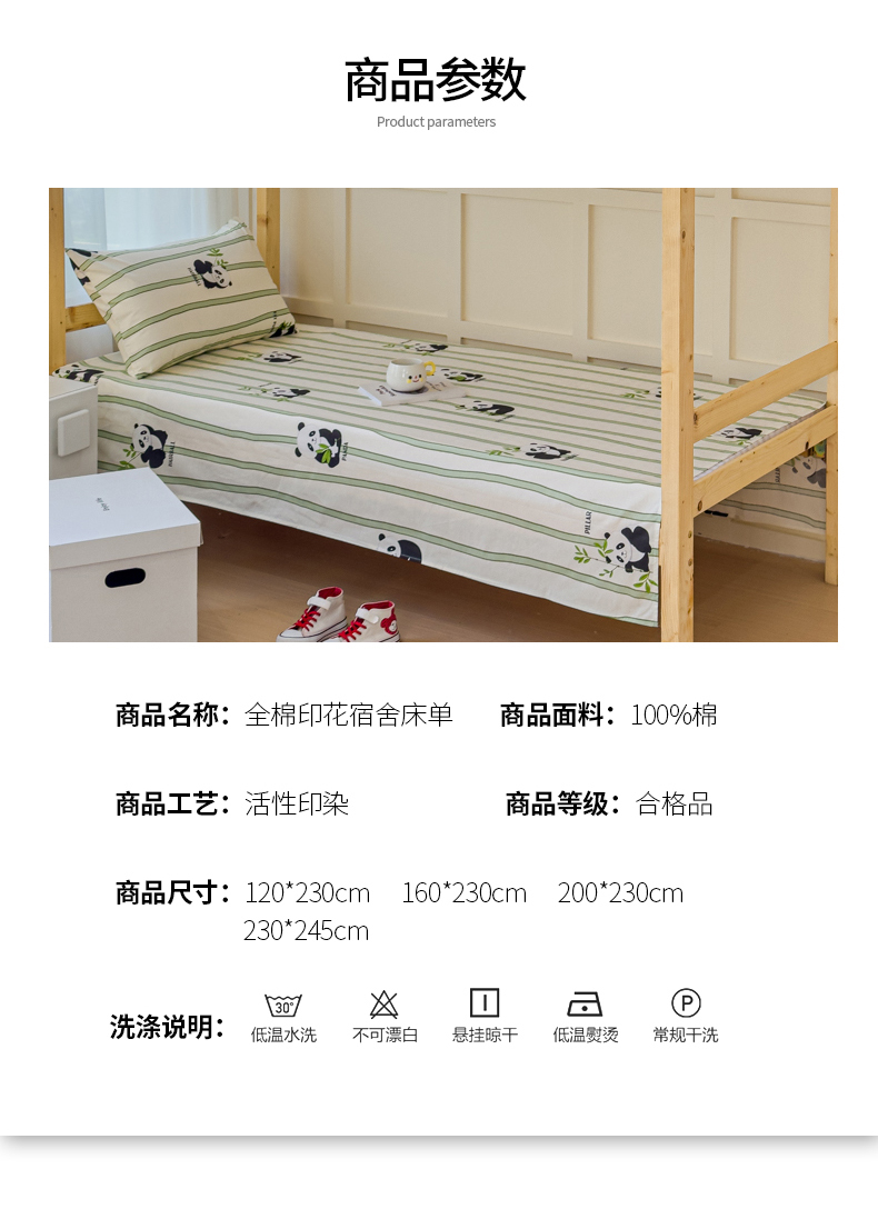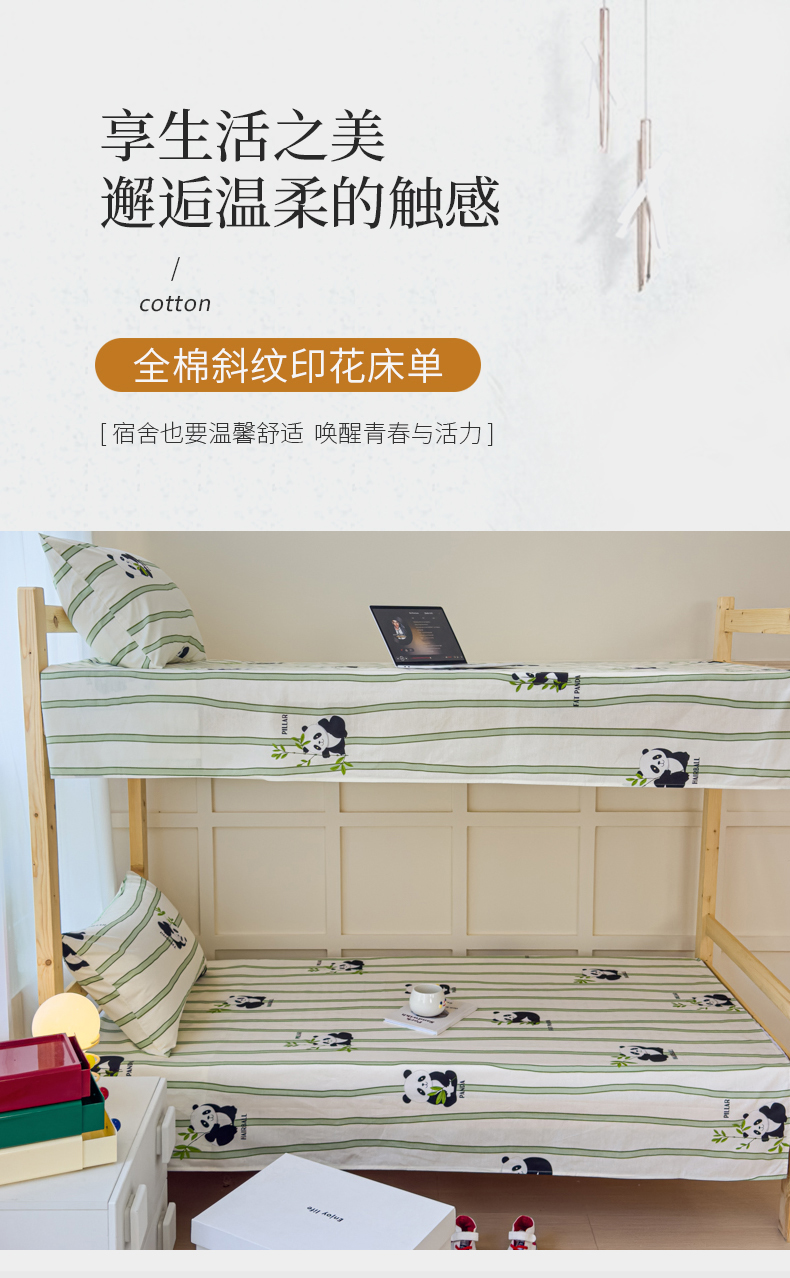 金丝鸟家纺 2024新款全棉小清新印花单床单系列(学生床) 竹林团子