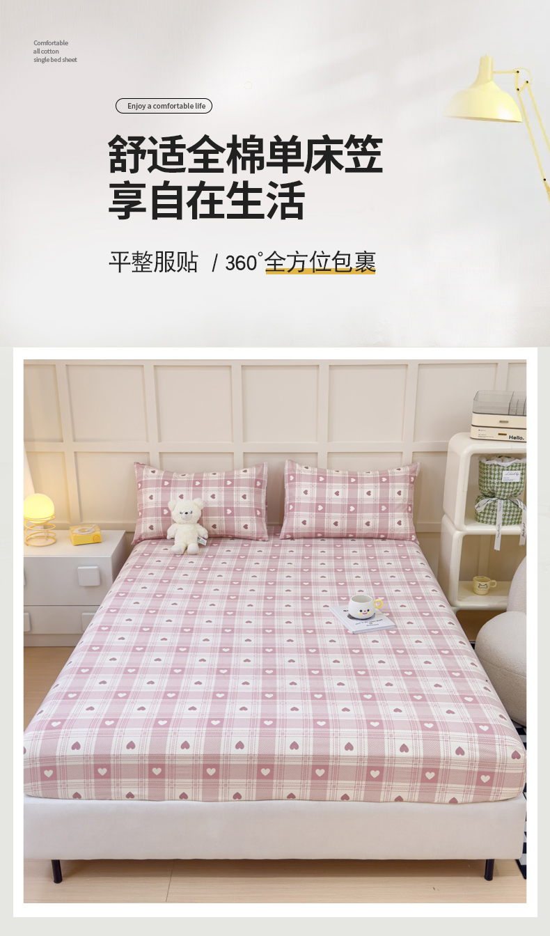 金丝鸟家纺 2024新款全棉小清新印花单床笠系列 美心格