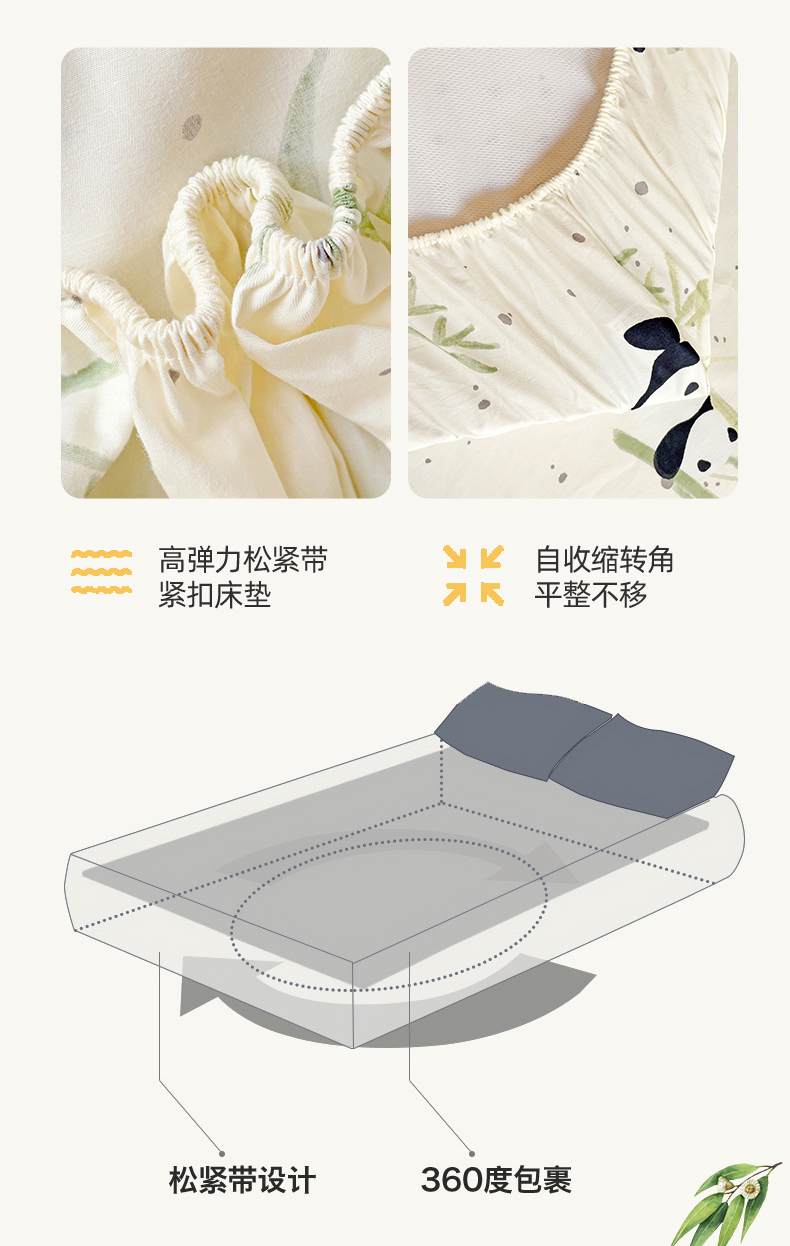 名兮家居 2024新款学生床上下铺全棉床笠 熊猫家园