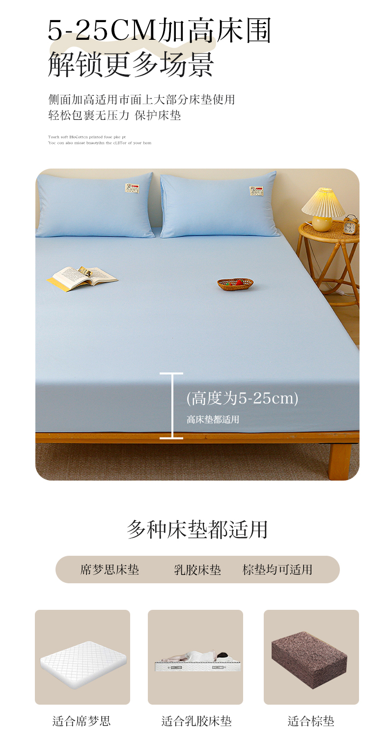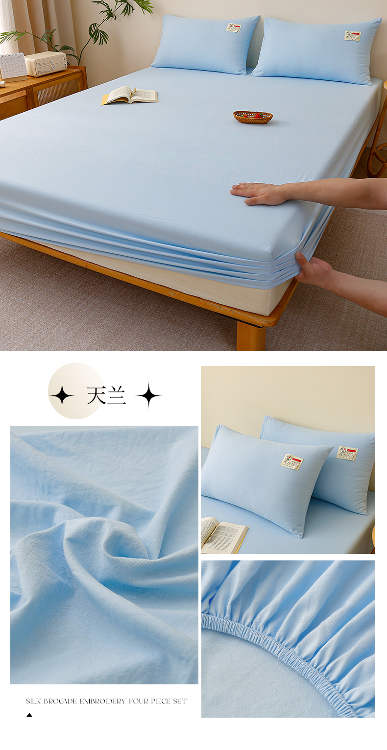 商品名称:2024新款A类云朵棉纯色床笠 天兰