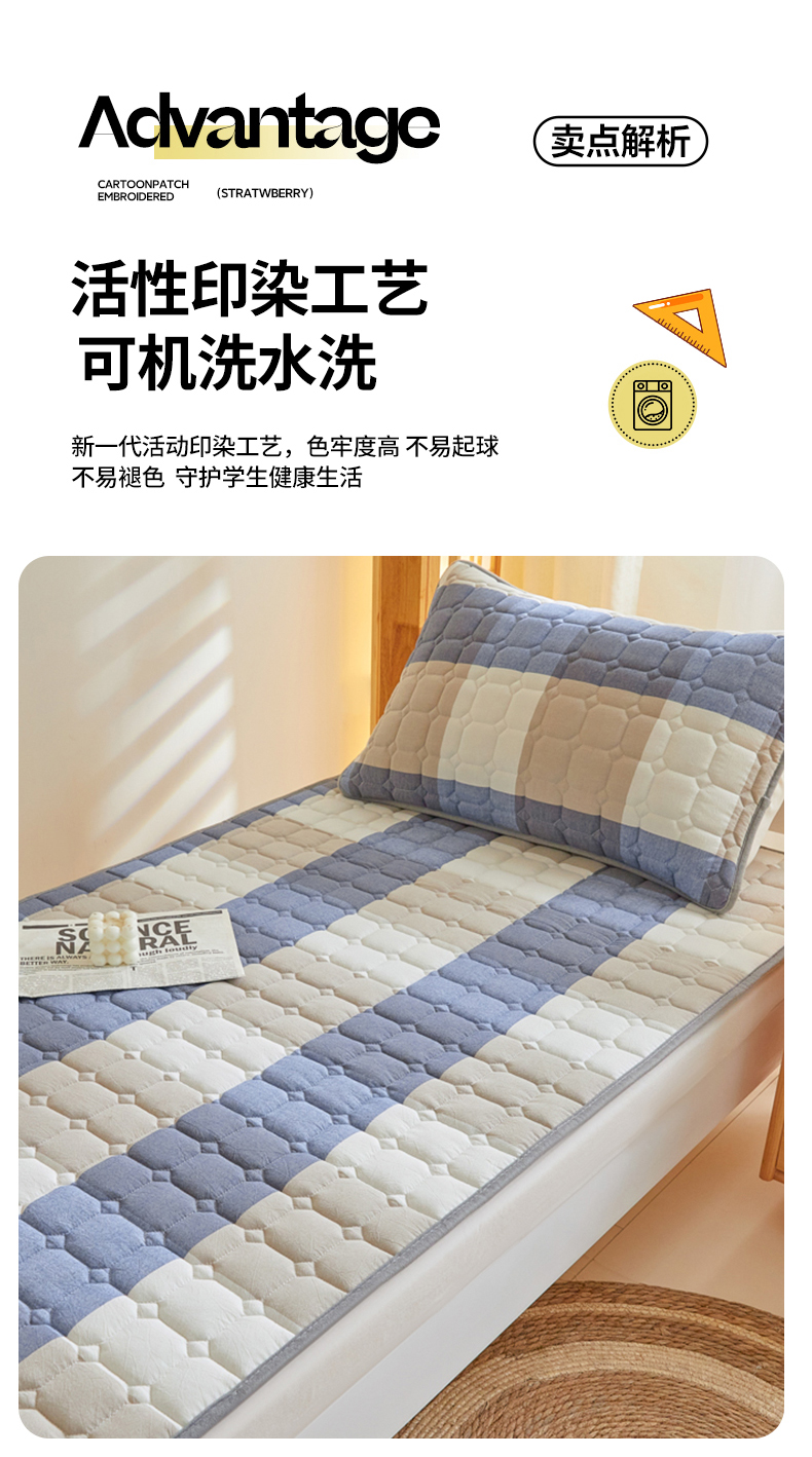 当前位置: 91家纺网 > 商品网购 > 床垫/床褥 > 鑫钰 2025新款学生宿舍A类水洗棉大豆夹棉系列-简格 简格-蓝大格