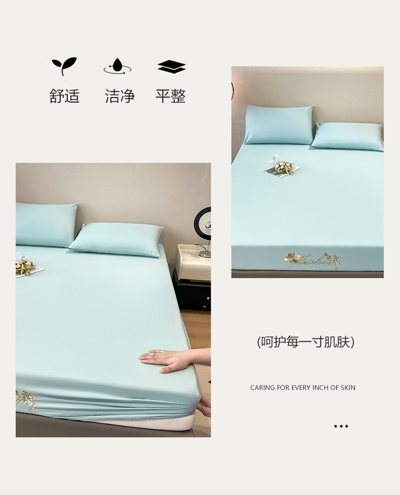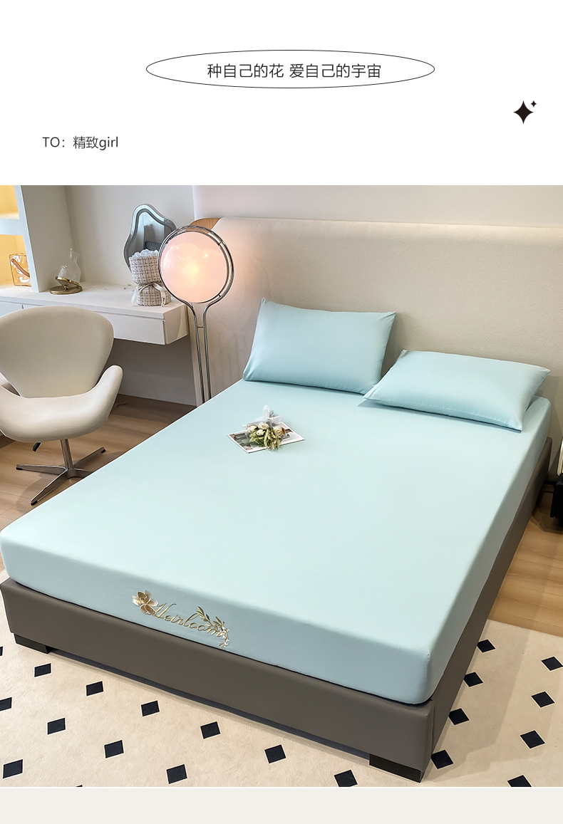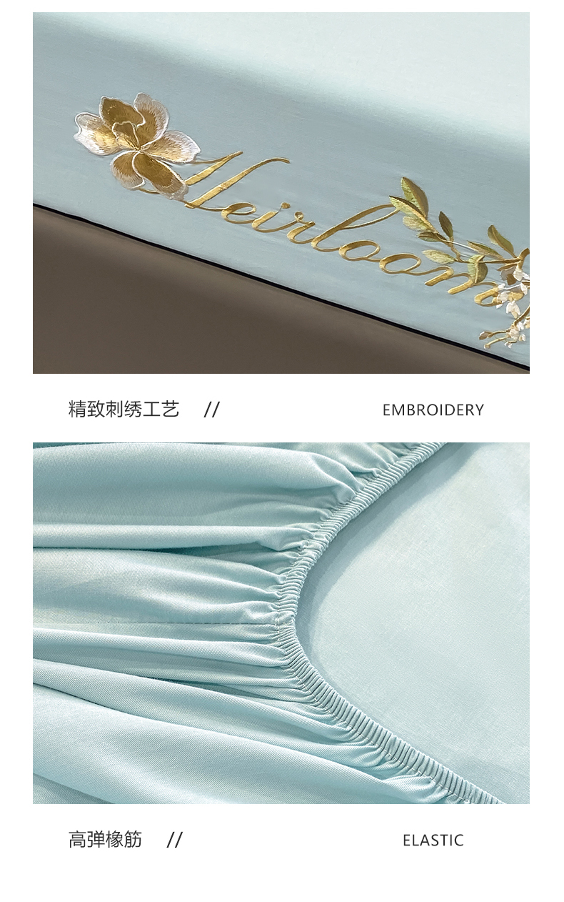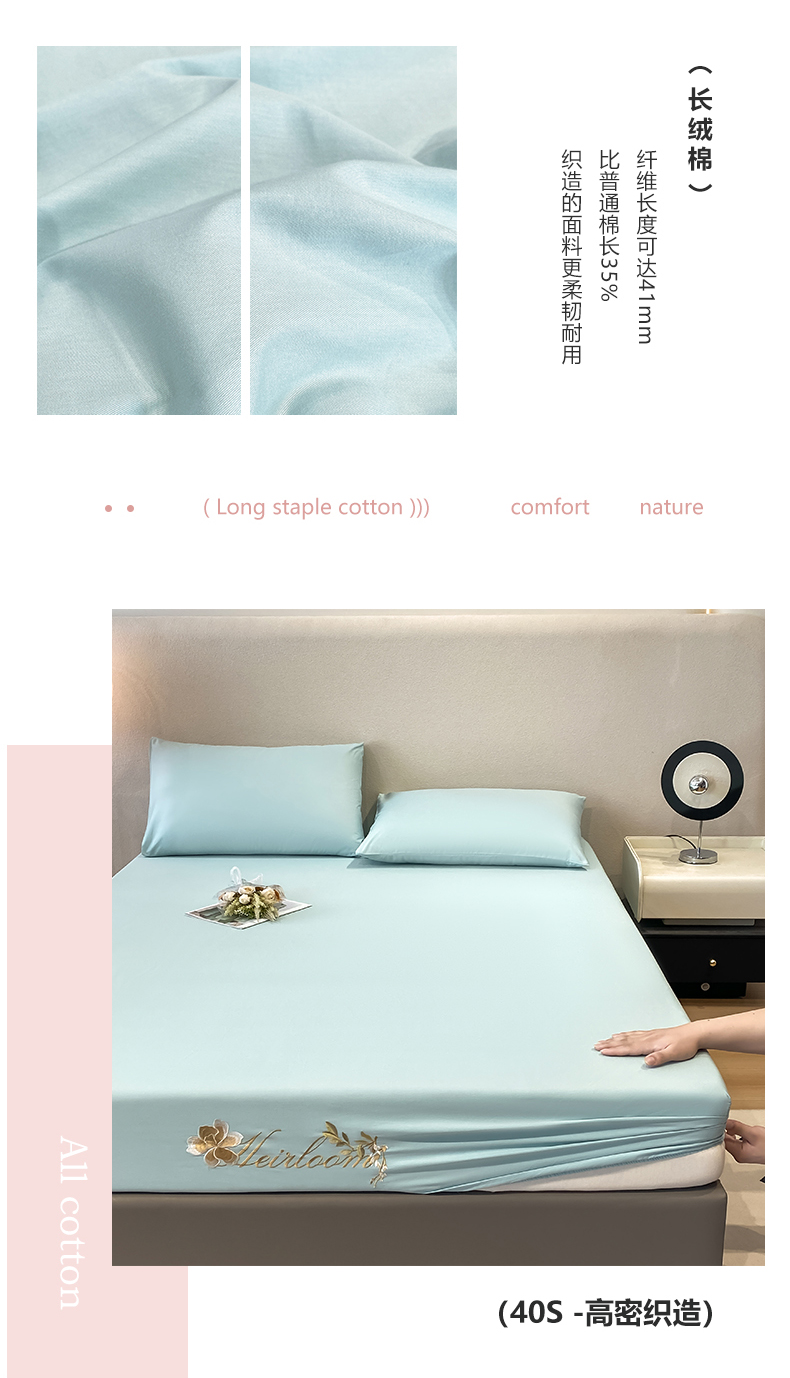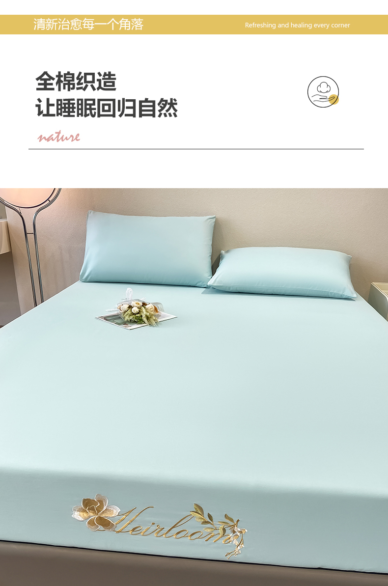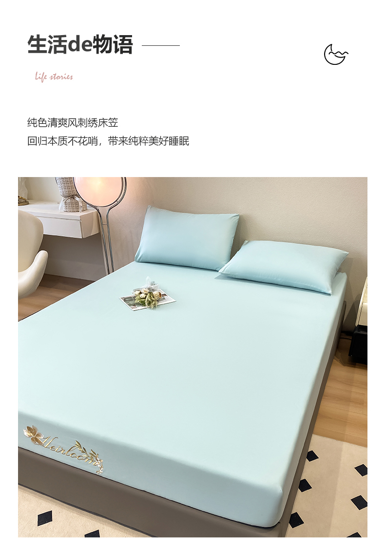 暖季家纺 2025新款初夏40s刺绣全棉床笠 初夏天空蓝