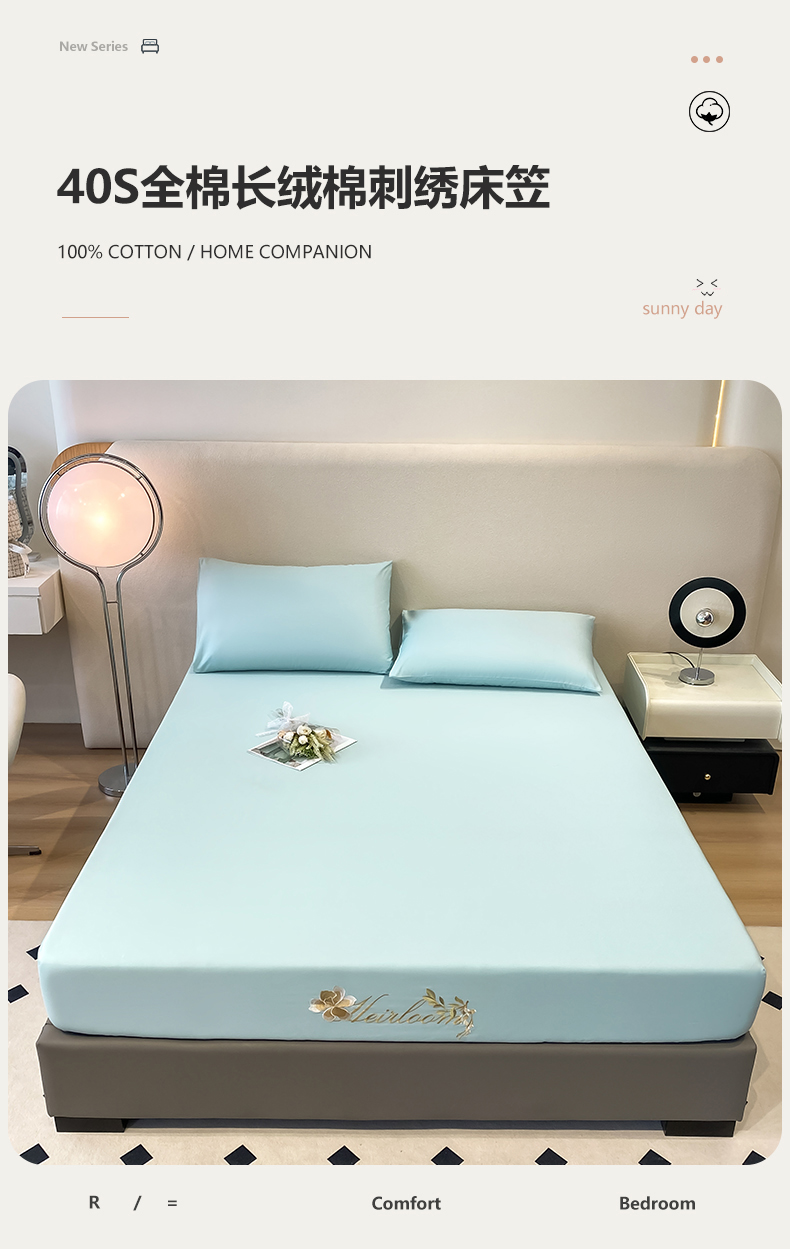 • 91家纺网 家纺一手货源 找家纺 暖季家纺 2025新款初夏40s刺绣全棉床笠 初夏天空蓝