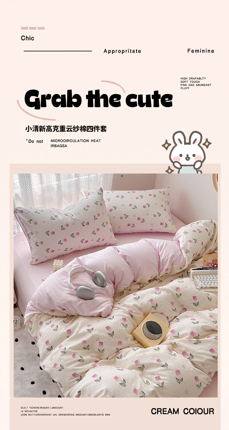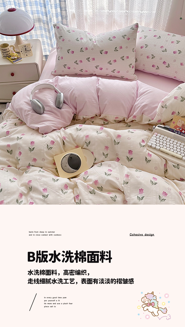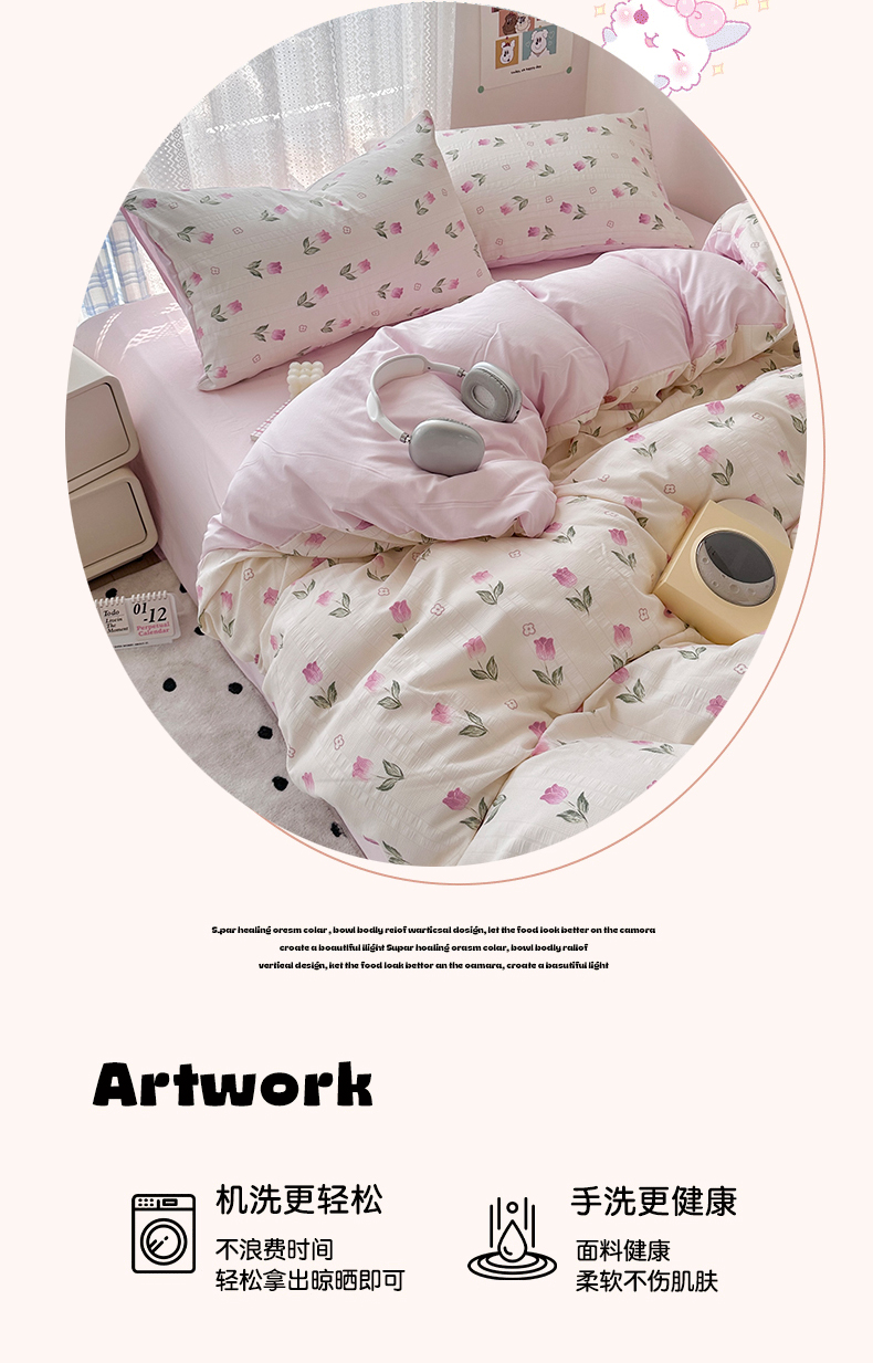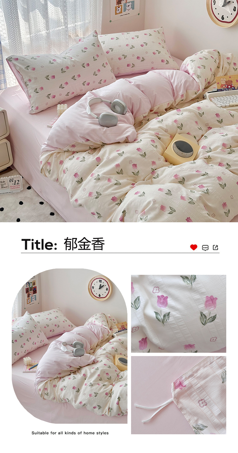 当前位置: 91家纺网 > 商品网购 > 床品套件 > 四件套 > 全棉普通四件套 > 希丞家居 2024新款小清新高克重提花水洗棉四件套(提供买家秀) 郁金香