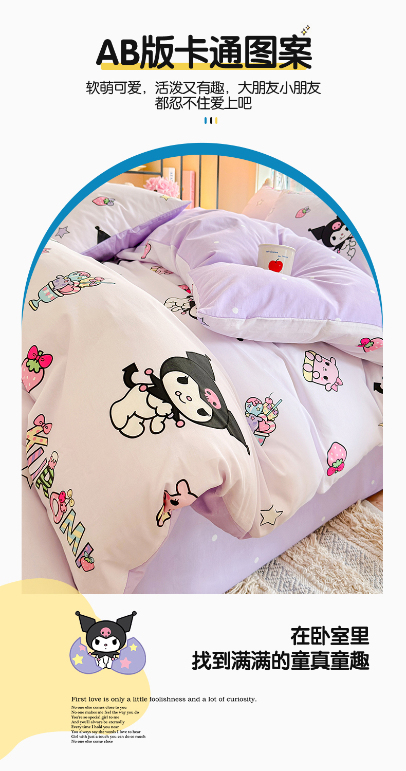 当前位置: 91家纺网 > 商品网购 > 床品套件 > 四件套 > 全棉普通四件套 > 2024新款授权经典奥特曼-三丽鸥全棉卡通四件套学生三件套【含防伪标】 可爱库洛米