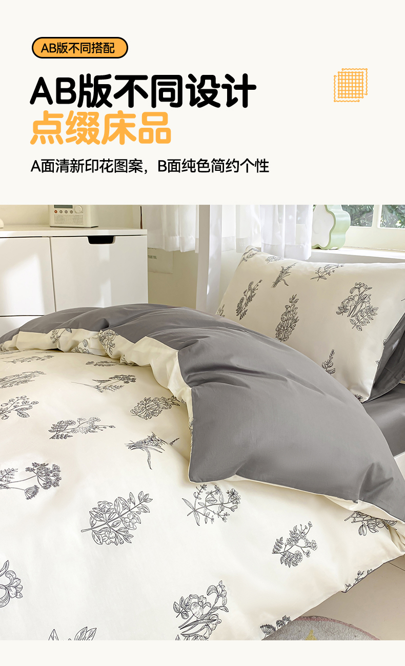 本制 2024新款学生季全棉印花三件套 赫本