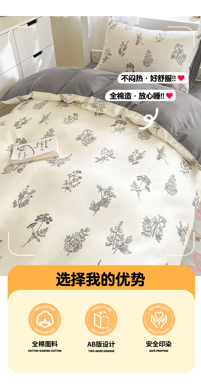 (总)本制 2025新款12868全棉纯棉印花成人学生四件套,晨露,晨蔓,花间,郁之香