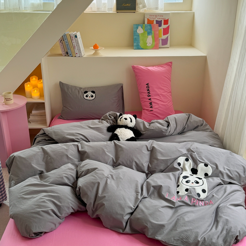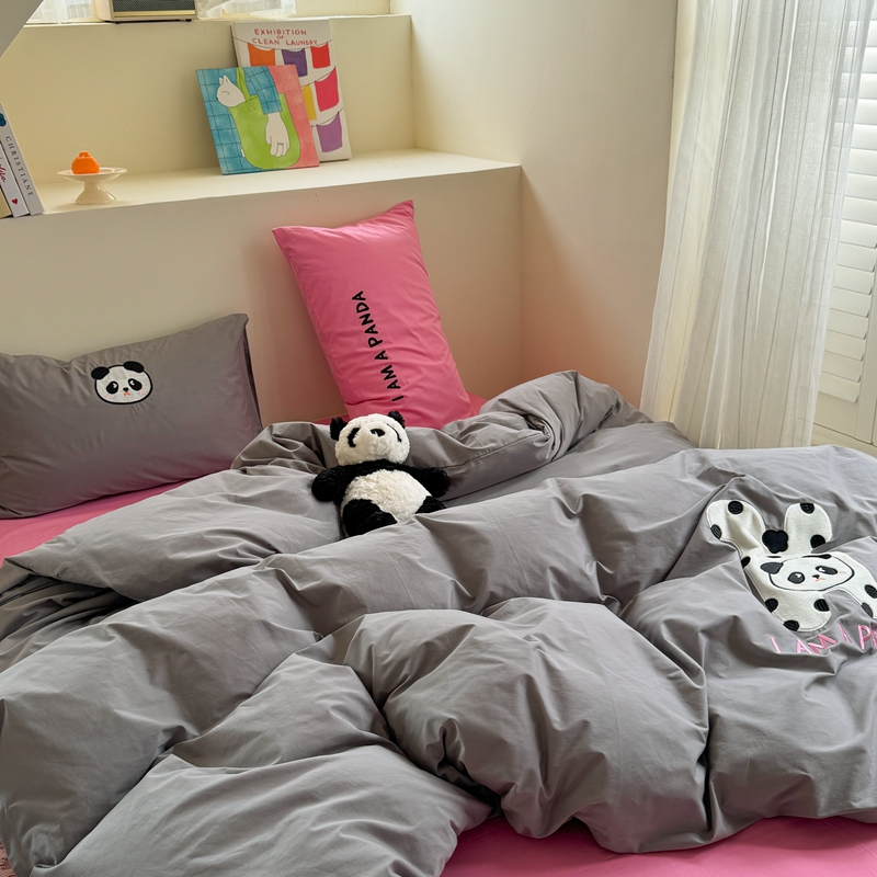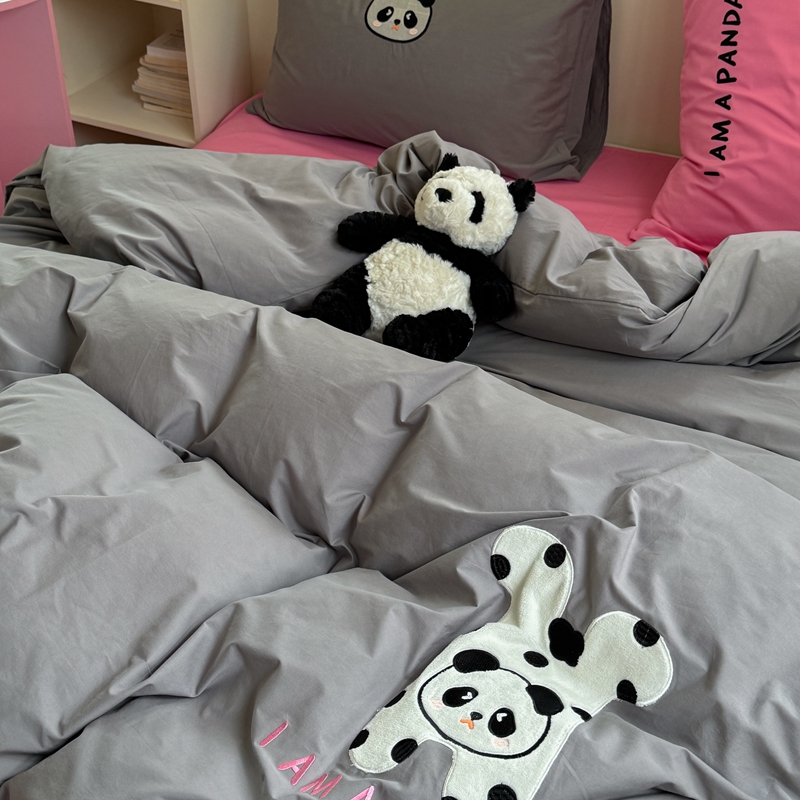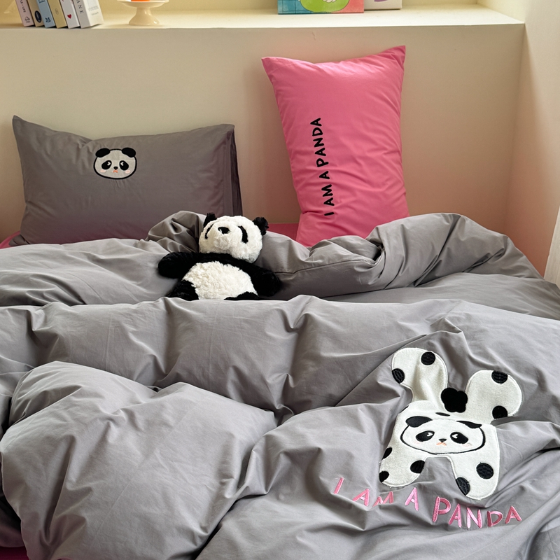 柚子YOUTH 2024新款全棉水洗棉撞色刺绣四件套 趴趴熊猫