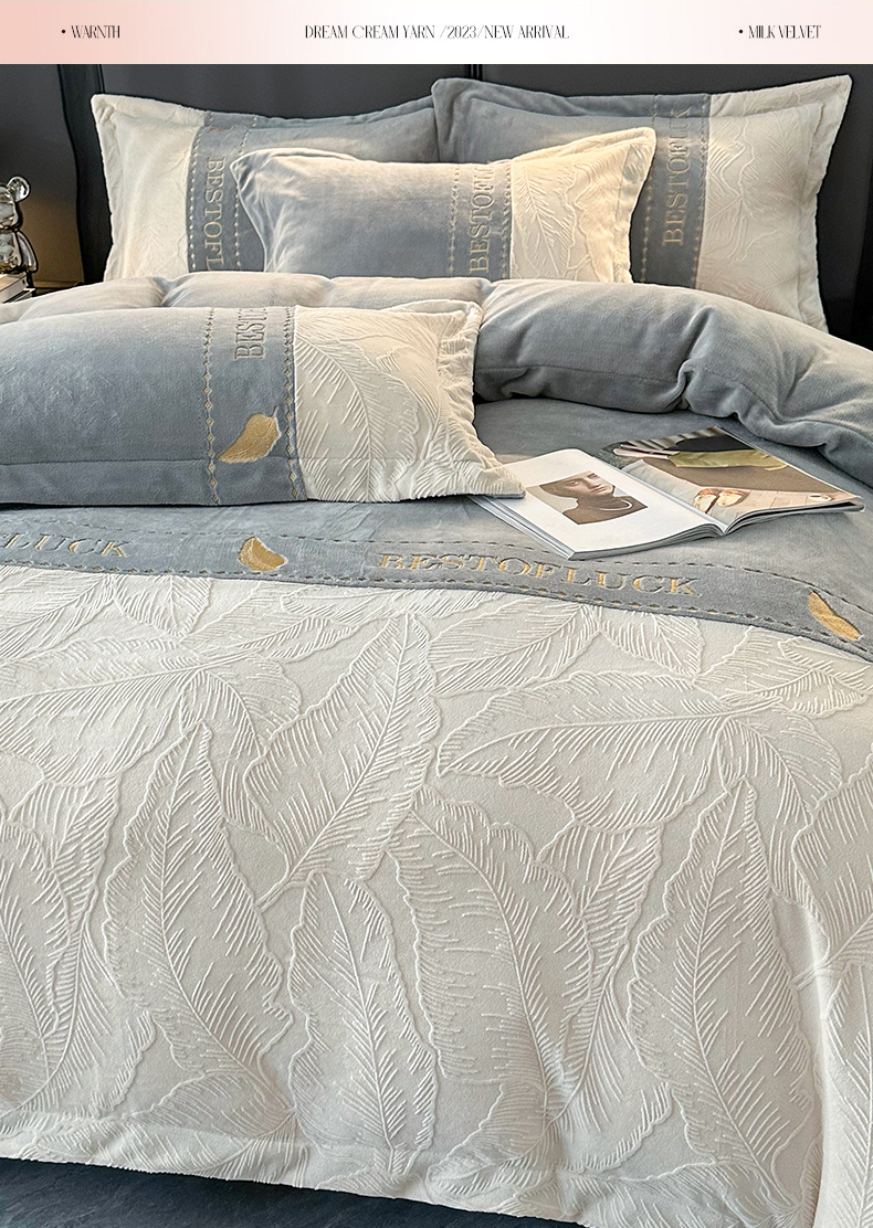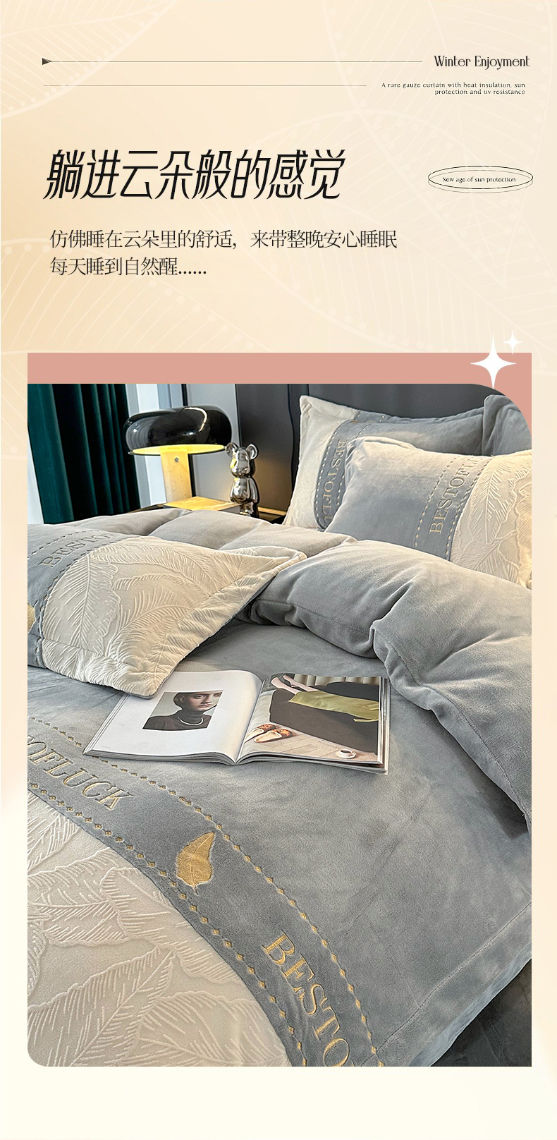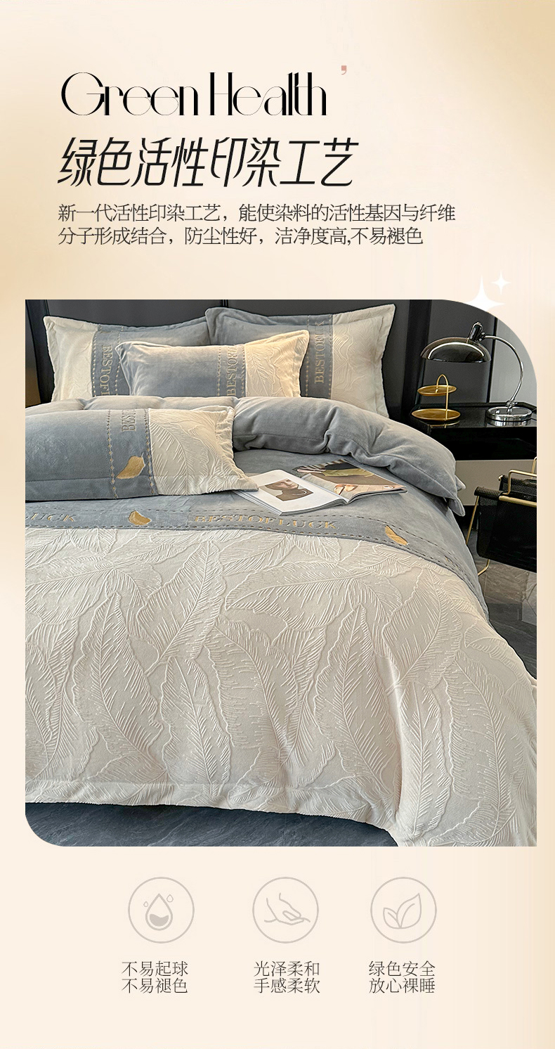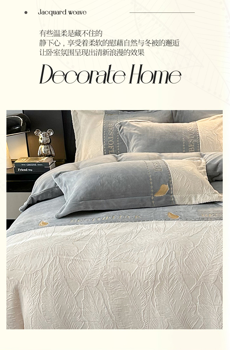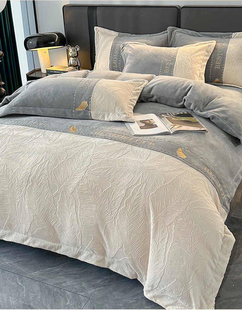 莱凯家纺 2025新款牛奶绒雕花刺绣四件套-叶屿 叶屿-灰