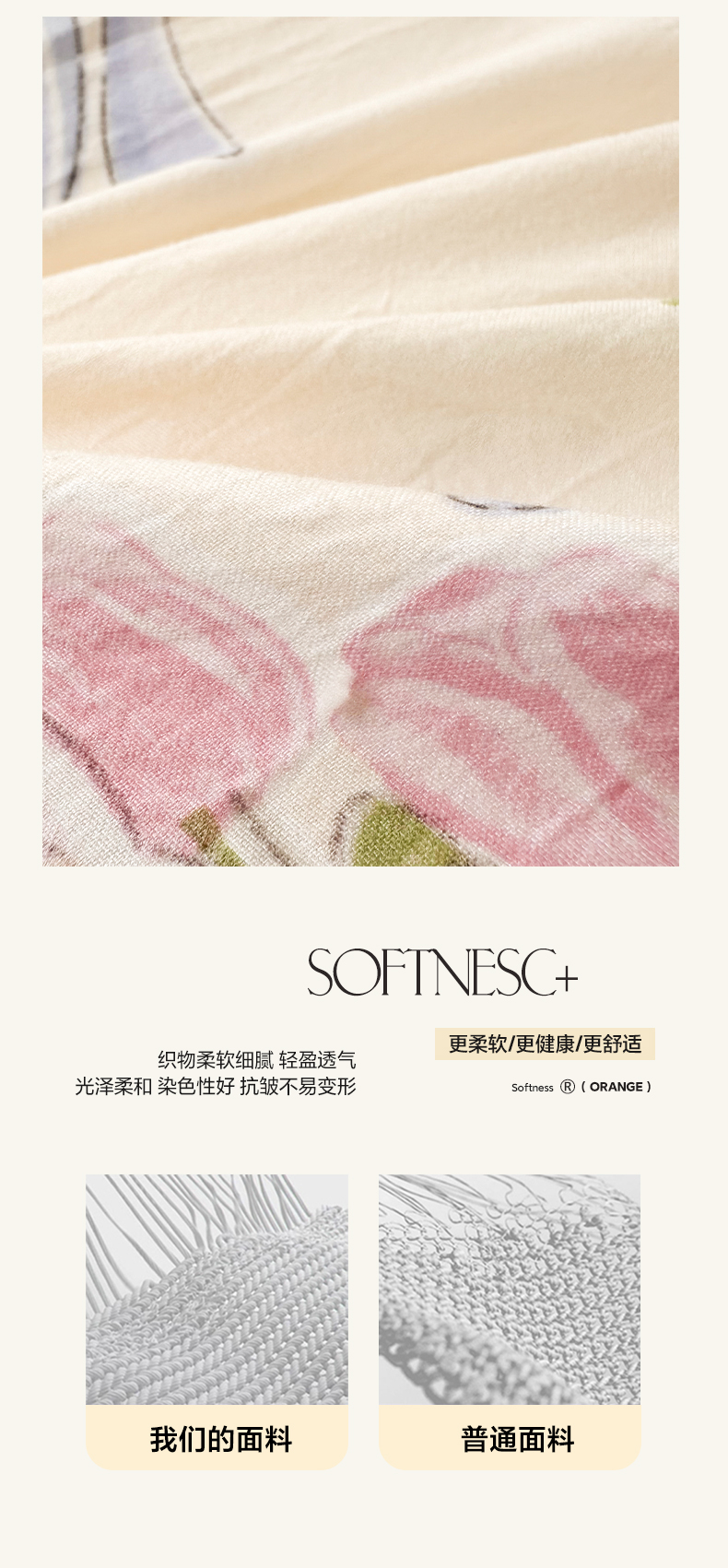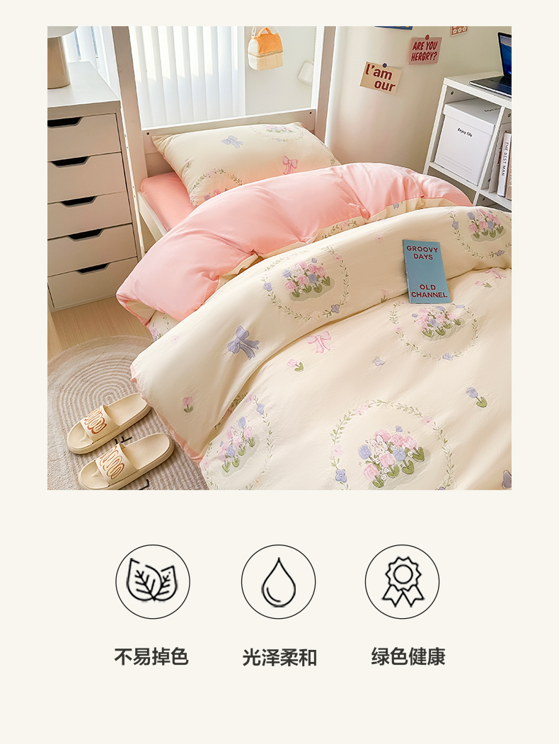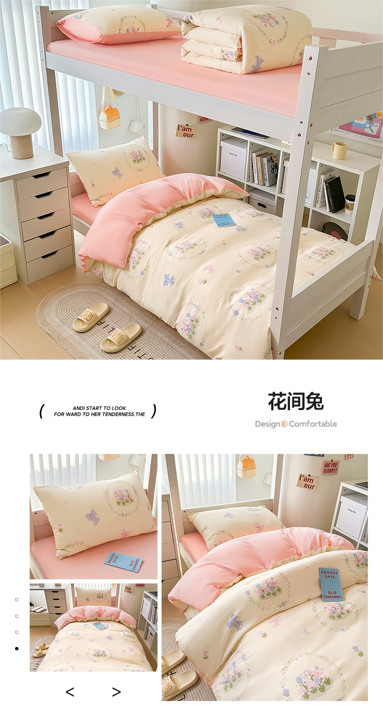 商品名称:2024新款水洗棉小清新印花学生三件套(床笠床套款) 花间兔