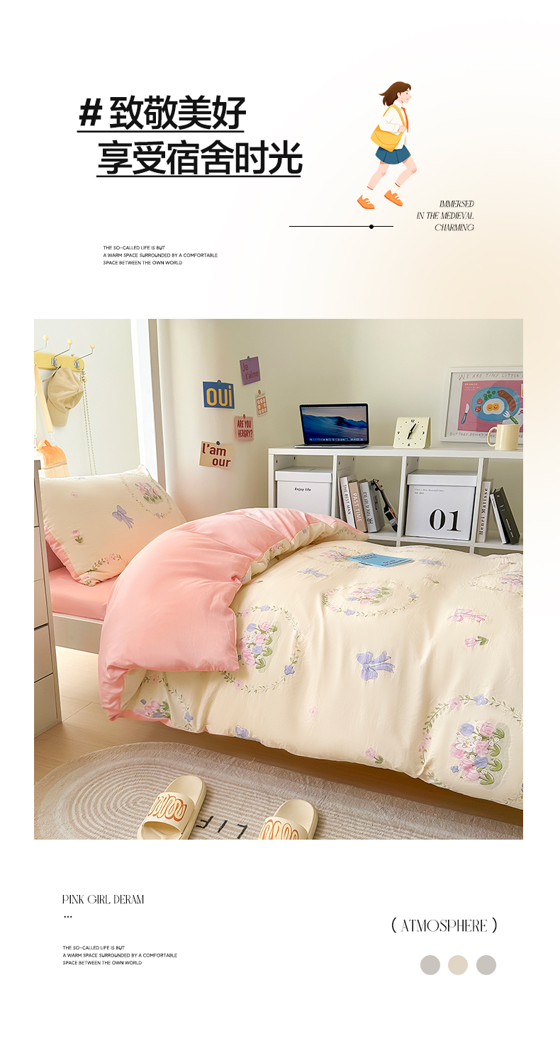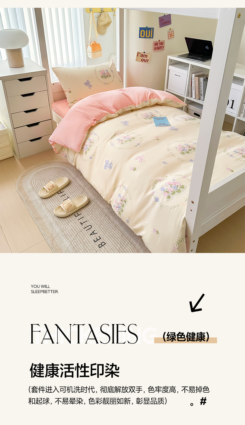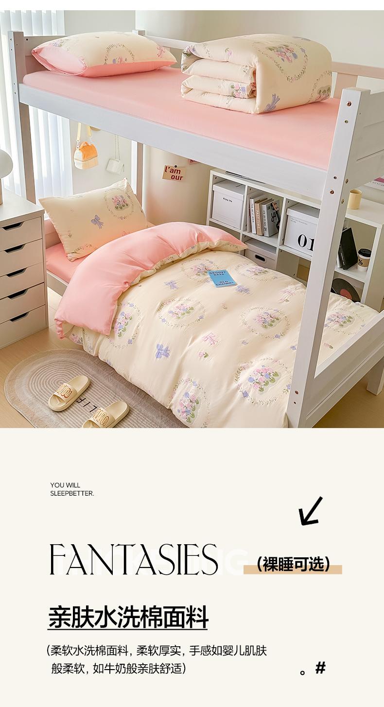 (总)2024新款水洗棉小清新印花学生三件套(床笠床套款),爱心熊,粉郁盛开,花间兔,花语,恐龙乐园,仙草,紫郁盛开