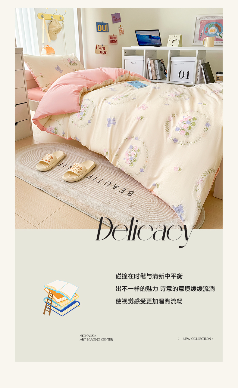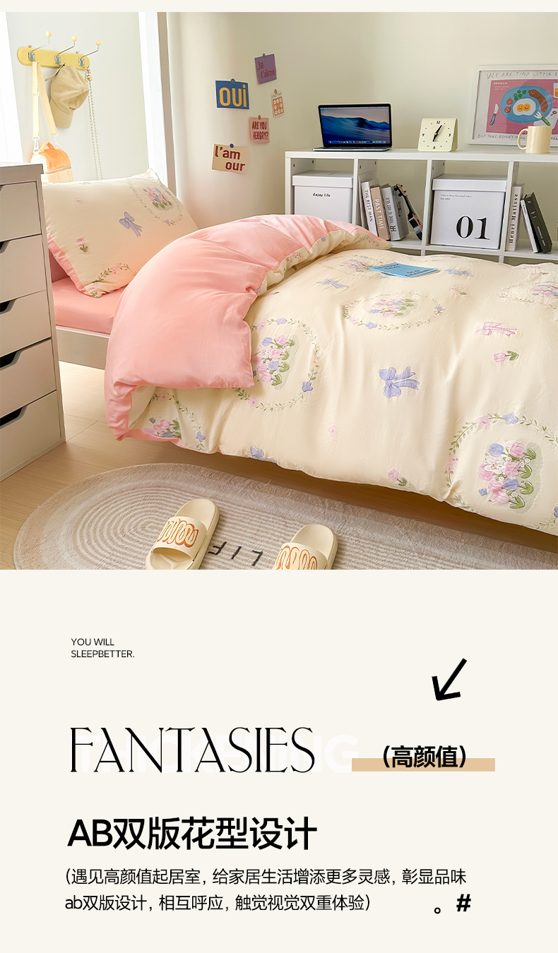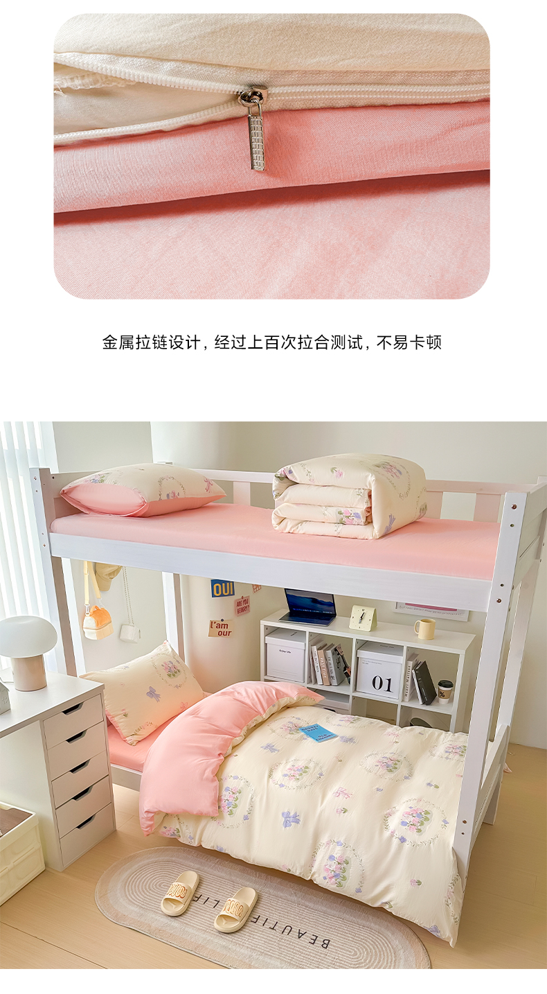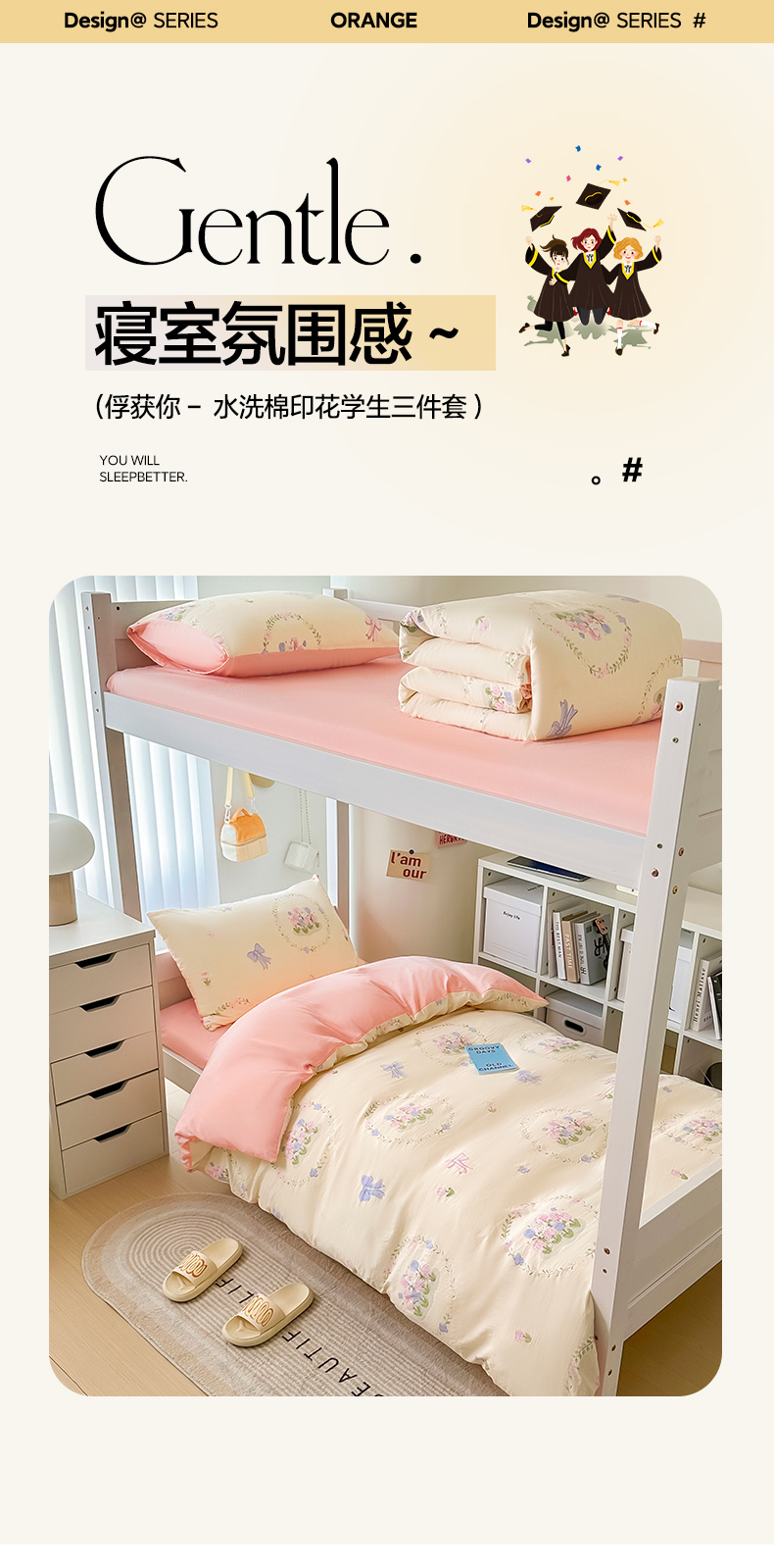 (总)2024新款水洗棉小清新印花学生三件套(床笠床套款),爱心熊,粉郁盛开,花间兔,花语,恐龙乐园,仙草,紫郁盛开