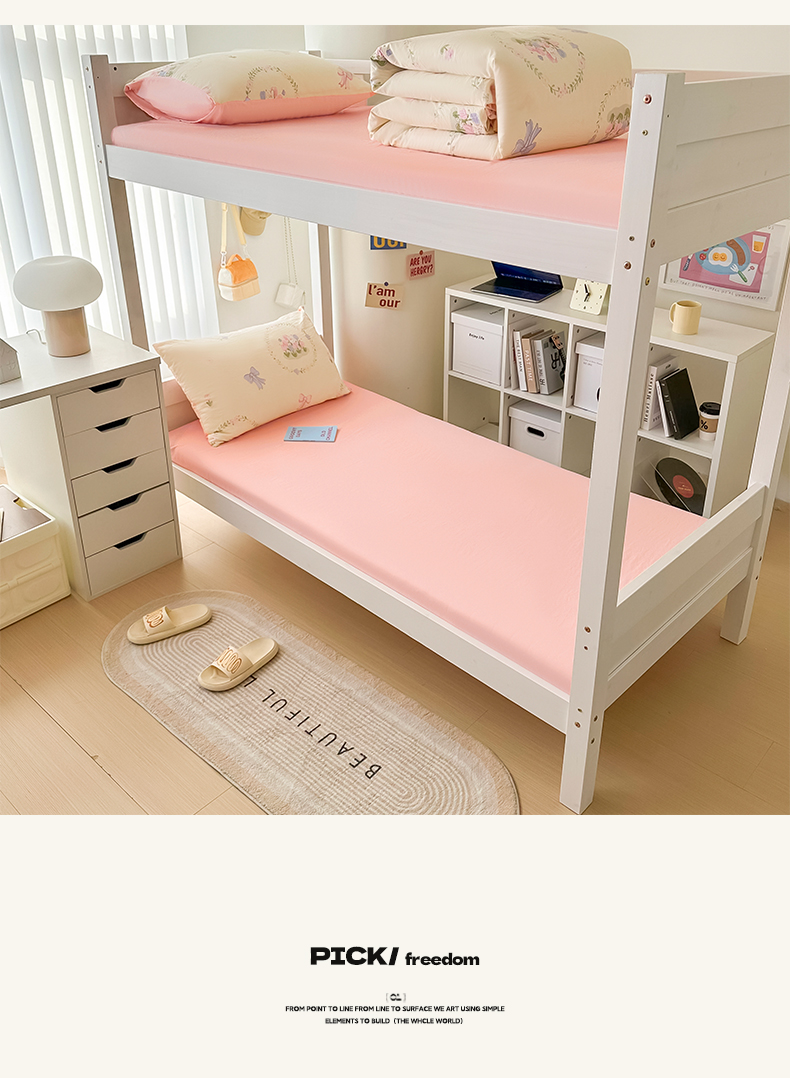 2024新款水洗棉小清新印花学生三件套(床笠床套款) 花间兔