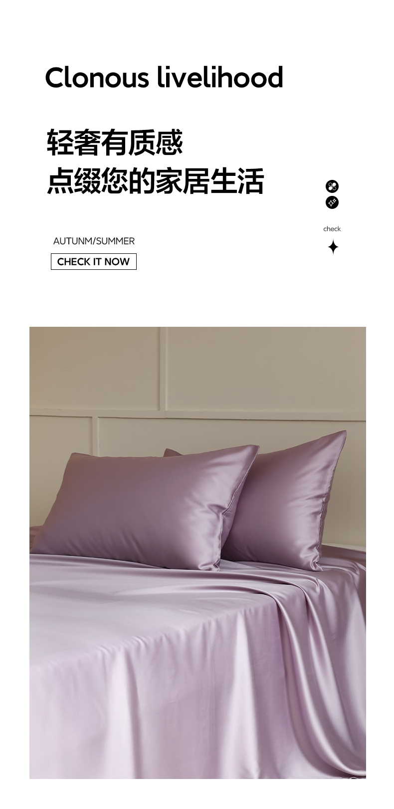 商品名称:轩和 2025新款A类LF60S兰精天丝单品枕套 香气紫