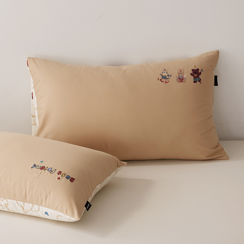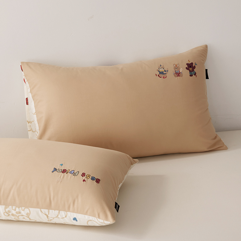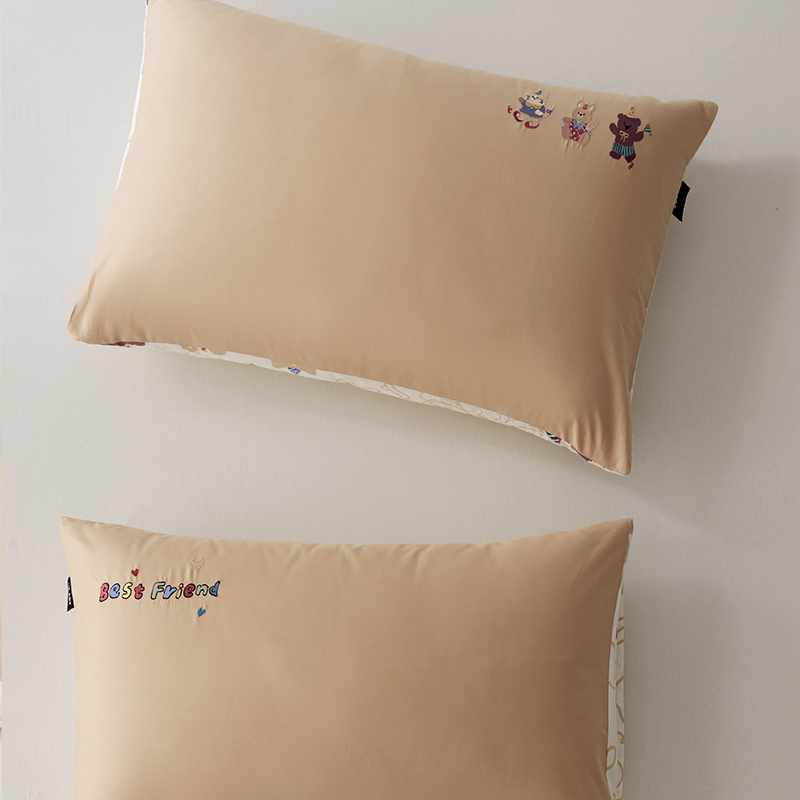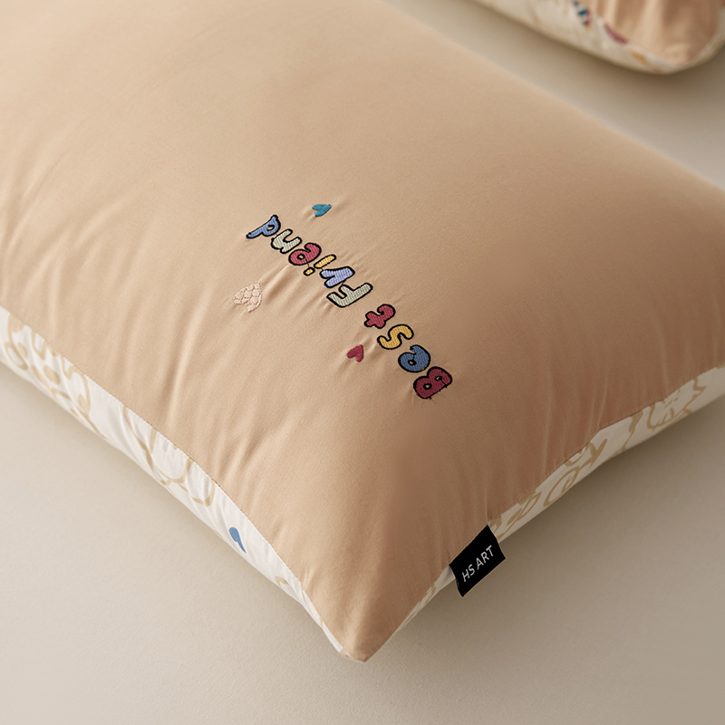 2024新款全棉纯棉印花刺绣单枕套卡通一对装 动物派对