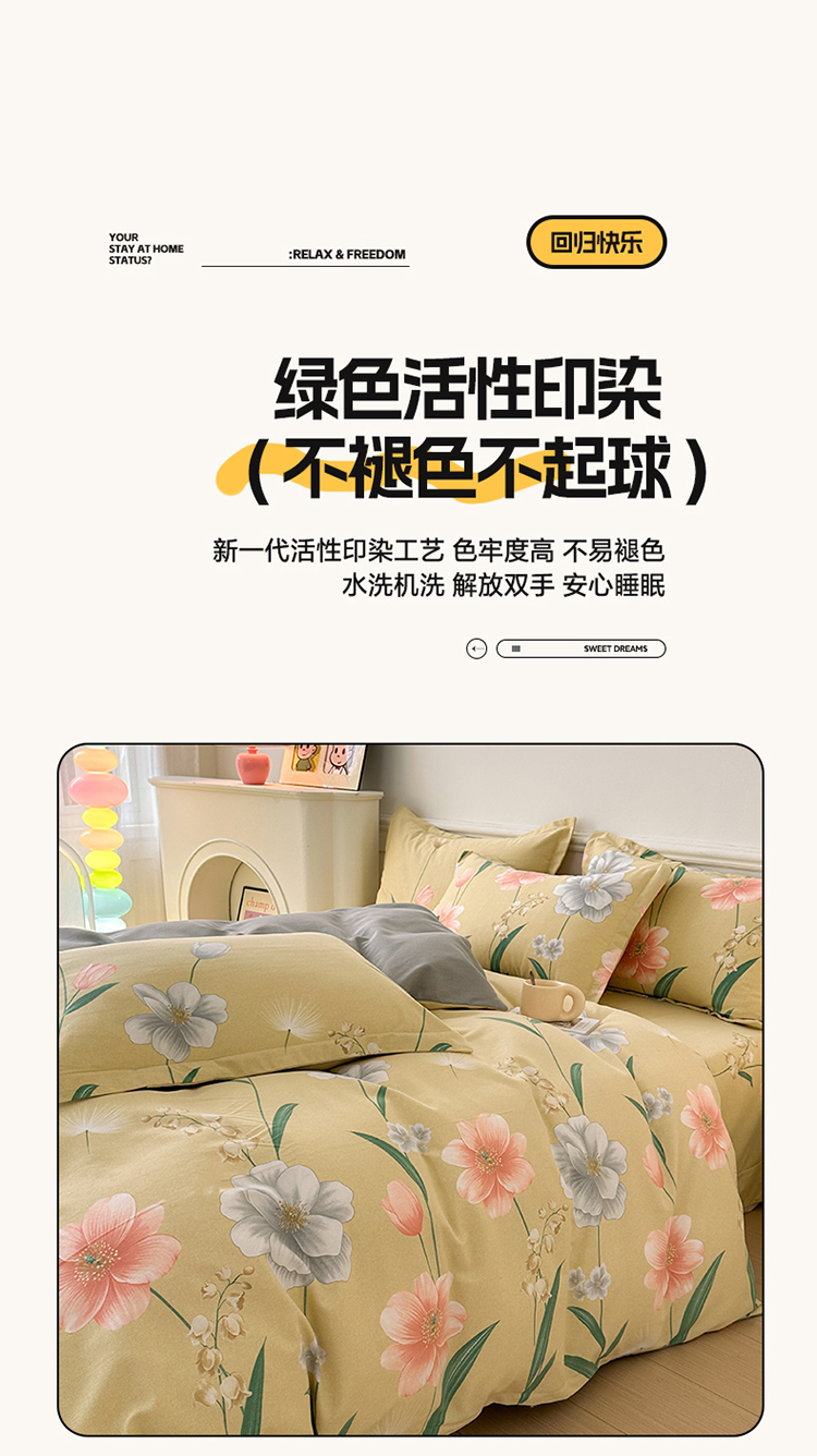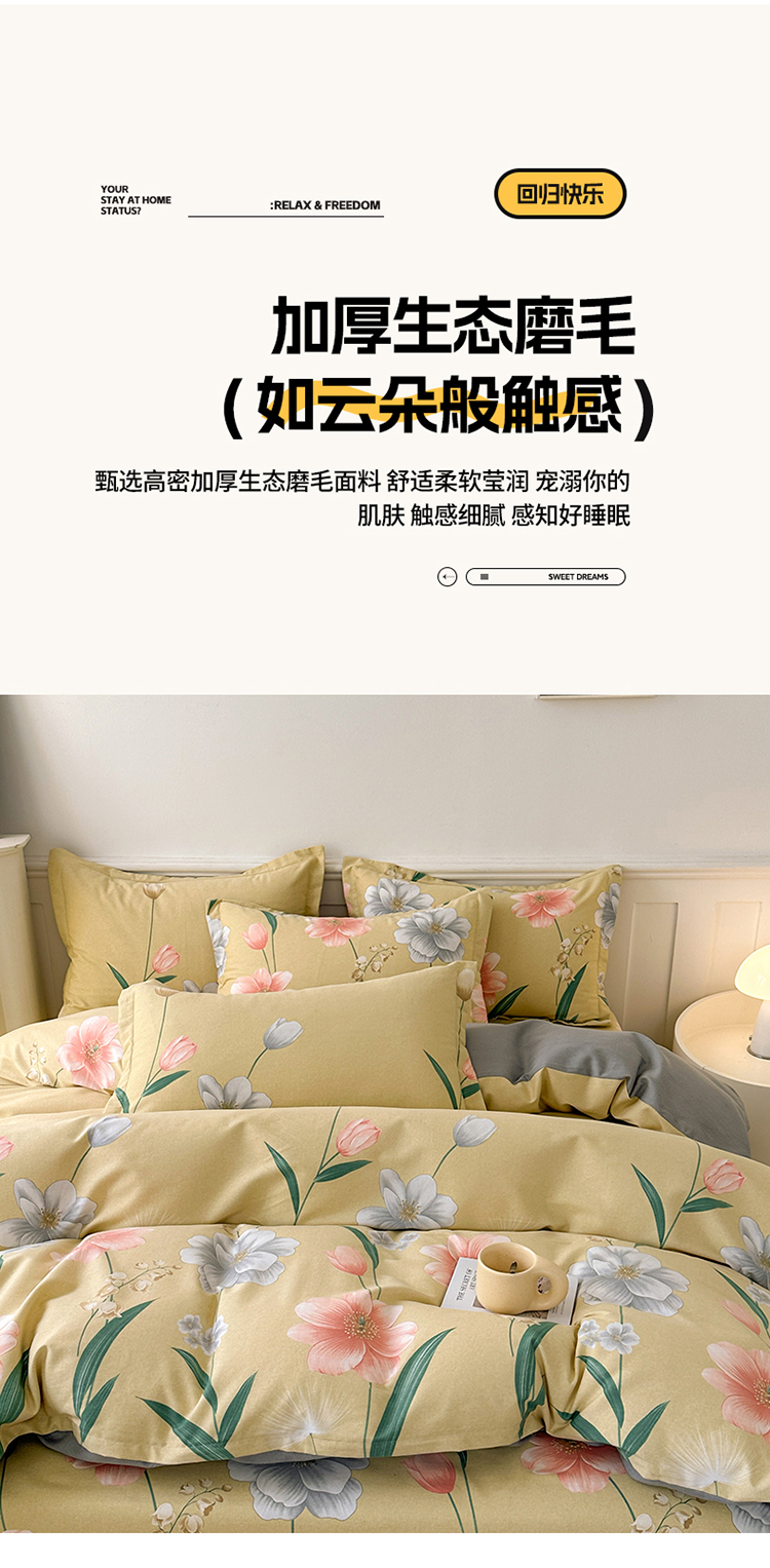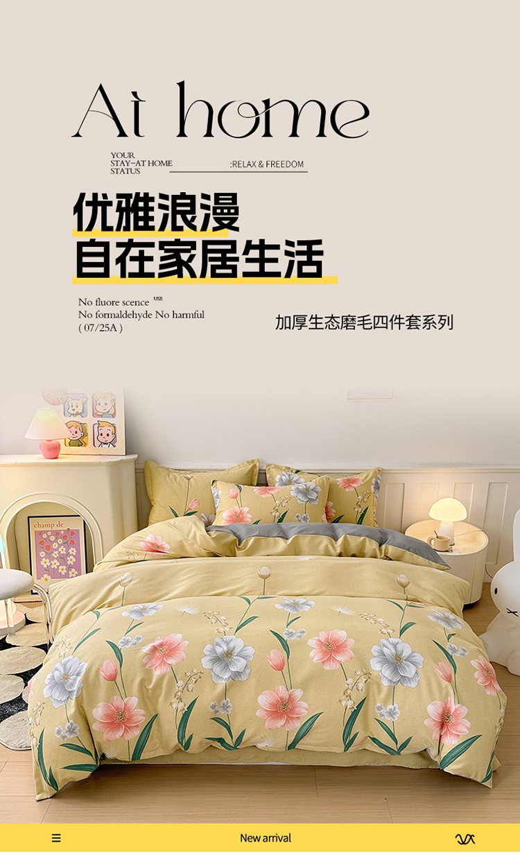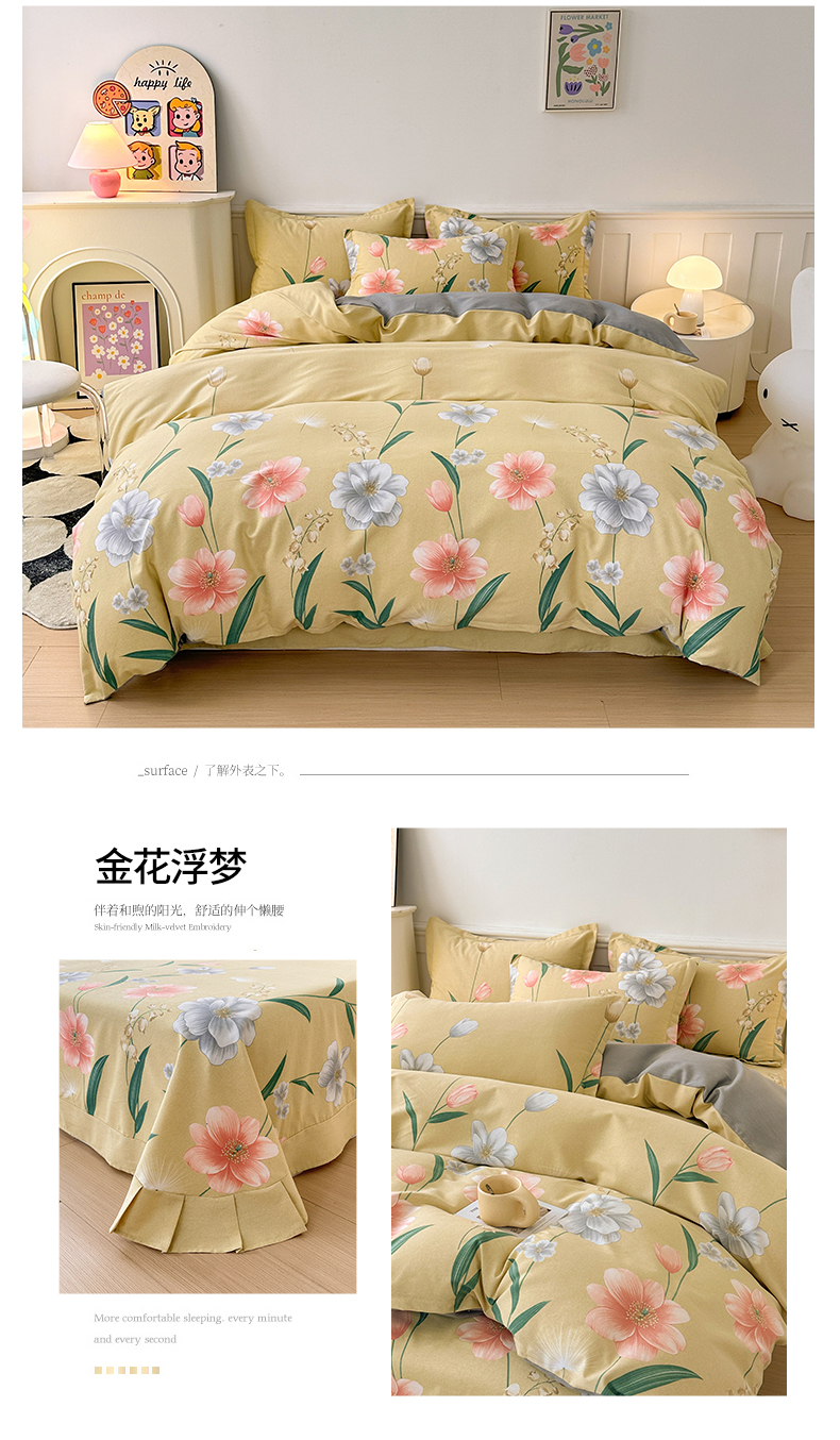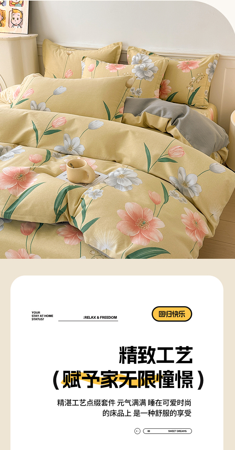 当前位置: 91家纺网 > 商品网购 > 床品套件 > 四件套 > 全棉普通四件套 > 2025新款加厚生态磨毛床单四件套 金花浮梦