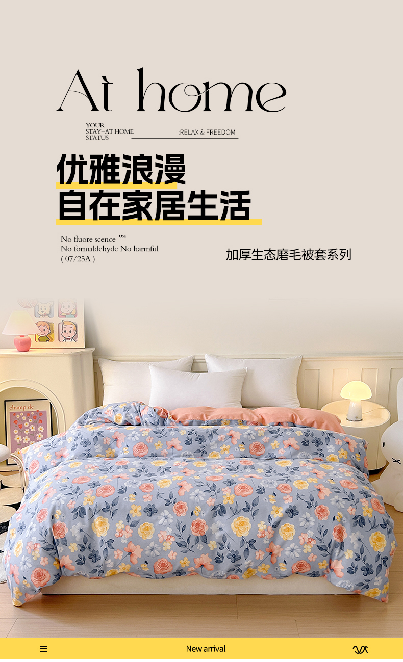 • 91家纺网 家纺一手货源 找家纺 2025新款加厚生态磨毛单被套 花香四溢
