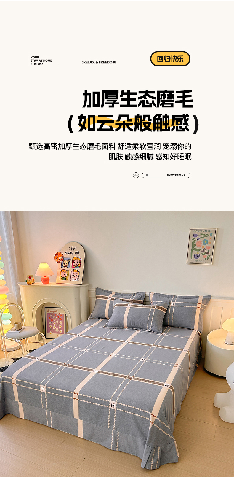• 91家纺网 家纺一手货源 找家纺 2025新款加厚生态磨毛单床单 兰迪