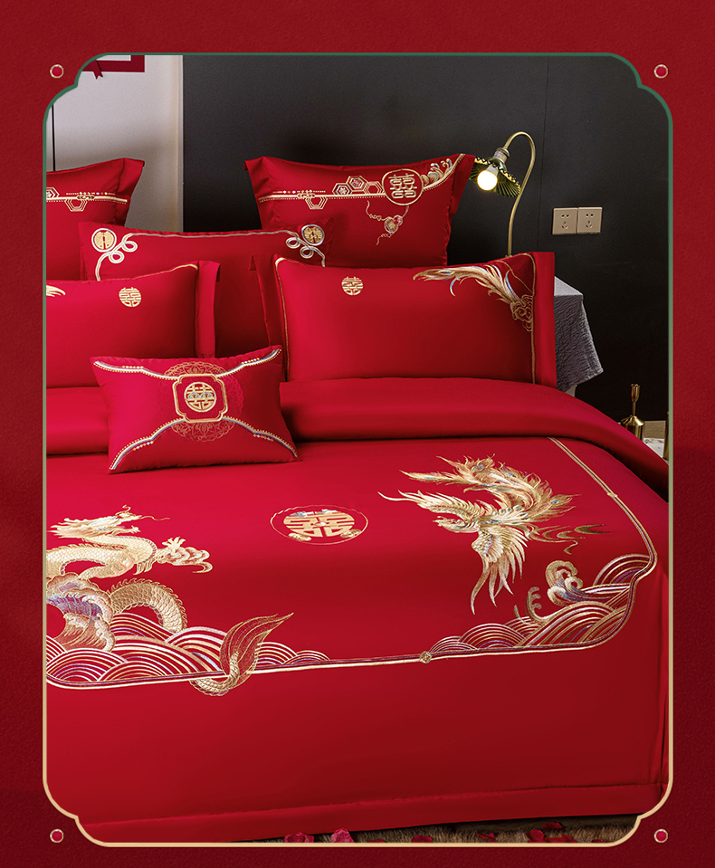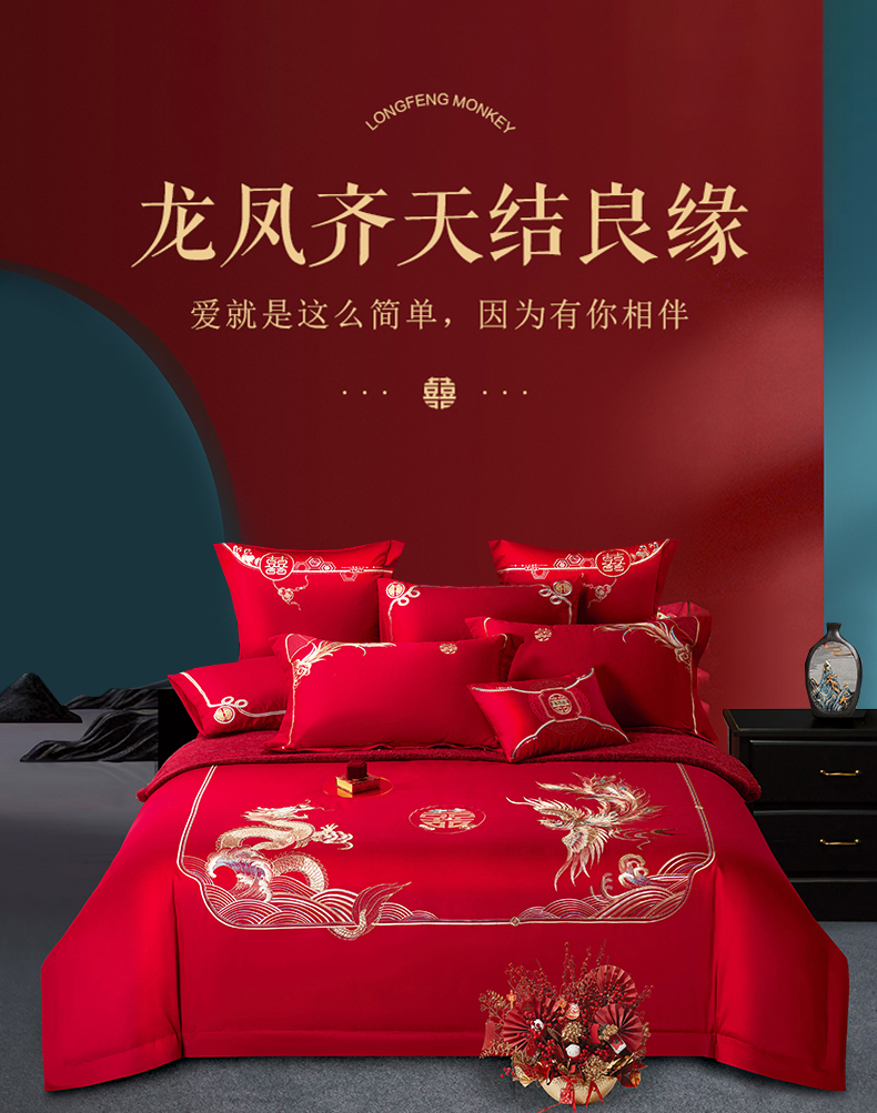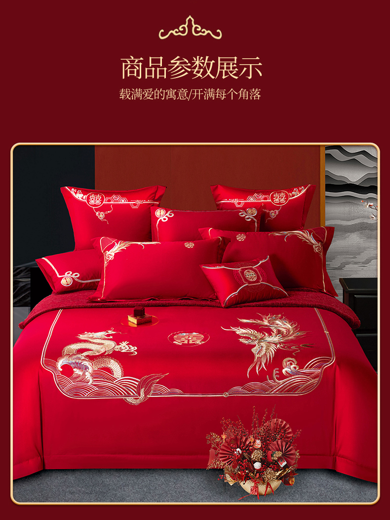 • 91家纺网 家纺一手货源 找家纺 (总)美娘阁 2025新款长绒棉全棉贡缎提花款新中式古典韵味精美刺绣婚庆四件套系列,红颜知己,龙凤大喜,龙凤江山,龙凤喜嗣,龙腾盛世
