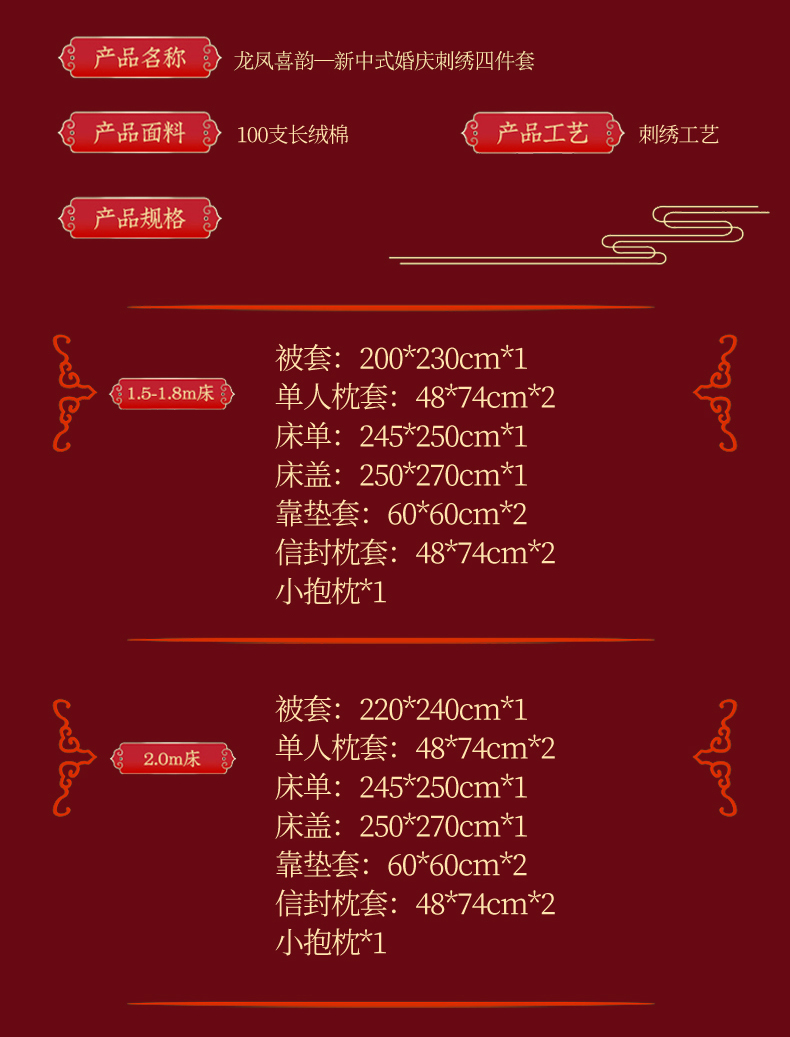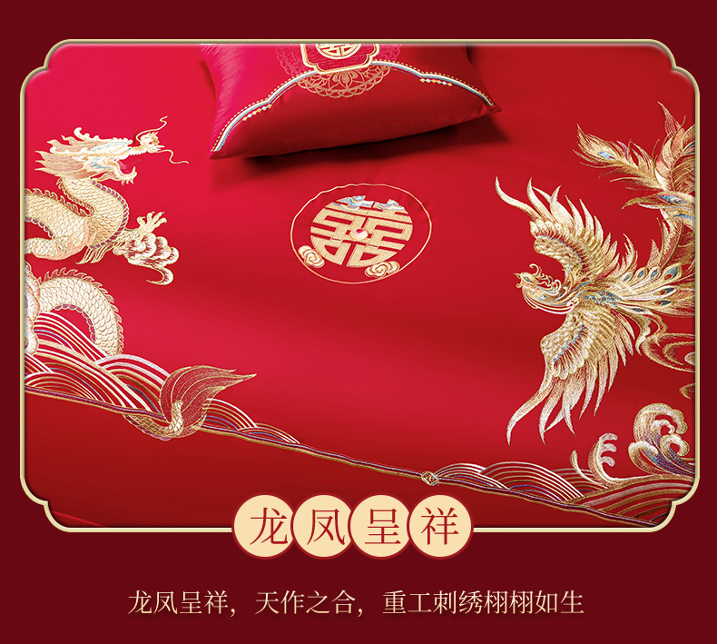 (总)美娘阁 2025新款长绒棉全棉贡缎提花款新中式古典韵味精美刺绣婚庆四件套系列,红颜知己,龙凤大喜,龙凤江山,龙凤喜嗣,龙腾盛世